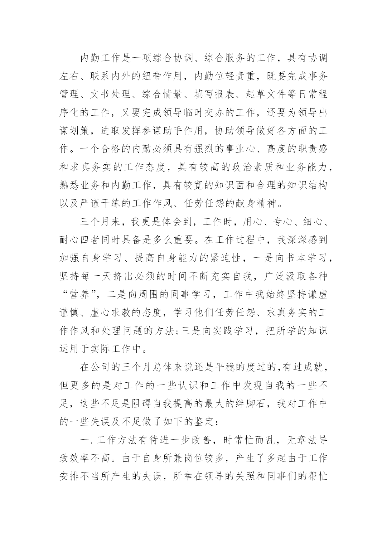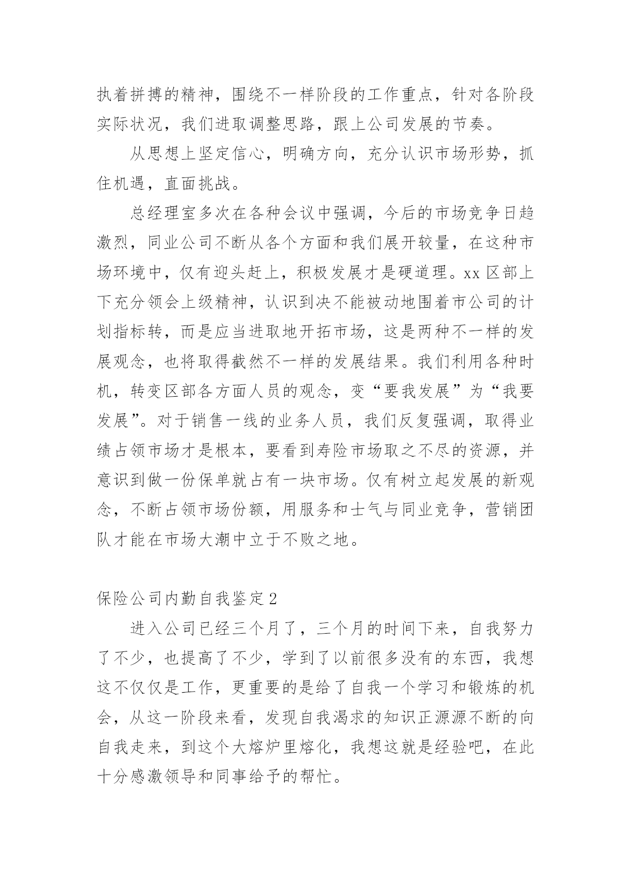 保险公司内勤自我鉴定自我鉴定即为自我总结,自我鉴定可以使我们更加明确目标,让我们好好写一份自我鉴定总结一下吧。自我鉴定怎么写才不会千篇一律呢?以下是小编整理的保险公司内勤自我鉴定,仅供参考,大家一起来看看吧。保险公司内勤自我鉴定120xx年是中国保险市场竞争更加激烈的一年!同时也中国人寿发展历史上重要的一年,xx营销区部认真贯彻落实年初市保会和市公司总经理室提出的各项要求,以下是保险公司内勤年度工作鉴定。紧紧围绕分公司下达的各项工作指标,以业务发展作为全年的工作主题,明确经营思路,把握经营重点,进取有效地开展。20xx年的经营成果和工作鉴定截至11月30日,十三区部在全体业务同仁和工作人员的共同努力下,共实现新单保费收入xxxx万元,其中期交保费xxx万元,趸交保费xxxxx元,意外险保费xxxx万元,提前两个月完成市公司下达的意外险指标;区部至11月有营销代理人xxxx人,其中持证人数xxxx人,持证率xx%;各级主管xx人,其中部经理x人,分部经理x人。实现了业务规模和团队人力的稳定。回顾20xx年走过的'历程,凝聚着xx区部人顽强奋斗,执着拼搏的精神,围绕不一样阶段的工作重点,针对各阶段实际状况,我们进取调整思路,跟上公司发展的节奏。从思想上坚定信心,明确方向,充分认识市场形势,抓住机遇,直面挑战。总经理室多次在各种会议中强调,今后的市场竞争日趋激烈,同业公司不断从各个方面和我们展开较量,在这种市场环境中,仅有迎头赶上,积极发展才是硬道理。xx区部上下充分领会上级精神,认识到决不能被动地围着市公司的计划指标转,而是应当进取地开拓市场,这是两种不一样的发展观念,也将取得截然不一样的发展结果。我们利用各种时机,转变区部各方面人员的观念,变“要我发展”为“我要发展”。对于销售一线的业务人员,我们反复强调,取得业绩占领市场才是根本,要看到寿险市场取之不尽的资源,并意识到做一份保单就占有一块市场。仅有树立起发展的新观念,不断占领市场份额,用服务和士气与同业竞争,营销团队才能在市场大潮中立于不败之地。保险公司内勤自我鉴定2进入公司已经三个月了,三个月的时间下来,自我努力了不少,也提高了不少,学到了以前很多没有的东西,我想这不仅仅是工作,更重要的是给了自我一个学习和锻炼的机会,从这一阶段来看,发现自我渴求的知识正源源不断的向自我走来,到这个大熔炉里熔化,我想这就是经验吧,在此十分感激领导和同事给予的帮忙。内勤工作是一项综合协调、综合服务的工作,具有协调左右、联系内外的纽带作用,内勤位轻责重,既要完成事务管理、文书处理、综合情景、填写报表、起草文件等日常程序化的工作,又要完成领导临时交办的工作,还要为领导出谋划策,进取发挥参谋助手作用,协助领导做好各方面的工作。一个合格的内勤必须具有强烈的事业心、高度的职责感和求真务实的工作态度,具有较高的政治素质和业务能力,熟悉业务和内勤工作,具有较宽的知识面和合理的知识结构以及严谨干练的工作作风、任劳任怨的献身精神。三个月来,我更是体会到,工作时,用心、专心、细心、耐心四者同时具备是多么重要。在工作过程中,我深深感到加强自身学习、提高自身能力的紧迫性,一是向书本学习,坚持每一天挤出必须的时间不断充实自我,广泛汲取各种“营养”,二是向周围的同事学习,工作中我始终坚持谦虚谨慎、虚心求教的态度,学习他们任劳任怨、求真务实的工作作风和处理问题的方法;三是向实践学习,把所学的知识运用于实际工作中。在公司的三个月总体来说还是平稳的度过的,有过成就,但更多的是对工作的一些认识和工作中发现自我的一些不足,这些不足是阻碍自我提高的最大的绊脚石,我对工作中的一些失误及不足做了如下的鉴定:一.工作方法有待进一步改善,时常忙而乱,无章法导致效率不高。由于自身所兼岗位较多,产生了多起由于工作安排不当所产生的失误,所幸在领导的关照和同事们的帮忙下,未能造成比较严重的后果,但在工作安排上,还是自我的一个软肋,经常出现事赶儿事的'情景,为避免此情景的出现,我决定在工作中进行详细的条理安排登记措施,将需要进行的工作进行登记并合理的安排开来,以防止出现工作积压的情景出现。二.沟通较少,工作中遇到问题,没有及时与领导沟通,导致一些工作滞后。由于自身性格的原因,自我与同事和领导的交流不多,沟通也少之又少,导致彼此的理解误差,人和人之间最重要的就是交流,交流也是化解矛盾,彼此了解的最好的方法,我决定就自身缺点进行改变,多开口,多与领导和同事交流,沟通,让大家彼此理解,信任,从而使得工作更加的简单。三.专业知识的欠缺和不足,导致在实践操作过程中遇到了很多棘手的问题,我决定进一步的学习与加强。四.行业经验欠缺,处世判事能力不足在新的一年里,我将抓住机会不断地学习专业知识,提高技能,鉴定经验,全面提高各方面的综合素质。认真学习公司的各项政策规