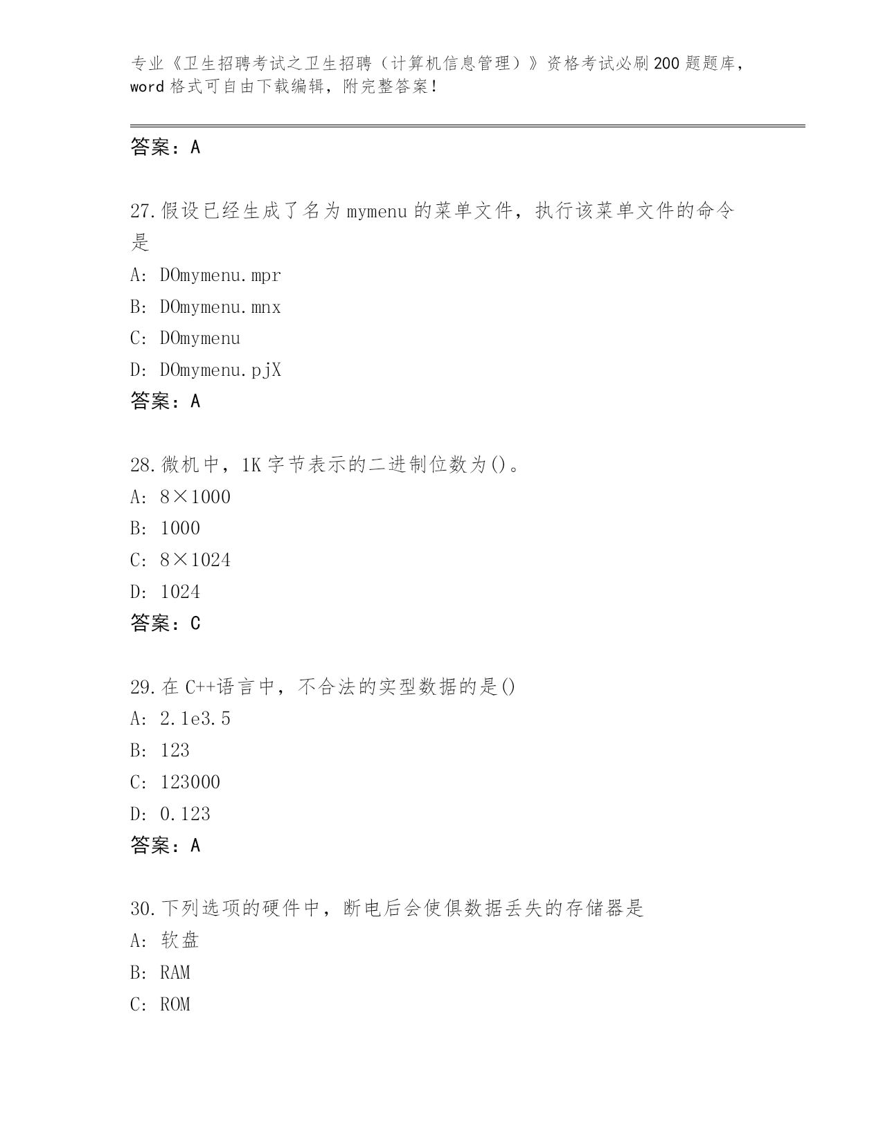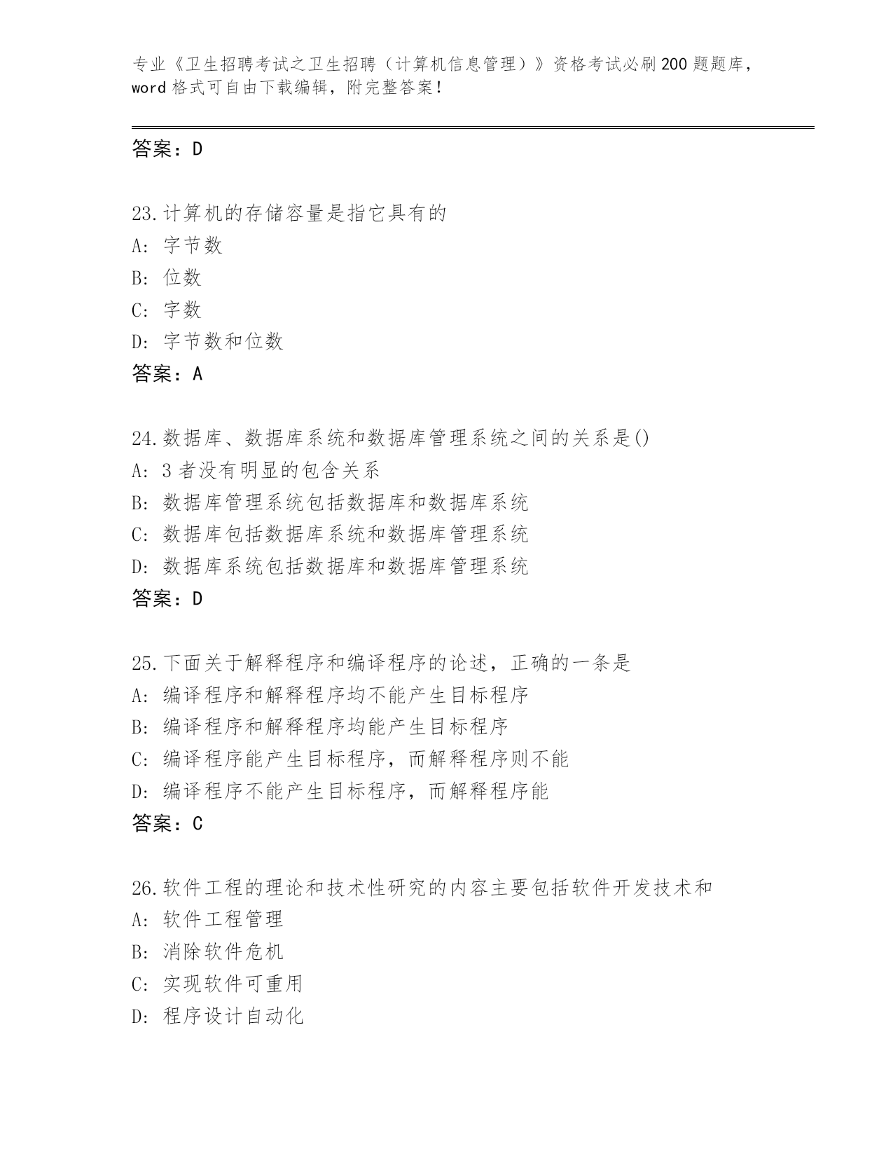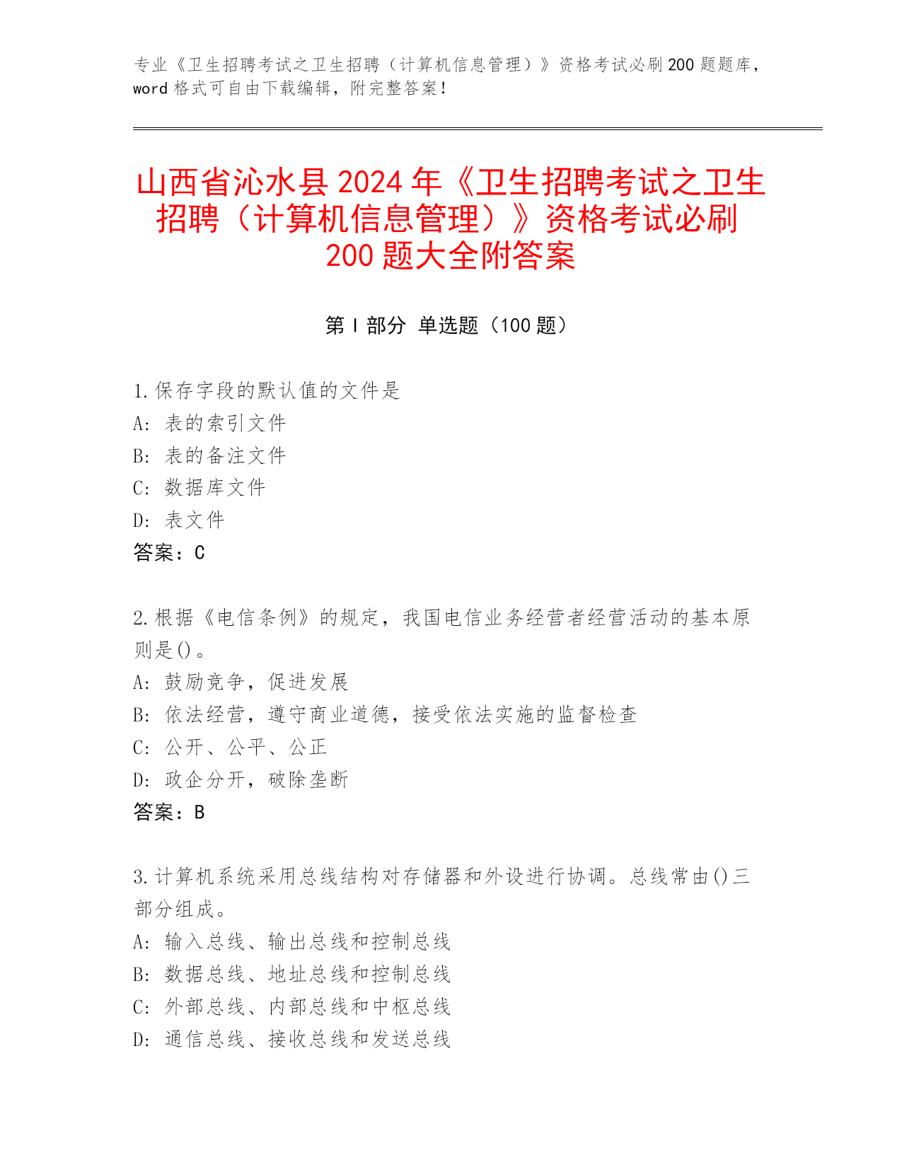 山西省沁水县2024年《卫生招聘考试之卫生招聘(计算机信息管理)》资格考试必刷200题题库往年题考