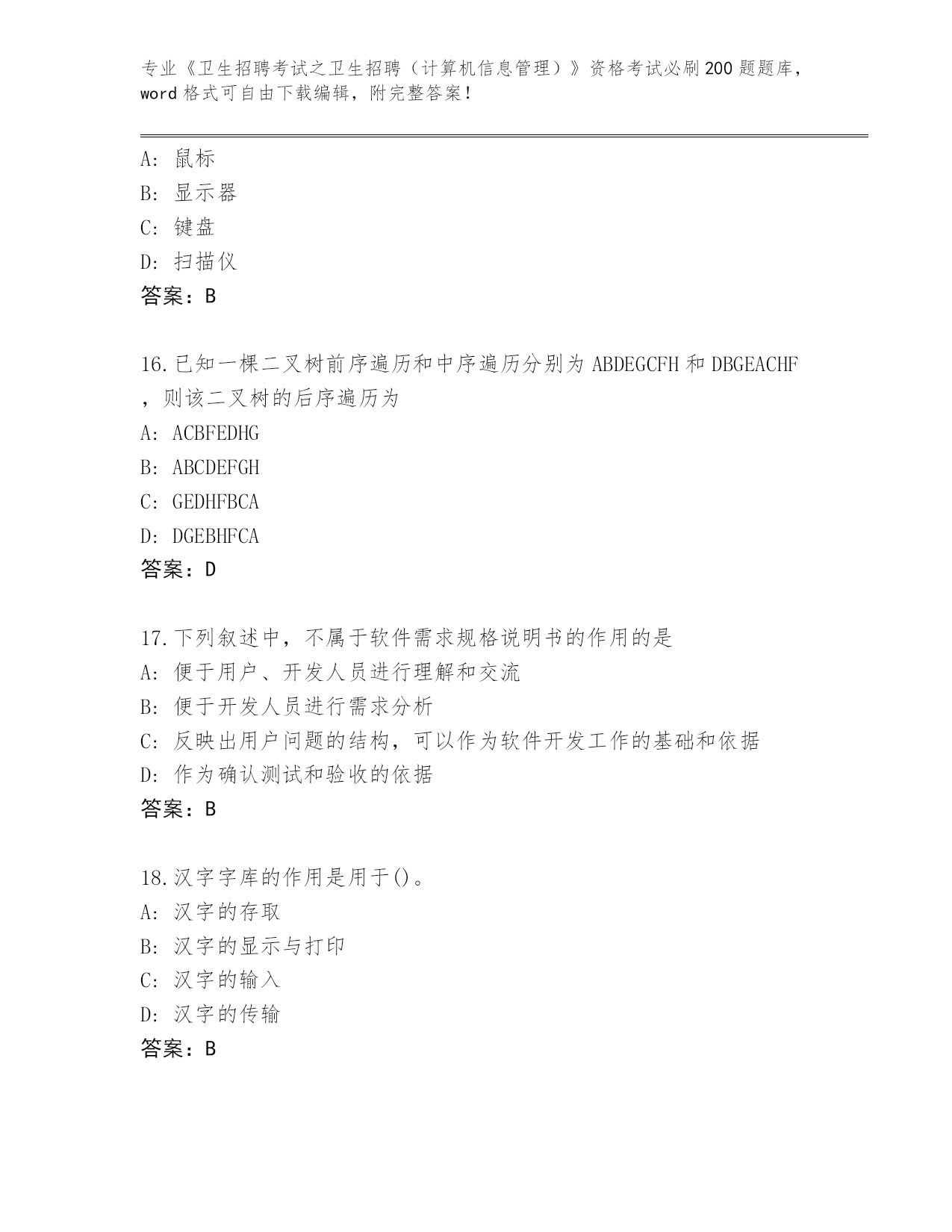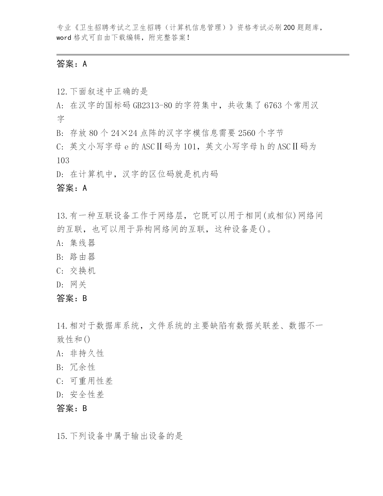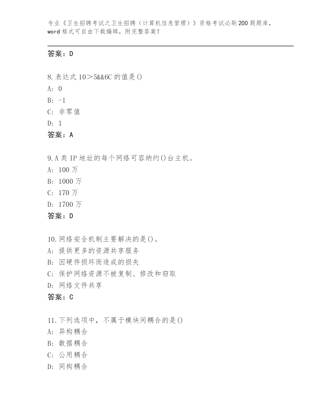 山西省历年《卫生招聘考试之卫生招聘(计算机信息管理)》考试必刷200题大全【夺冠】