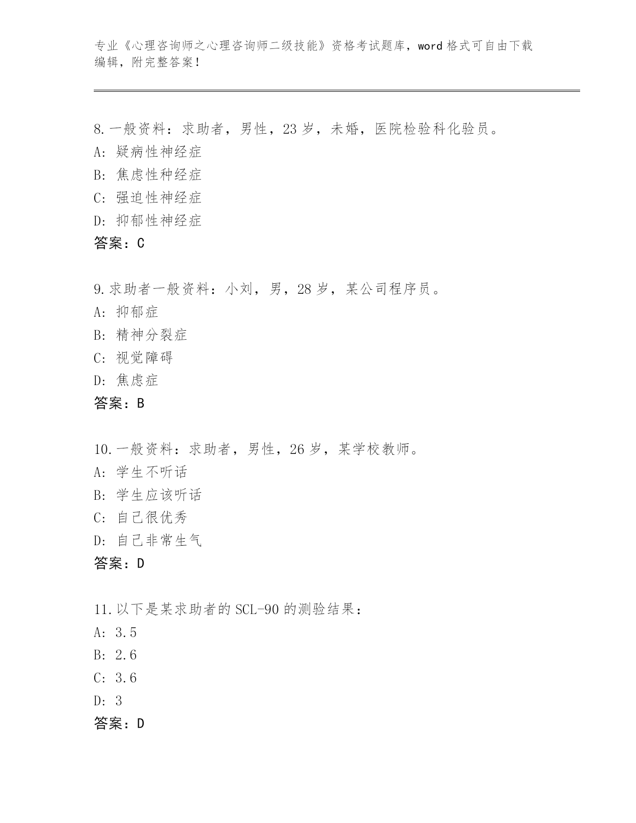 2024年陕西省户县《心理咨询师之心理咨询师二级技能》资格考试真题题库带答案