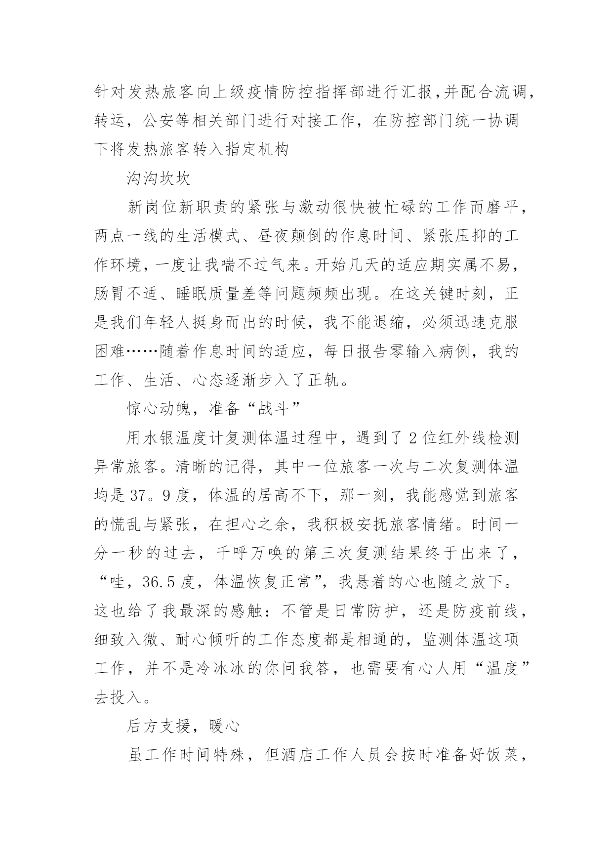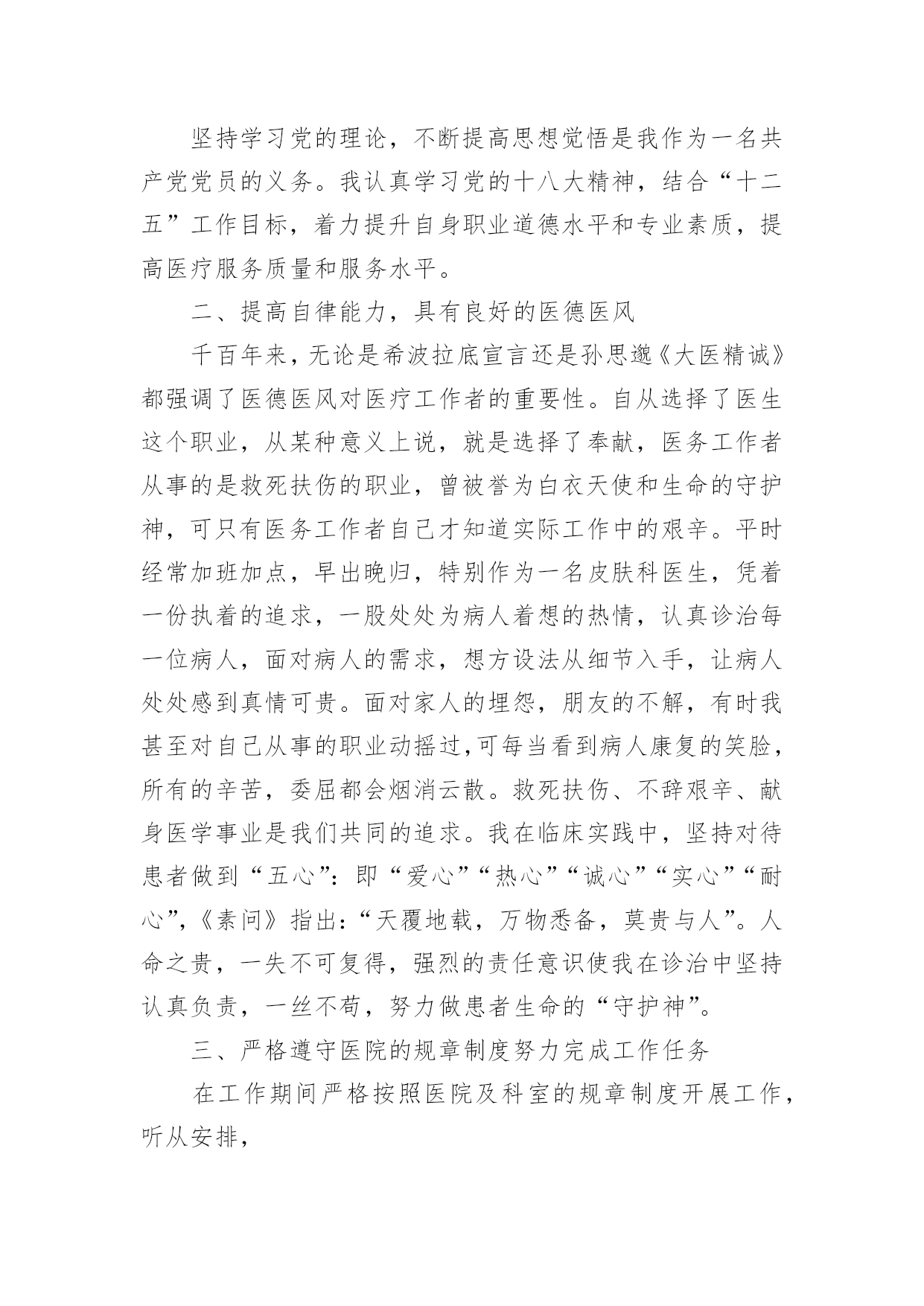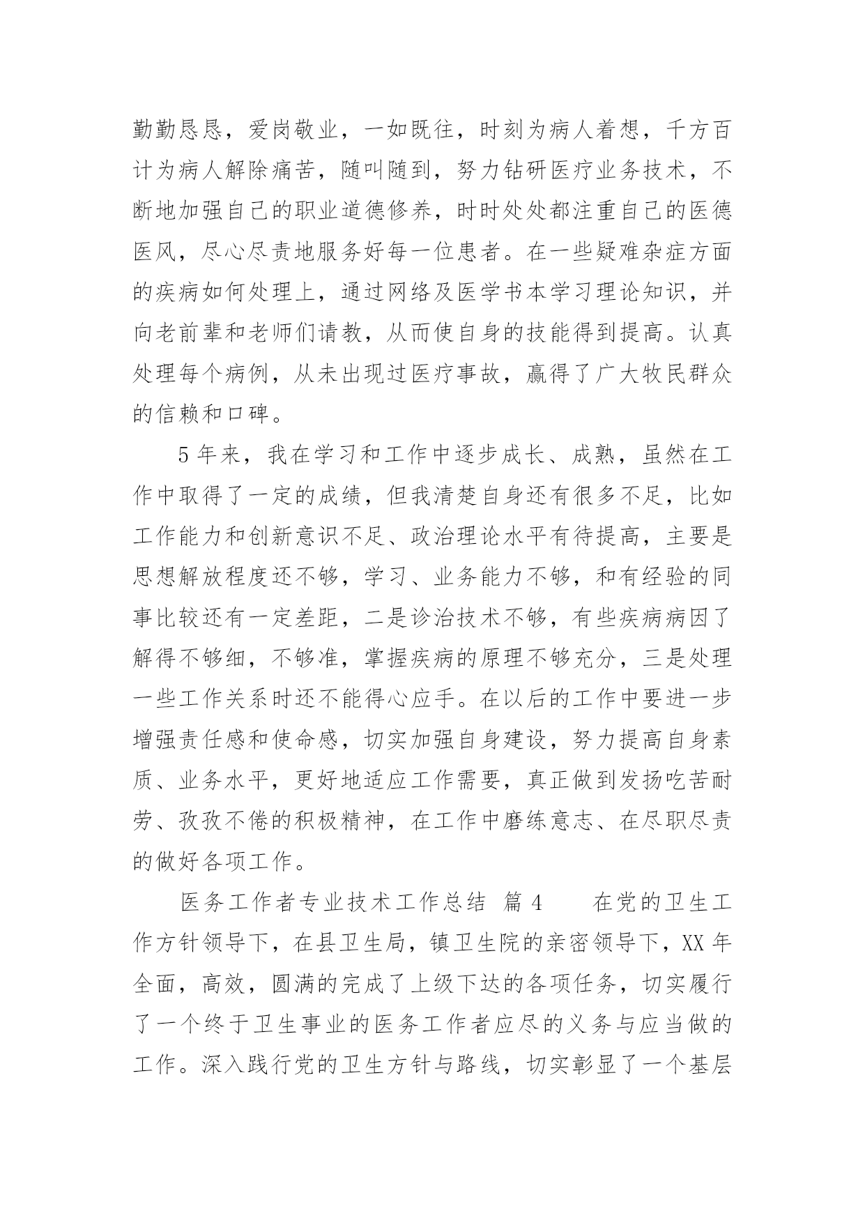 医务工作者专业技术工作总结医务工作者专业技术工作总结(通用15篇)时光在流逝,从不停歇,一段时间的工作已经结束了,回顾这段时间的工作,在取得成绩的同时,我们也找到了工作中的不足和问题,这也意味着,又要准备开始写工作总结了。那么要如何写呢?下面是小编精心整理的医务工作者专业技术工作总结,供大家参考借鉴,希望可以帮助到有需要的朋友。医务工作者专业技术工作总结篇1接到支援xx国际机场的通知,我激动不已,能够作为xx县妇计中心第三批支援机场护士到一线去支援,是我的荣幸。这是最疲惫的日子,却也是我精神上最充实富有的时刻……初来乍到20xx年10月22日早上,带着领导的信任和家人的嘱托,我坚定的踏上了支援xx国际机场的征程。到达驻地后,匆匆放下行李就进入紧张的培训,晚上就开始了10小时的复测体温工作。岗位值守第一次值守在T3国际出发口,我思绪万千,时而为自己参与到抗疫而骄傲自豪,时而又为即将面对疑似发热的病人有些紧张,又生怕自己在紧张之下出现失误……我紧盯复测入口,对红外线体温检测体温超过37.3℃的旅客,我将用水银温度计对旅客进行3次复测,并进行流行病学史的调查,针对发热旅客向上级疫情防控指挥部进行汇报,并配合流调,转运,公安等相关部门进行对接工作,在防控部门统一协调下将发热旅客转入指定机构沟沟坎坎新岗位新职责的紧张与激动很快被忙碌的工作而磨平,两点一线的生活模式、昼夜颠倒的作息时间、紧张压抑的工作环境,一度让我喘不过气来。开始几天的适应期实属不易,肠胃不适、睡眠质量差等问题频频出现。在这关键时刻,正是我们年轻人挺身而出的时候,我不能退缩,必须迅速克服困难……随着作息时间的适应,每日报告零输入病例,我的工作、生活、心态逐渐步入了正轨。惊心动魄,准备“战斗”用水银温度计复测体温过程中,遇到了2位红外线检测异常旅客。清晰的记得,其中一位旅客一次与二次复测体温均是37。9度,体温的居高不下,那一刻,我能感觉到旅客的慌乱与紧张,在担心之余,我积极安抚旅客情绪。时间一分一秒的过去,千呼万唤的第三次复测结果终于出来了,“哇,36.5度,体温恢复正常”,我悬着的心也随之放下。这也给了我最深的感触:不管是日常防护,还是防疫前线,细致入微、耐心倾听的工作态度都是相通的,监测体温这项工作,并不是冷冰冰的你问我答,也需要有心人用“温度”去投入。后方支援,暖心虽工作时间特殊,但酒店工作人员会按时准备好饭菜,机场防控指挥部还会不定期发放慰问品。还有,我的医院、我的领导我的同事及家人朋友们对我的支持与鼓励……感恩,虽然在前线的是我,但是给予各个方面鼓励和支持的是你们!我更加深刻地体会到:我不是一个人在战斗!也更能明白,要打赢这场看不见硝烟的战役,靠的不是一人一岗,而是全员协力,勠力同心,才能一步步走向胜利。充电学习,提高能力今天休息,大多数时间都在补觉,身体放松,学习不能松,工作一段时间以来,与大家配合的越来越好,但也有很多需要改进的地方,正好趁此机会交流学习。目前世界上发现了冠状病毒新的变异体,我必须对国外疫情的最新情况进行了解掌握,毕竟,这也是场“战役”嘛,可不能打无准备之仗啊。这段时间,常常穿着防护服来返于隔离点、岗位之间,就像是一群行星围绕着恒星转动,平淡却能稳而向前,平凡亦有荧荧之光。医路前行,明天会更好风雨由驻,勿忘秉烛夜游。面对复杂疫情形势,我深知肩上的重任和责任,作为健康守门人,我定会在工作中注意好各个细节,在思想上高度重视,严格防控,筑牢入境关口安全网,守护好空中大门,圆满完成工作任务。“默默坚守,用心服务”是我的工作格言,或许我做的微不足道,但愿以萤萤之火为“抗疫”增添微光。医务工作者专业技术工作总结篇2一、坚持学习党的理论,不断提高思想觉悟坚持学习党的理论,不断提高思想觉悟是我作为一名共产党党员的义务。我认真学习党的十八大精神,结合“十二五”工作目标,着力提升自身职业道德水平和专业素质,提高医疗服务质量和服务水平。二、提高自律能力,具有良好的医德医风千百年来,无论是希波拉底宣言还是孙思邈《大医精诚》都强调了医德医风对医疗工作者的重要性。自从选择了医生这个职业,从某种意义上说,就是选择了奉献,医务工作者从事的是救死扶伤的职业,曾被誉为白衣天使和生命的守护神,可只有医务工作者自己才知道实际工作中的艰辛。平时经常加班加点,早出晚归,特别作为一名皮肤科医生,凭着一份执着的追求,一股处处为病人着想的热情,认真诊治每一位病人,面对病人的需求,想方设法从细节入手,让病人处处感到真情可贵。面对家人的埋怨,朋友的不解,有时我甚至对自己从事的职业动摇过,可每当看到病人康复的笑脸,所有的辛苦,委屈都会烟消云散。救死扶伤、不辞艰辛、献身医学事业是我们共同的追求。我在临床实践中,坚持对待患者做到“五心”:即“爱心”“热心”“诚心”“实心”“耐心”,《素问》指出:“