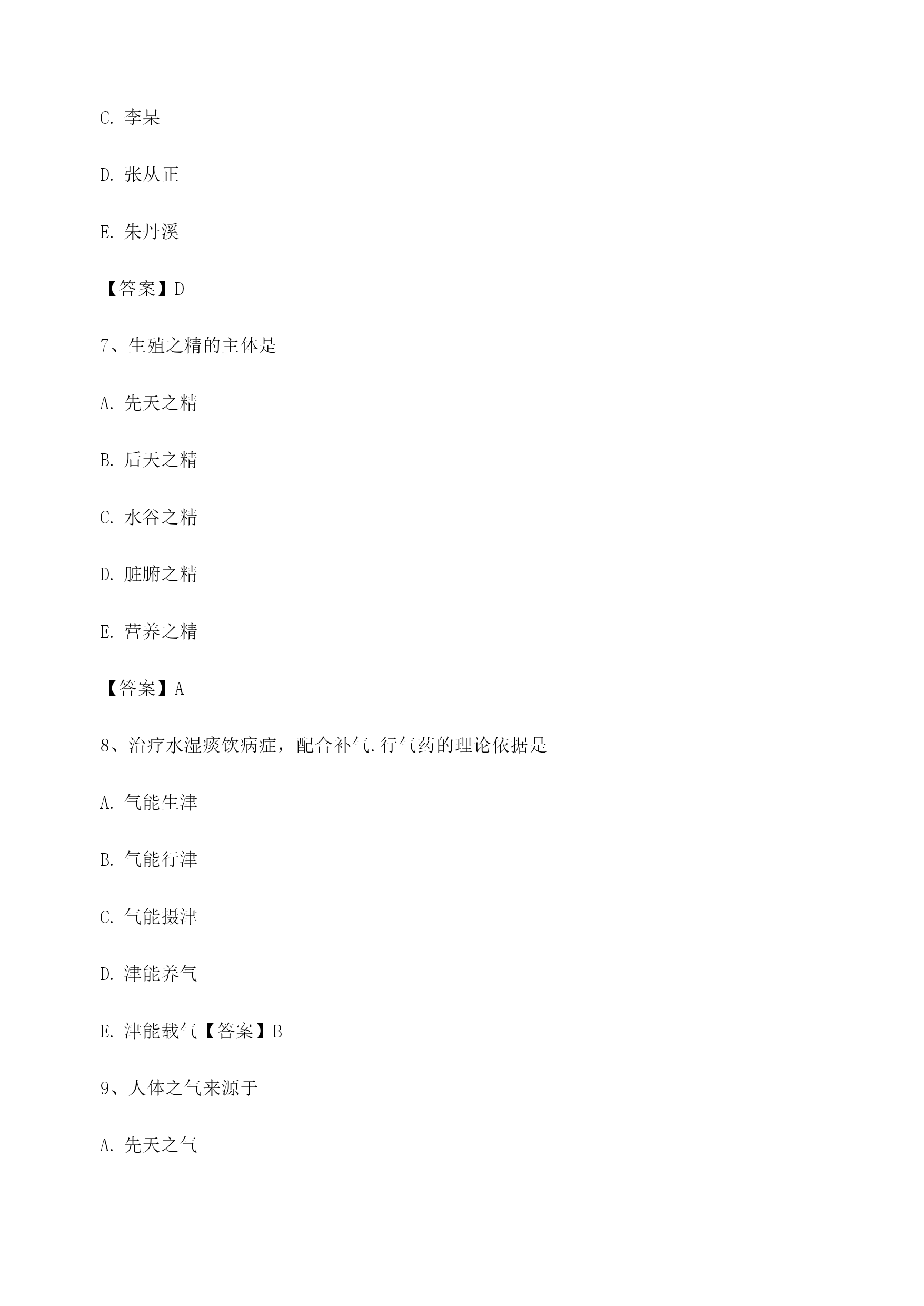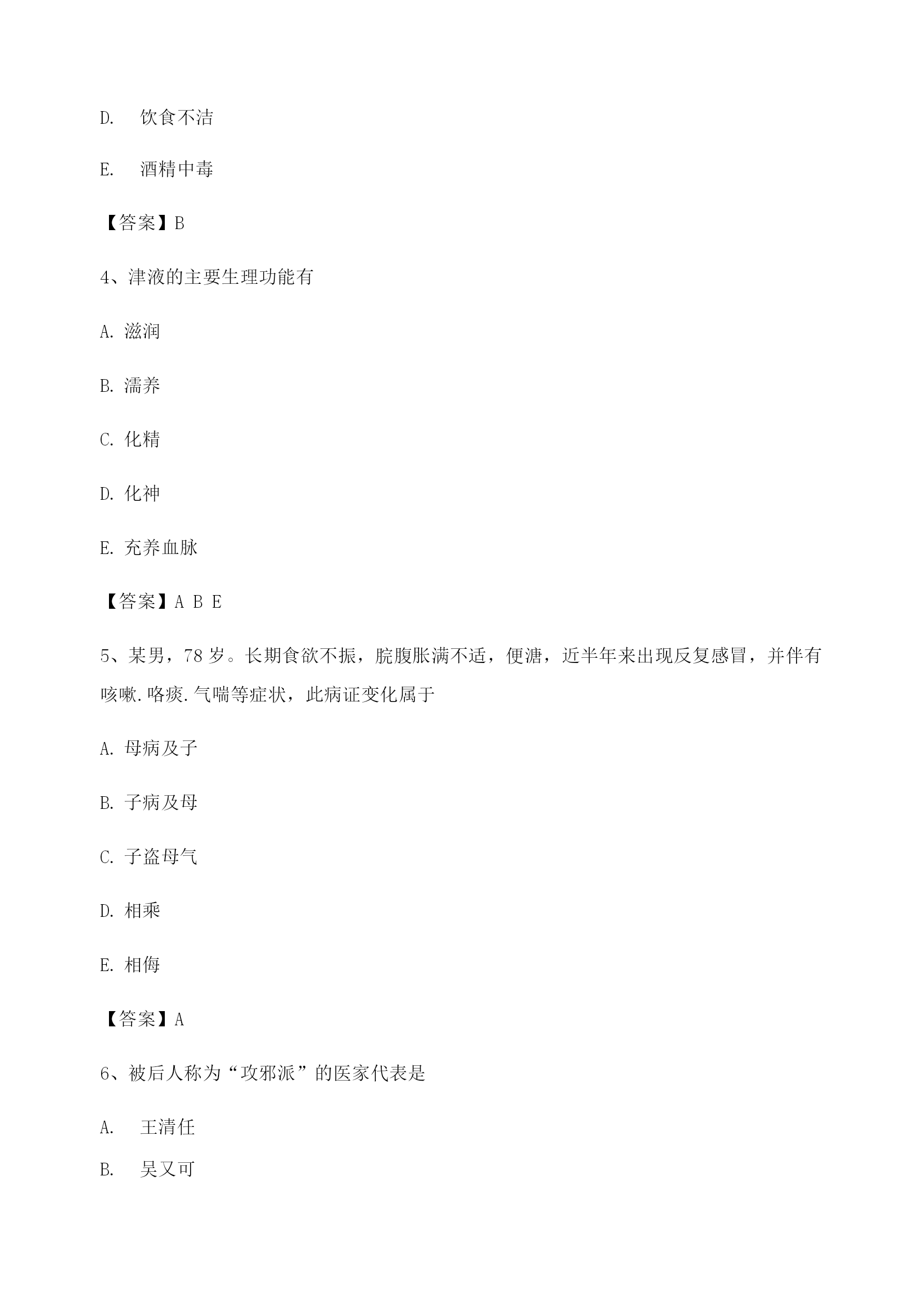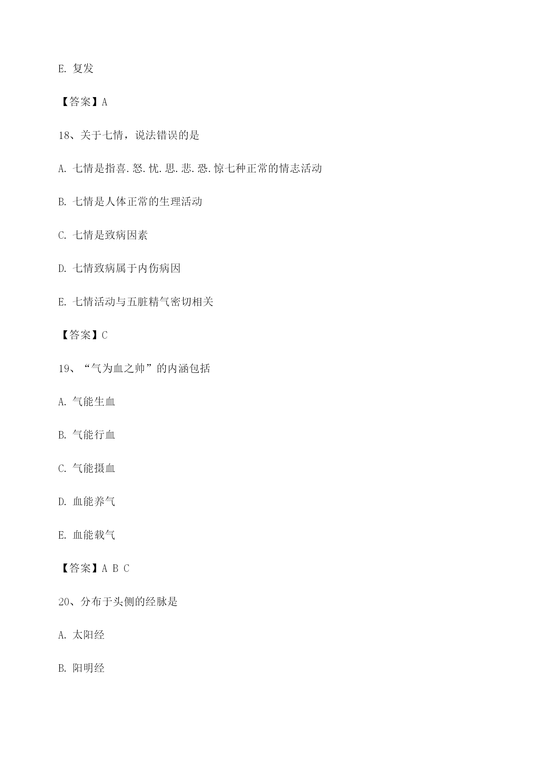 【选择题】中医基础理论考试模拟试卷(1)
