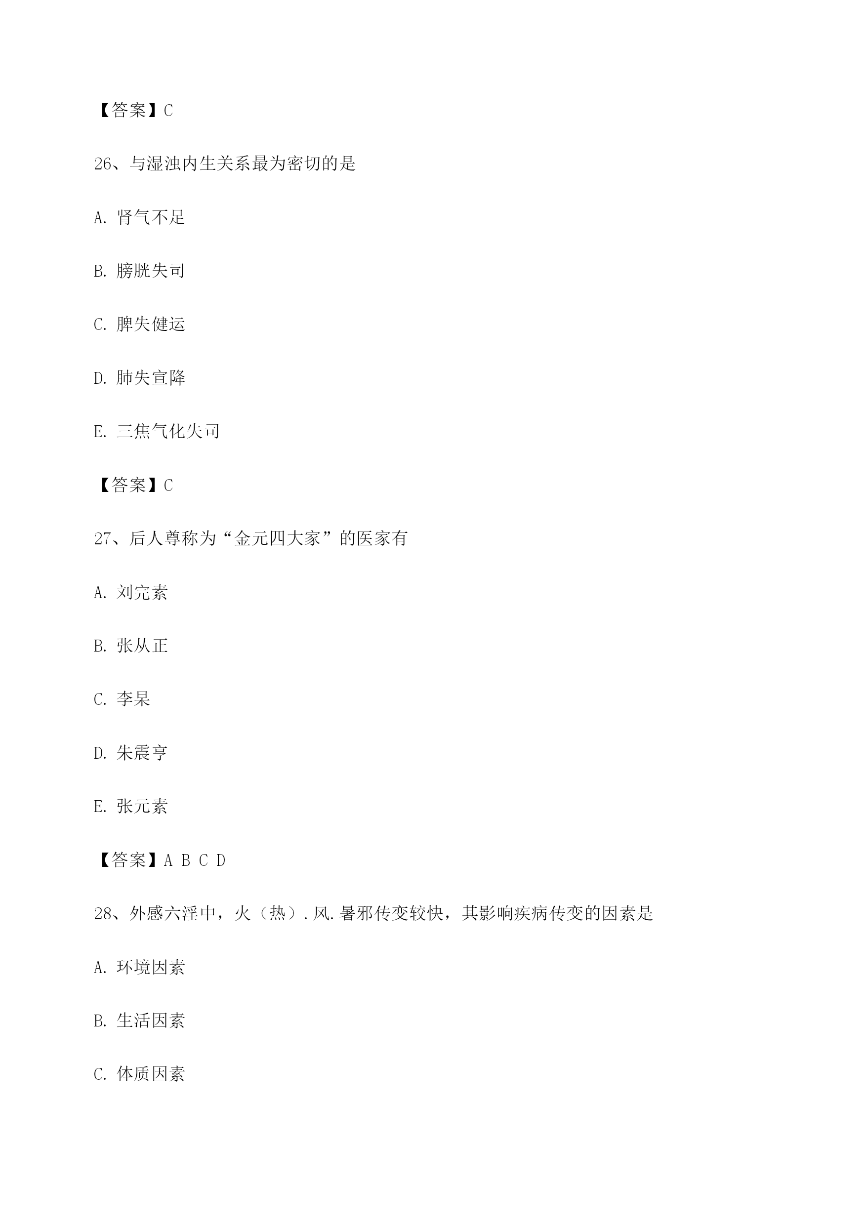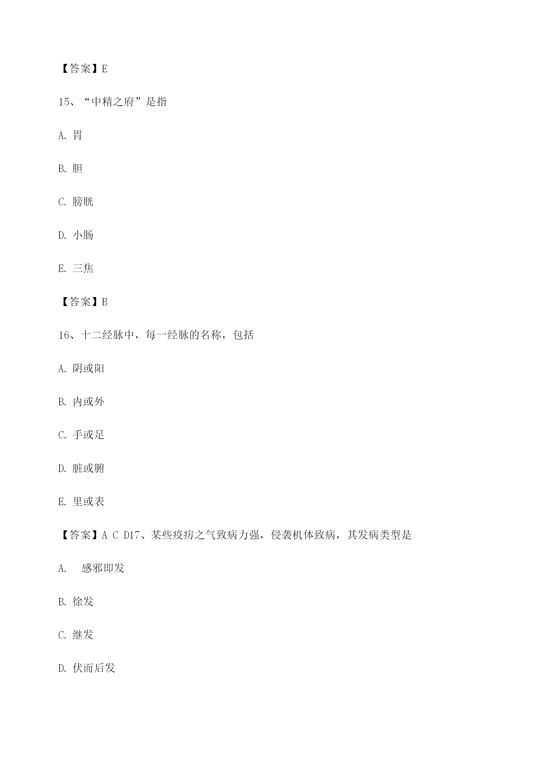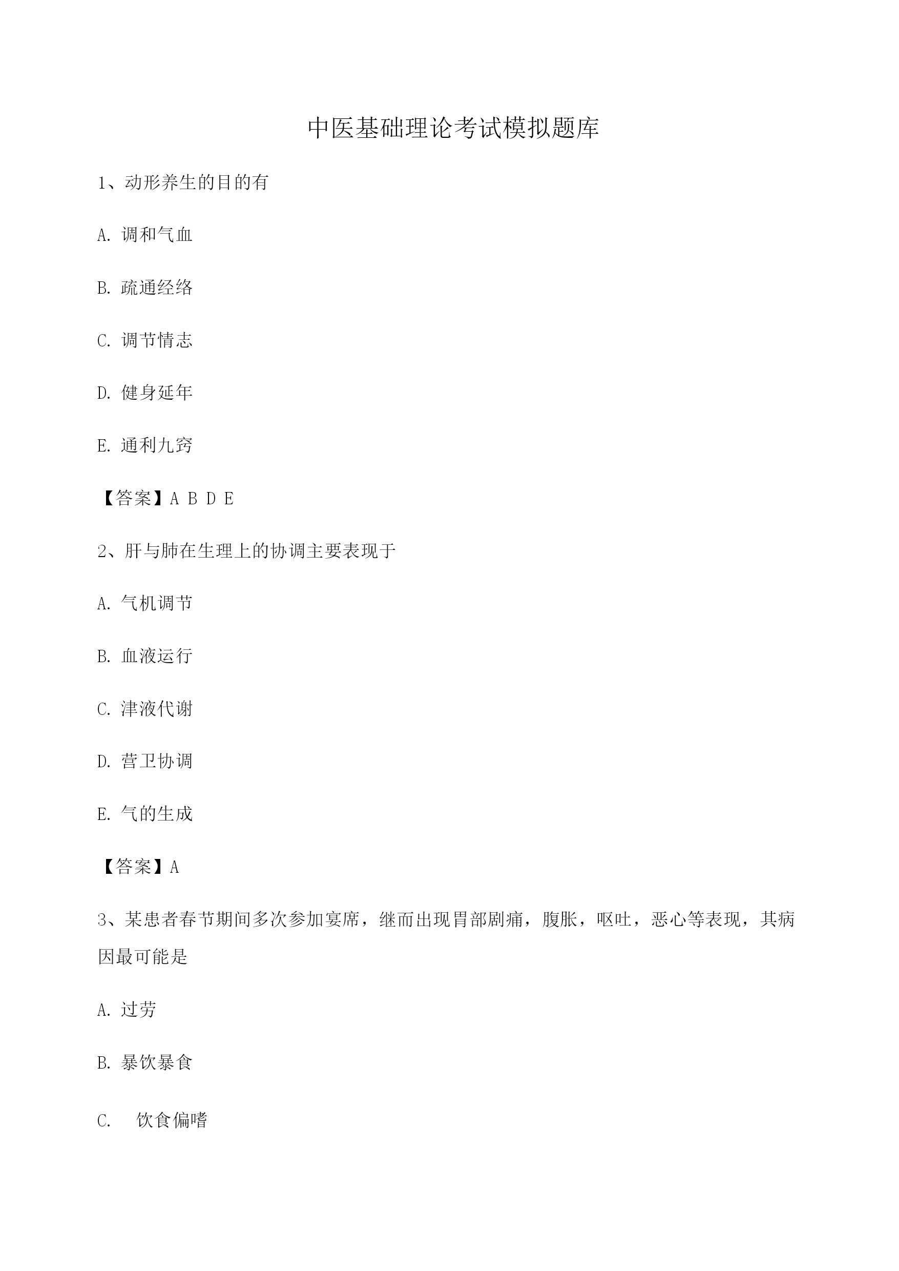 【选择题】中医基础理论考试模拟试卷(1)