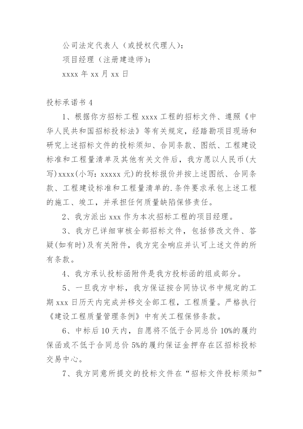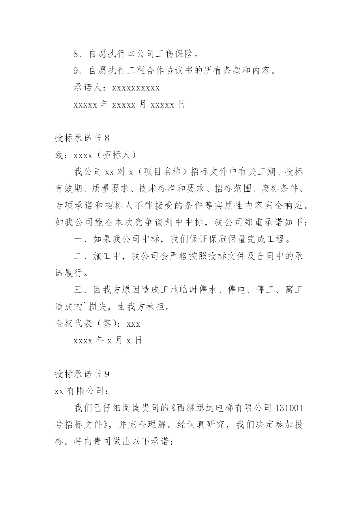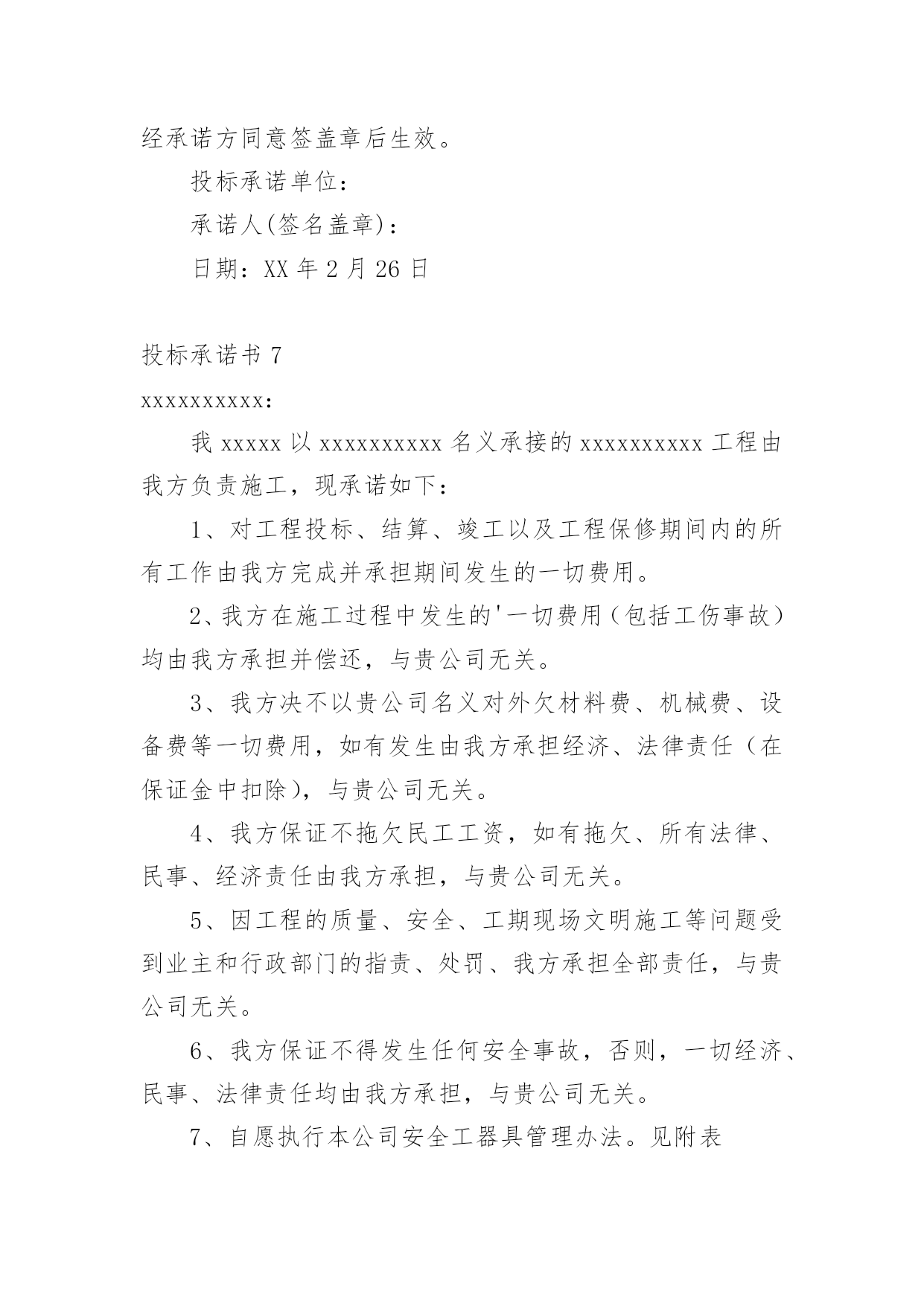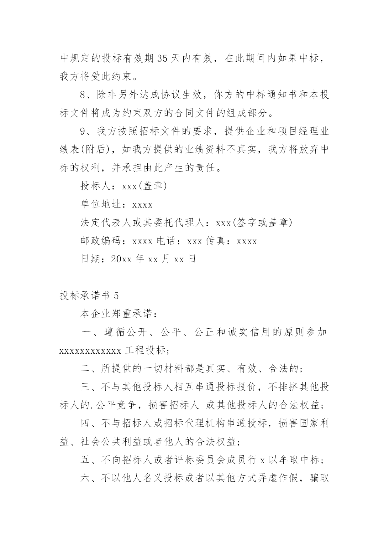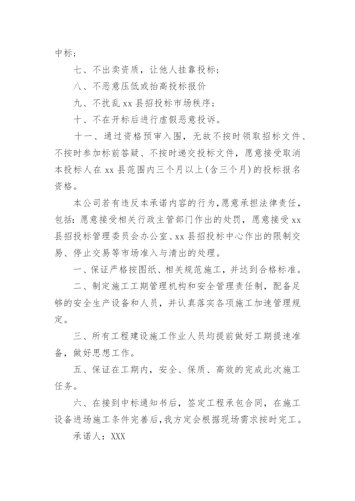 投标承诺书投标承诺书(集合15篇)在现实社会中,我们可以使用承诺书的机会越来越多,承诺书仅是一方的声明及义务性的认可,其法律效力与合同是不同的。还是对承诺书一筹莫展吗?下面是小编收集整理的投标承诺书,仅供参考,欢迎大家阅读。投标承诺书1中国物业管理协会:本公司认真研究了xx广场xx号楼项目(xx)前期物业管理服务招投标文件后,愿意接受招标文件的要约条件,愿意参加本次招标。本公司声明如下:同意按照招标文件要求参与竞标,否则视为自动放弃。在签署xx广场xx号楼项目(xx)前期物业服务(来自:)合同之前,本招标文件和贵司的.中标通知书构成约束双方的契约附件。如我公司中标,将按照贵司规定的时间签订xx广场xx号楼项目(xx)前期物业服务合同,并按照要求准时进驻进行物业管理全方位服务。我方同意,在从规定的递交投标响应文件截止之日起90个日历日内,自觉遵守本次招投标活动的每项规定。投标单位名称:xx物业管理有限公司(公章)法人代表:xxx日期:xx地址:xx联系人:xx联系电话:xxxxx投标承诺书2我单位在参加____项目的投标活动中,郑重承诺如下:1、我方在此声明,本次招标投标活动中申报的所有资料都是真实、准确完整的,如发现带给虚假资料,或与事实不符而导致投标无效,甚至造成任何法律和经济职责,完全由我方负责;2、我方在本次投标活动中绝无资质挂靠、串标、围标情形,若经贵方查出,立即取消我方投标资格并承担相应的法律职责;3、我方在以往的招标采购活动中,无重大违法、违规的不良记录;或虽有不良记录,但已超过处理期限;4、我方未被地市级及其以上行政主管部门做出取消投标资格的.处罚且该处罚在有效期内的;5、我方一旦中标,将严格按照投标文件中所承诺的报价、质量、工期、投标方案、项目经理等资料组织实施;6、我方一旦中标,将按规定及时与建设单位签订合同。投标人名称:(盖公章)法定代表人(或授权代理人):(签字)日期:年月日投标承诺书3我单位在参加活动中,郑重承诺如下:1、我方在此声明,本次投标活动中申报的所有资料都是真实有效、准确完整的,如发现提供虚假资料,或与事实不符,造成的'任何法律和经济责任,完全由我方负责;且三年不参与安徽华仑国际文化发展有限责任公司的招投标活动;2、我方在本次投标活动中绝无资质挂靠、串标、围标情形,若经查证属实,立即取消我方投标资格并承担相应的法律责任,且三年不参与安徽华仑国际文化发展有限责任公司的招投标活动;3、我方在本次投标活动拟任项目经理(注册建造师)是与我单位签订劳动合同并依法办理了社会养老保险的正式职工,到场项目经理与提供的注册建造师相关证书相符,若经查证不符,立即取消我方投标资格并承担相应的法律责任,且三年不参与安徽华仑国际文化发展有限责任公司的招投标活动;同时承诺若中标,则同意项目经理证书自签订合同之日起,交由招标人保管至项目工程封顶;4、我方承诺在本次招标活动中若出现投诉,本项目拟派项目经理、编制投标文件的工程造价人员将积极配合调查,否则将承担相应法律责任,且三年不参与安徽华仑国际文化发展有限责任公司的招投标活动。投标人名称(加盖单位公章):公司法定代表人(或授权代理人):项目经理(注册建造师):xxxx年xx月xx日投标承诺书41、根据你方招标工程xxxx工程的招标文件、遵照《中华人民共和国招标投标法》等有关规定,经踏勘项目现场和研究上述招标文件的投标须知、合同条款、图纸、工程建设标准和工程量清单及其他有关文件后,我方愿以人民币(大写)xxxx(小写:xxxxx元)的投标报价并按上述图纸、合同条款、工程建设标准和工程量清单的.条件要求承包上述工程的施工、竣工,并承担任何质量缺陷保修责任。2、我方派出xxx作为本次招标工程的项目经理。3、我方已详细审核全部招标文件,包括修改文件、答疑(如有时)及有关附件,我方完全响应并认可上述文件的所有条款。4、我方承认投标函附件是我方投标函的组成部分。5、一旦我方中标,我方保证按合同协议书中规定的工期xxx日历天内完成并移交全部工程,工程质量。严格执行《建设工程质量管理条例》中有关工程保修条款。6、中标后10天内,自愿将不低于合同总价10%的履约保函或不低于合同总价5%的履约保证金押存在区招标投标交易中心。7、我方同意所提交的投标文件在“招标文件投标须知”中规定的投标有效期35天内有效,在此期间内如果中标,我方将受此约束。8、除非另外达成协议生效,你方的中标通知书和本投标文件将成为约束双方的合同文件的组成部分。9、我方按照招标文件的要求,提供企业和项目经理业绩表(附后),如我方提供的业绩资料不真实,我方将放弃中标的权利,并承担由此产生的责任。投标人:xxx(盖章)单位地址:xxxx法定代表人或其委托代理人:xxx(签字或盖章)邮政编码:xxxx电话:xxx传真:xxxx日