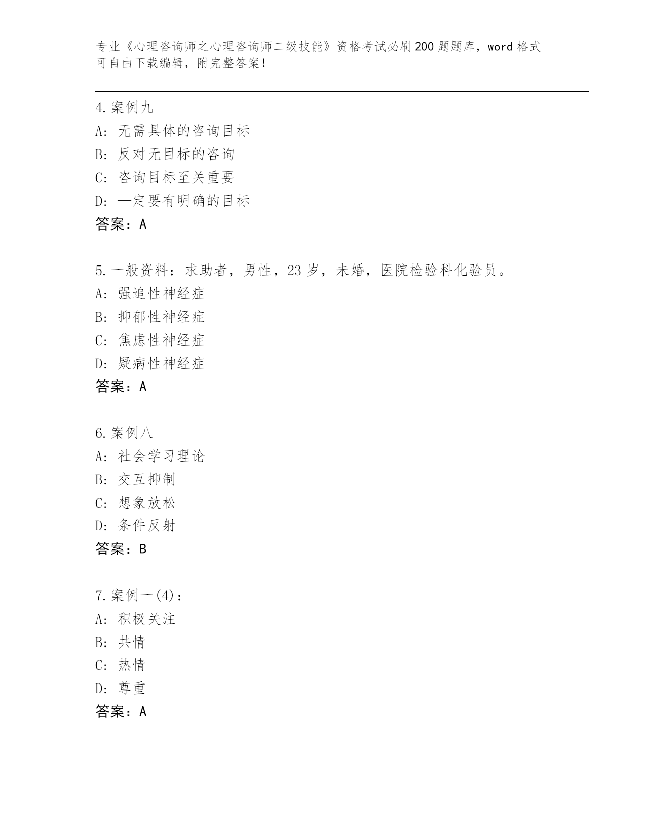 贵州省西秀区《心理咨询师之心理咨询师二级技能》考试必刷200题题库大全含答案(培优A卷)