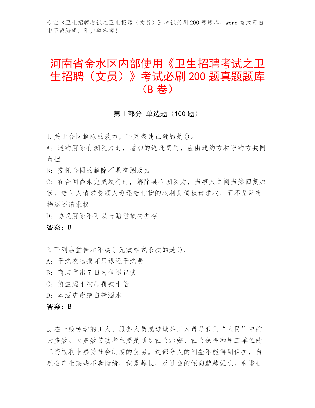 河南省金水区内部使用《卫生招聘考试之卫生招聘(文员)》考试必刷200题真题题库(B卷)