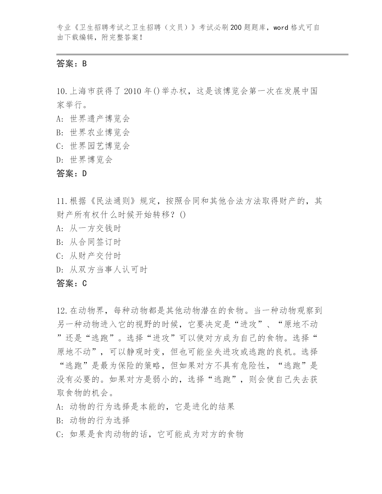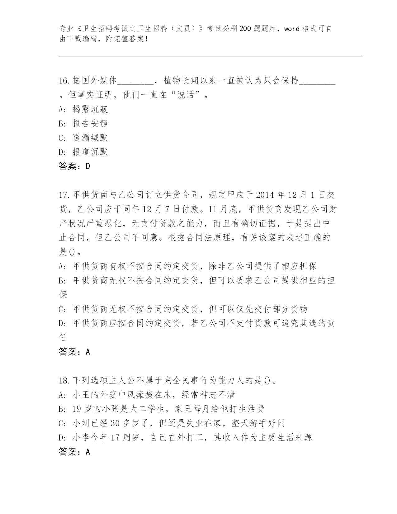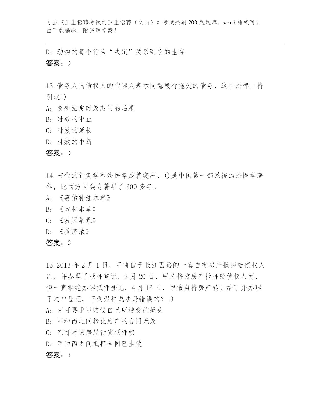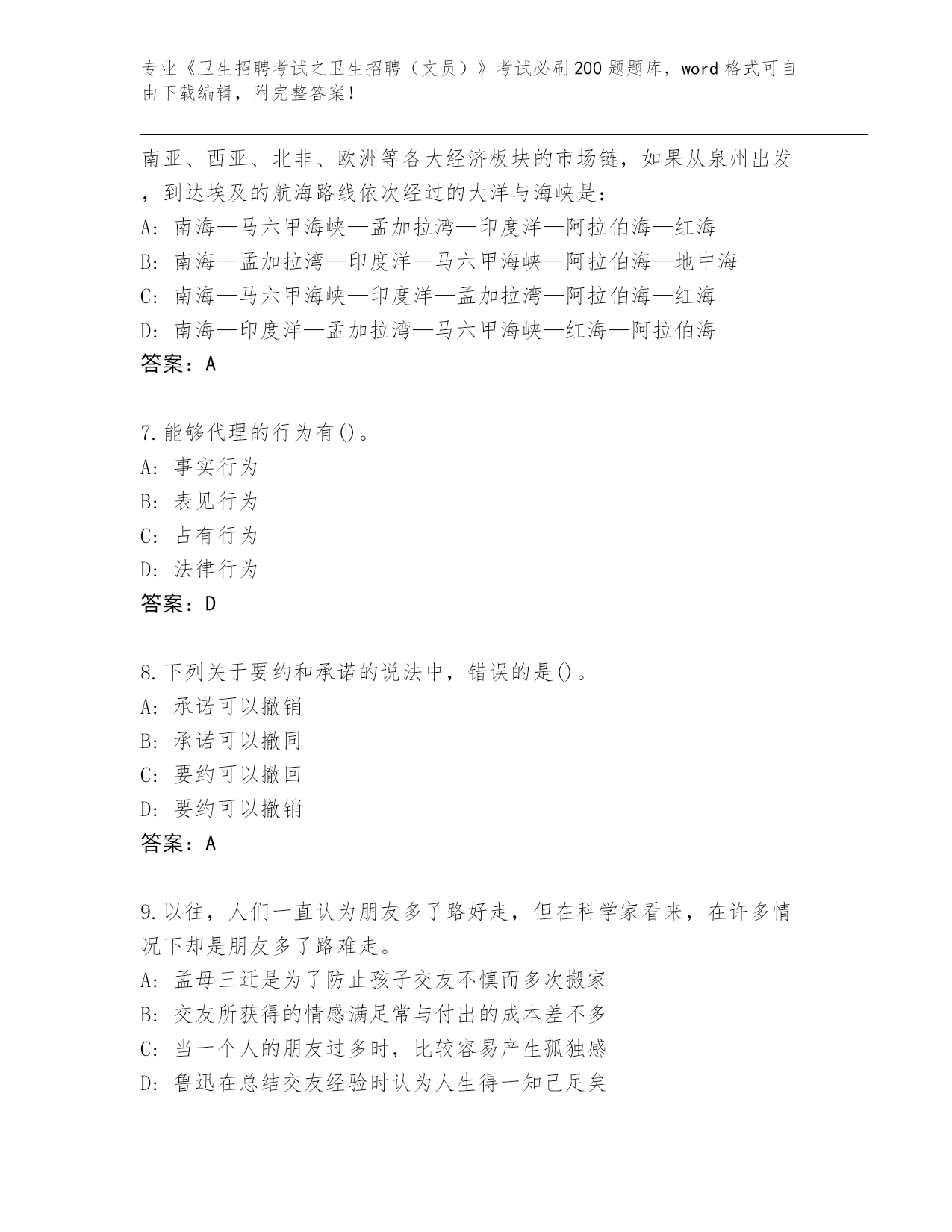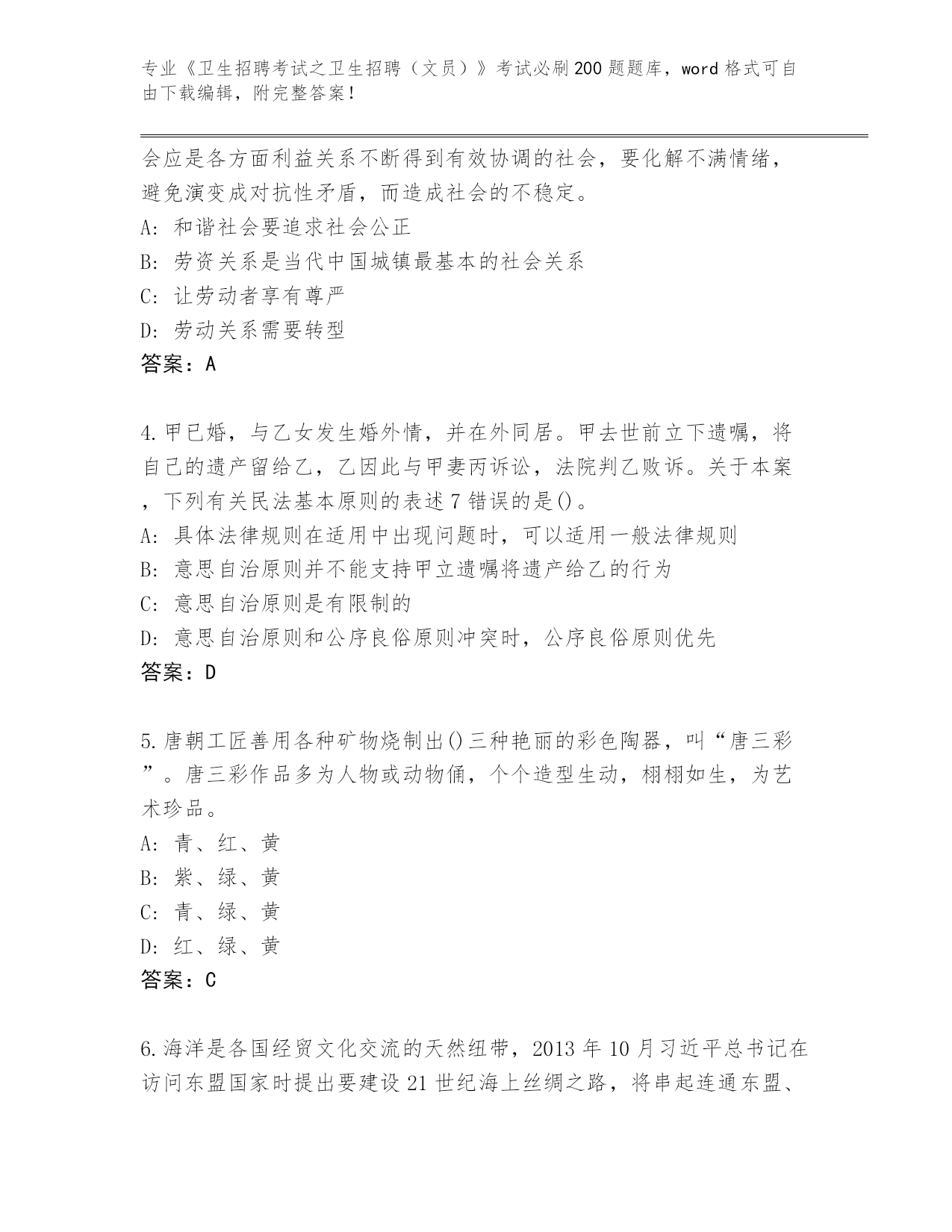 内部使用河南省《卫生招聘考试之卫生招聘(文员)》考试必刷200题内部题库及答案【最新】