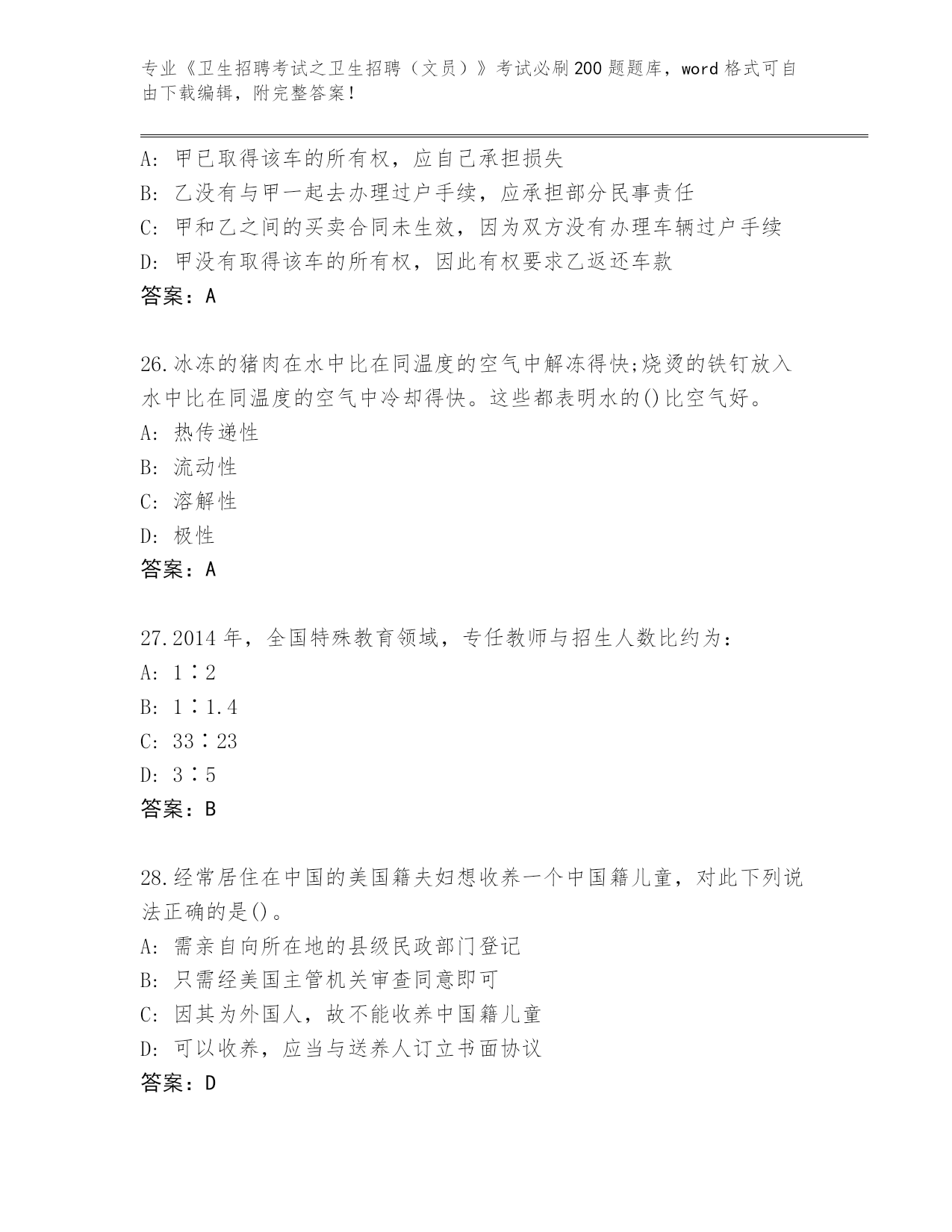 河南省扶沟县内部使用《卫生招聘考试之卫生招聘(文员)》考试必刷200题内部题库(历年真题)