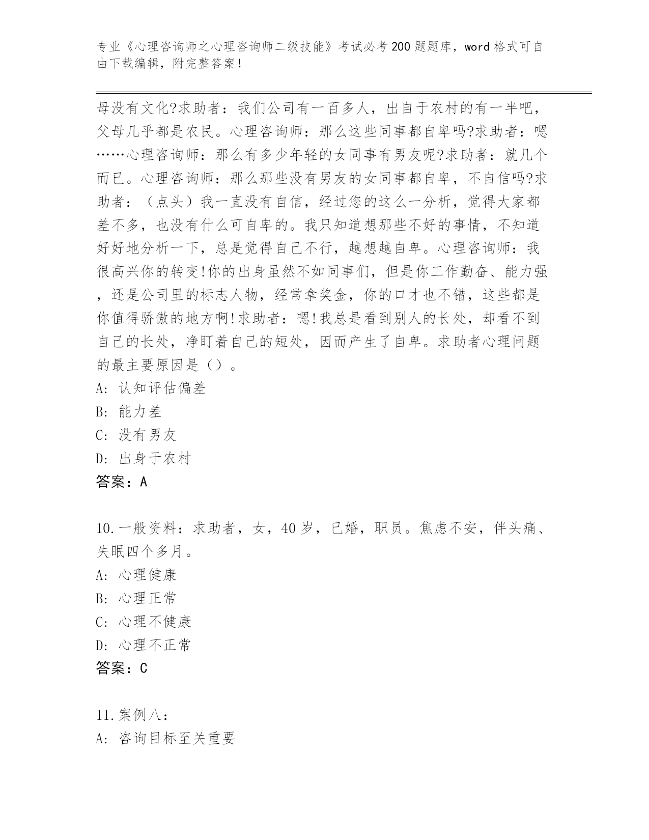 广东省2024《心理咨询师之心理咨询师二级技能》考试必考200题完整版附下载答案