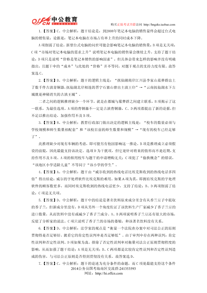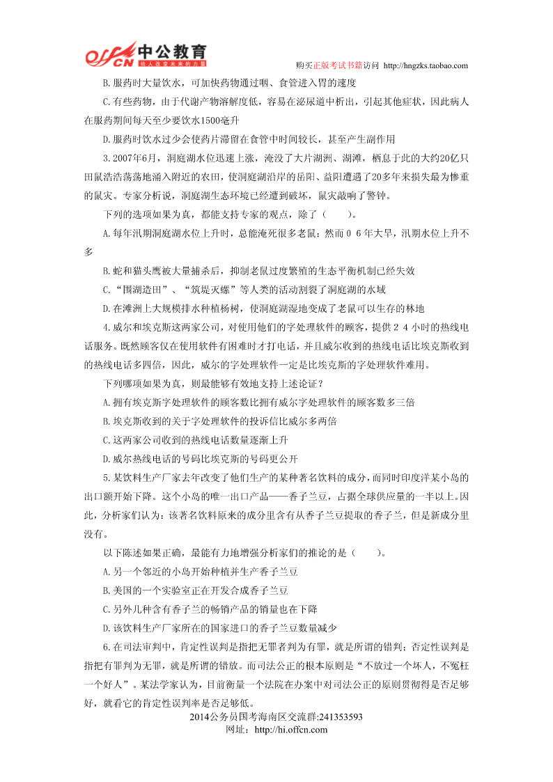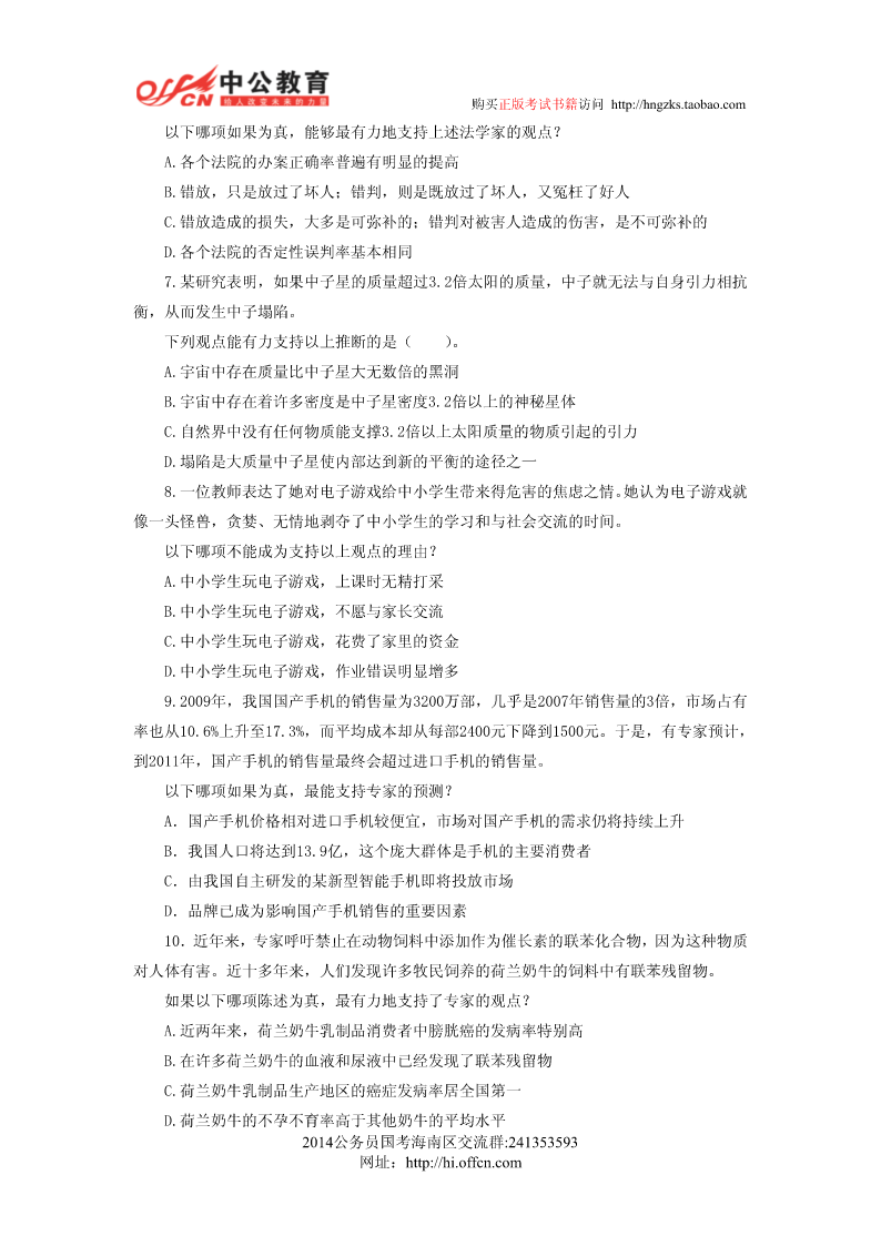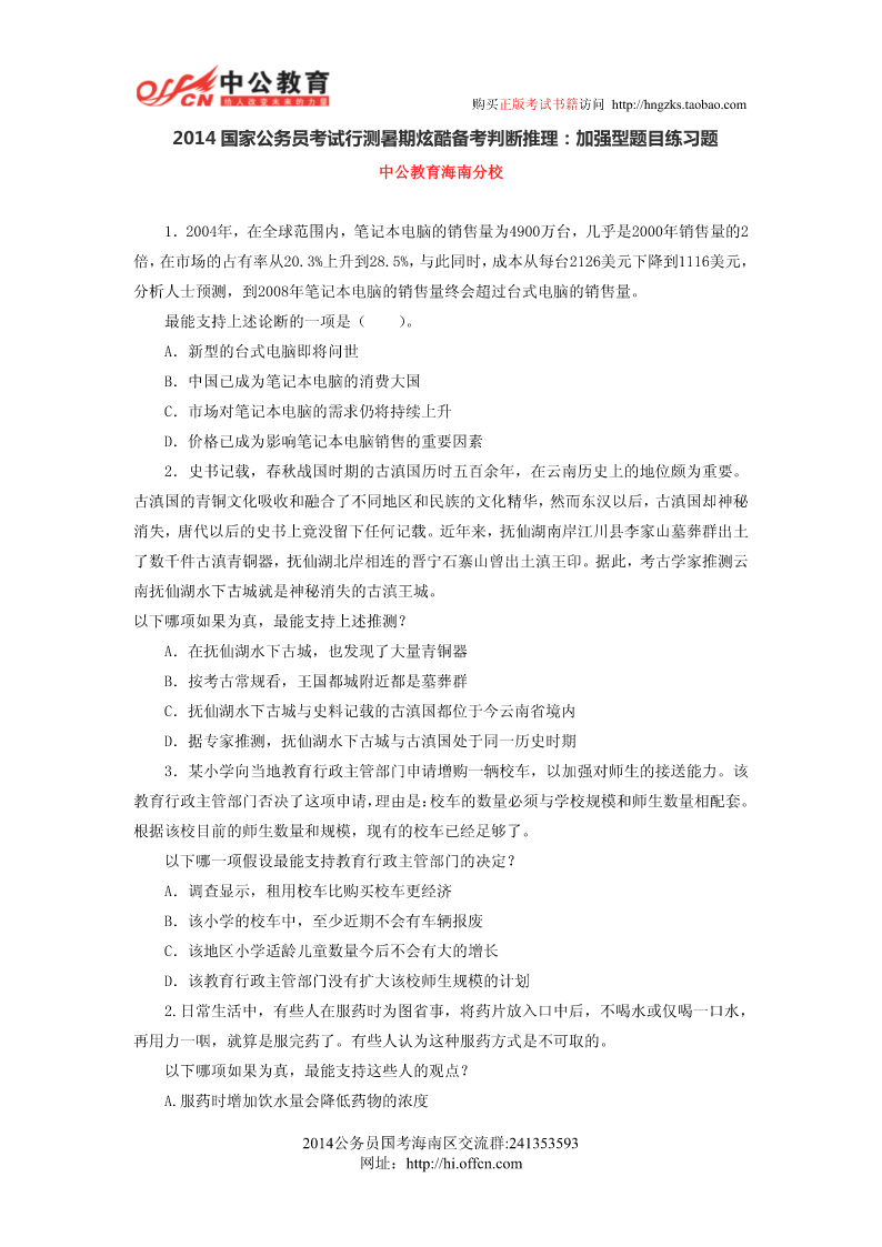 2014国家公务员考试行测暑期炫酷备考判断推理:加强型题目练习题.pdf