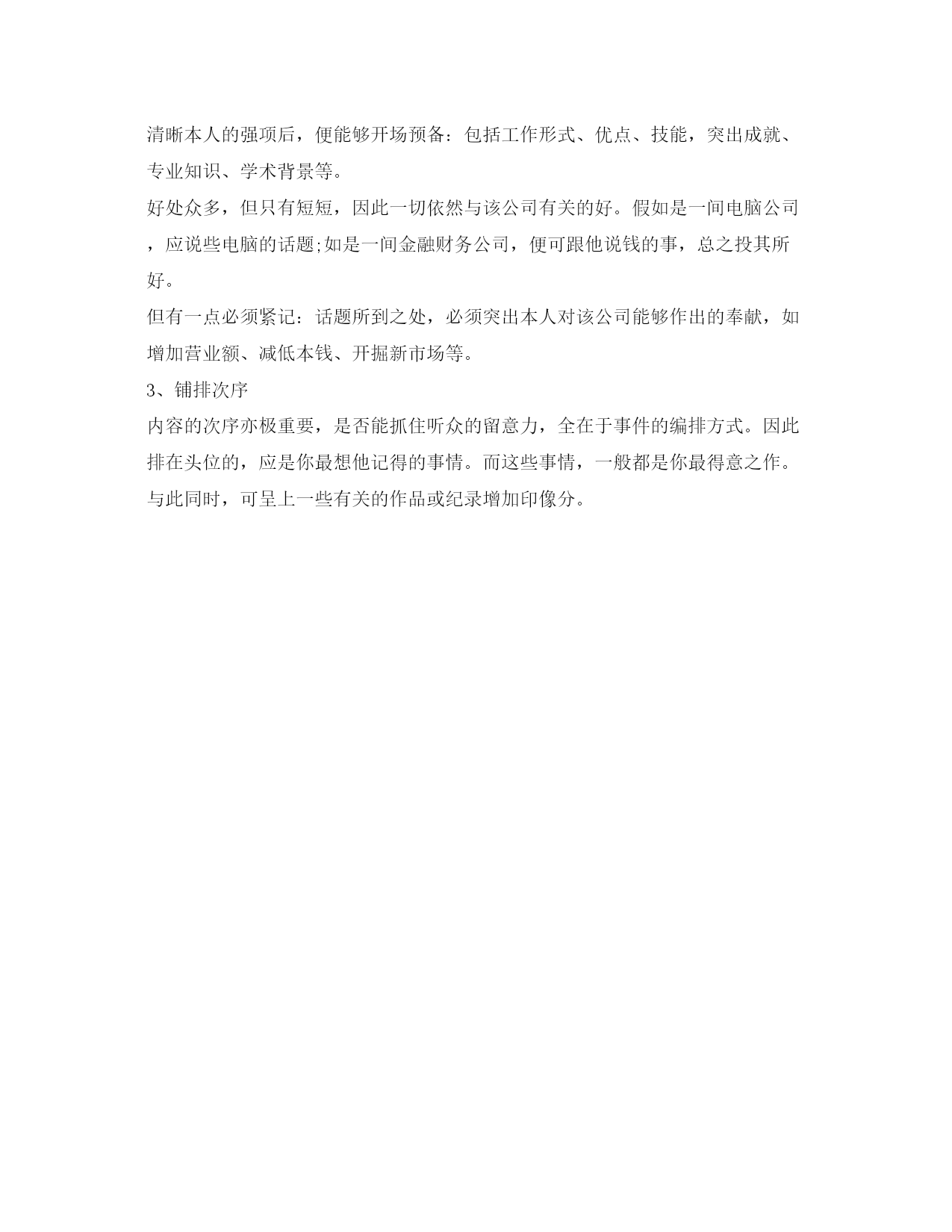 应聘如何自我介绍参考每一次的应聘会给许多的求职者成功的时机,同时失败率也相对非常高。缘故都在于第一天的应聘自我介绍上。应聘如何自我介绍才能使成功的机率加大呢?以下给您几点建议:1、如何自我认识想一矢中的,首先必须认清自我,一定要弄清以下三个咨询题。你如今是干什么的?你今后要干什么?你过去是干什么的?这三个咨询题不是按时间顺序从过去到如今再到今后,而是从如今到今后再到过去。其微妙在于:假如你被雇用,雇主选中的是如今的你,他希望利用的是今后的你,而这今后又基于你的历史和现状。因此,第一个咨询题,你是干什么的?如今是干什么的?答复这个咨询题,要点是:你是你本人,不是别的什么人。除非你把本人与别人区别开来,在共同点的根底上更强调不同点,否则你绝无可能在众多的应征求职者中夺魁。关于这第一个咨询题,自我反省越深,自我鉴定就越成功。随后,着手答复第二个咨询题:你今后要干什么?假如你申请的是一份举足轻重的工作,雇主确信非常关注你对今后的自我设计。你的答复要详细,合理,并符合你如今的身份,要有一个更别致的风格。然后,再着手答复最后一个咨询题:你过去是干什么的?你的过去所以都在履历上已有反映。你在面试中再度答复这个咨询题时,不可忽略之处是:不要抖落一个与你的今后毫不相关的过去。假如你中途完全改行,更要在描绘你的执着、职业目的的一贯性上下些功夫。要做到这一点,又要忠实于事实和本人,最简单的方法是:找到过去与今后的联络点,搜集过去的材料,再按目的主次陈列。用如此的方法,以如今为出发点,以今后为目的,以过去为证明,最重要的是加深了你的自我分析和理解。事实上,在面试的时候不一定有时机或者有必要照搬你的大作,但这三个咨询题的内在联络点一定会表达在自我表述的整体感受中,使你的形象栩栩如生。2、投其所好清晰本人的强项后,便能够开场预备:包括工作形式、优点、技能,突出成就、专业知识、学术背景等。好处众多,但只有短短,因此一切依然与该公司有关的好。假如是一间电脑公司,应说些电脑的话题;如是一间金融财务公司,便可跟他说钱的事,总之投其所好。但有一点必须紧记:话题所到之处,必须突出本人对该公司能够作出的奉献,如增加营业额、减低本钱、开掘新市场等。3、铺排次序内容的次序亦极重要,是否能抓住听众的留意力,全在于事件的编排方式。因此排在头位的,应是你最想他记得的事情。而这些事情,一般都是你最得意之作。与此同时,可呈上一些有关的作品或纪录增加印像分。