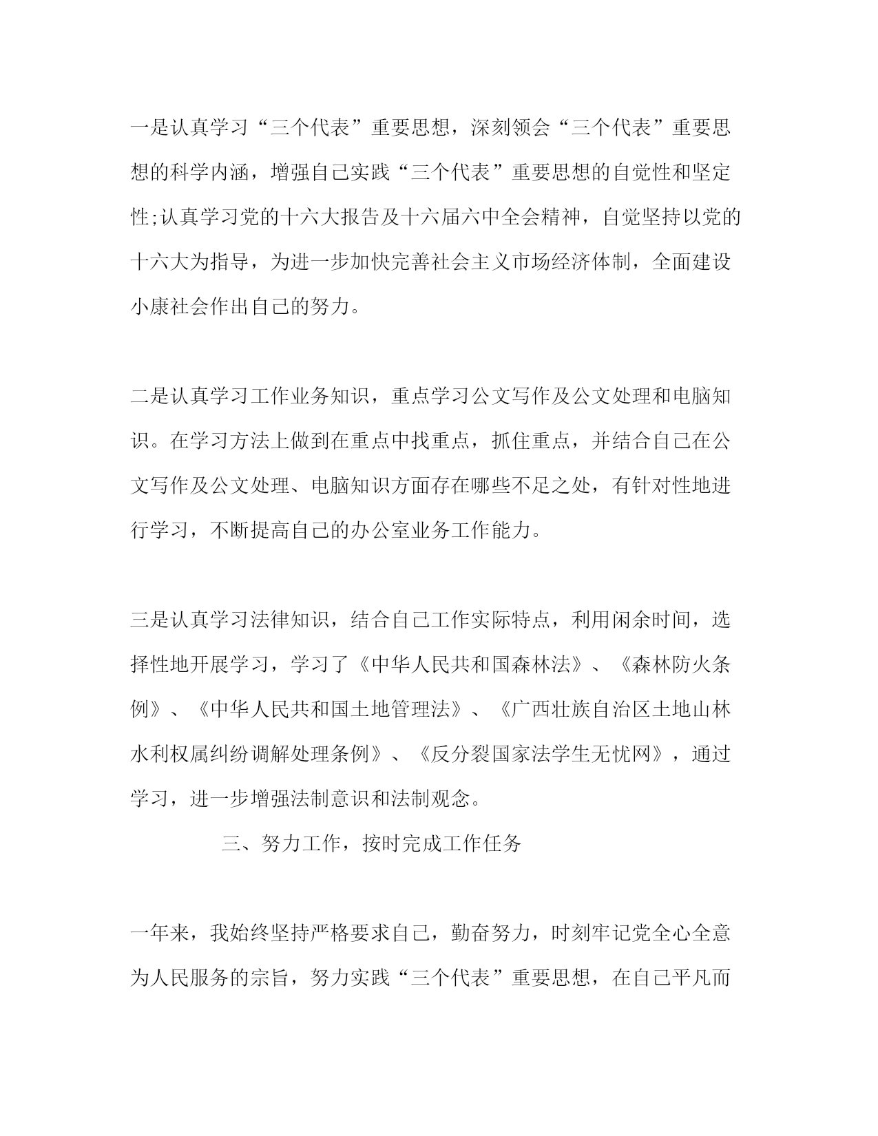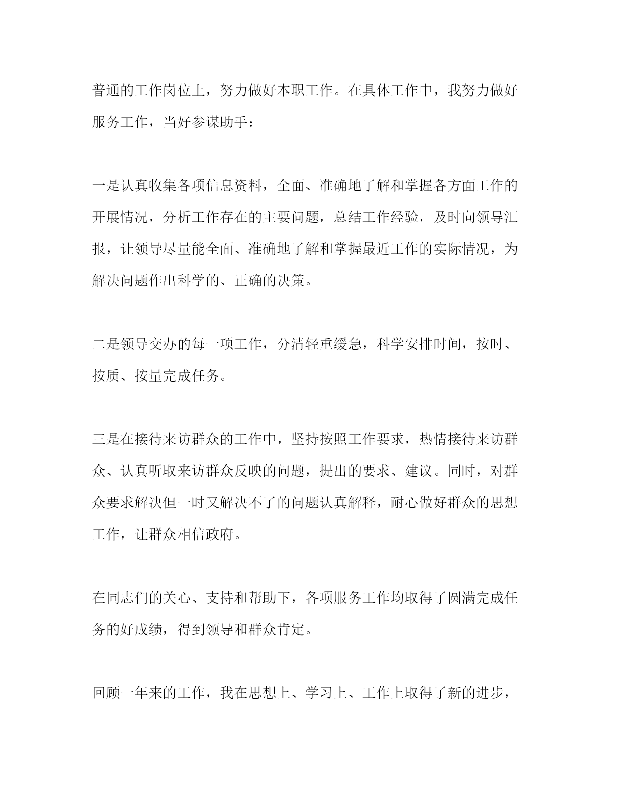 PAGE此资料由网络收集而来,如有侵权请告知上传者立即删除。资料共分享,我们负责传递知识。公务员工作总结怎么写一、严于律已,自觉加强党性锻炼,党性修养和政治思想觉悟进一步提高一年来,我始终坚持运用马克思列宁主义的立场、观点和方法论,运用辩证唯物主义与历史唯物主义去分析和观察事物,明辨是非,坚持真理,坚持正确的世界观、人生观、价值观,用正确的世界观、人生观、价值观指导自己的学习、工作和生活实践,在思想上积极构筑抵御资产阶级民主和自由化、拜金主义、自由主义等一切腐朽思想侵蚀的坚固防线。热爱祖国,热爱中国共产党,热爱社会主义,拥护中国共产党的领导,拥护改革开放,坚信社会主义最终必然战胜资本主义,对社会主义充满必胜的信心。认真贯彻执行党的路线、方针、政策,为加快社会主义建设事业认真做好本职工作。工作积极主动,勤奋努力,不畏艰难,尽职尽责,在平凡的工作岗位上作出力所能及的贡献。二、强化理论和业务学习,不断提高自身综合素质我重视加强理论和业务知识学习,在工作中,坚持一边工作一边学习,不断提高自身综合素质水平。一是认真学习“三个代表”重要思想,深刻领会“三个代表”重要思想的科学内涵,增强自己实践“三个代表”重要思想的自觉性和坚定性;认真学习党的十六大报告及十六届六中全会精神,自觉坚持以党的十六大为指导,为进一步加快完善社会主义市场经济体制,全面建设小康社会作出自己的努力。二是认真学习工作业务知识,重点学习公文写作及公文处理和电脑知识。在学习方法上做到在重点中找重点,抓住重点,并结合自己在公文写作及公文处理、电脑知识方面存在哪些不足之处,有针对性地进行学习,不断提高自己的办公室业务工作能力。三是认真学习法律知识,结合自己工作实际特点,利用闲余时间,选择性地开展学习,学习了《中华人民共和国森林法》、《森林防火条例》、《中华人民共和国土地管理法》、《广西壮族自治区土地山林水利权属纠纷调解处理条例》、《反分裂国家法学生无忧网》,通过学习,进一步增强法制意识和法制观念。三、努力工作,按时完成工作任务一年来,我始终坚持严格要求自己,勤奋努力,时刻牢记党全心全意为人民服务的宗旨,努力实践“三个代表”重要思想,在自己平凡而普通的工作岗位上,努力做好本职工作。在具体工作中,我努力做好服务工作,当好参谋助手:一是认真收集各项信息资料,全面、准确地了解和掌握各方面工作的开展情况,分析工作存在的主要问题,总结工作经验,及时向领导汇报,让领导尽量能全面、准确地了解和掌握最近工作的实际情况,为解决问题作出科学的、正确的决策。二是领导交办的每一项工作,分清轻重缓急,科学安排时间,按时、按质、按量完成任务。三是在接待来访群众的工作中,坚持按照工作要求,热情接待来访群众、认真听取来访群众反映的问题,提出的要求、建议。同时,对群众要求解决但一时又解决不了的问题认真解释,耐心做好群众的思想工作,让群众相信政府。在同志们的关心、支持和帮助下,各项服务工作均取得了圆满完成任务的好成绩,得到领导和群众肯定。回顾一年来的工作,我在思想上、学习上、工作上取得了新的进步,但我也认识到自己的不足之处,理论知识水平还比较低,现代办公技能还不强。今后,我一定认真克服缺点,发扬成绩,自觉把自己置于党组织和群众的监督之下,刻苦学习、勤奋工作,做一名合格的人民公务员,为全面建设小康社会目标作出自己的贡献!