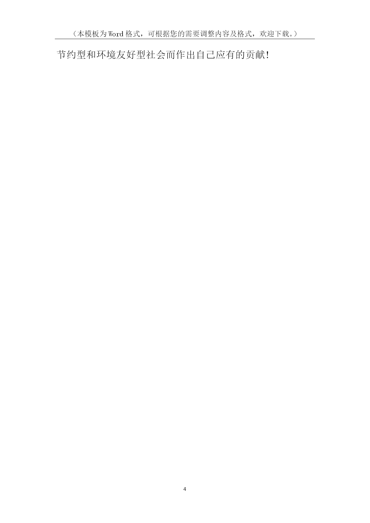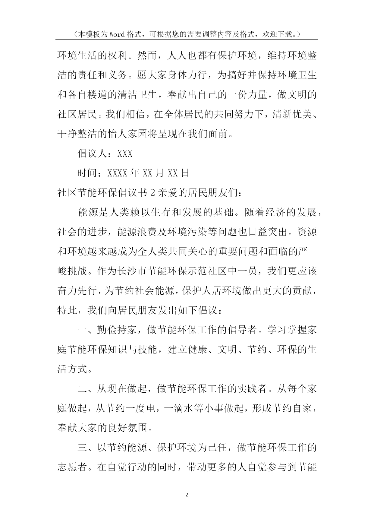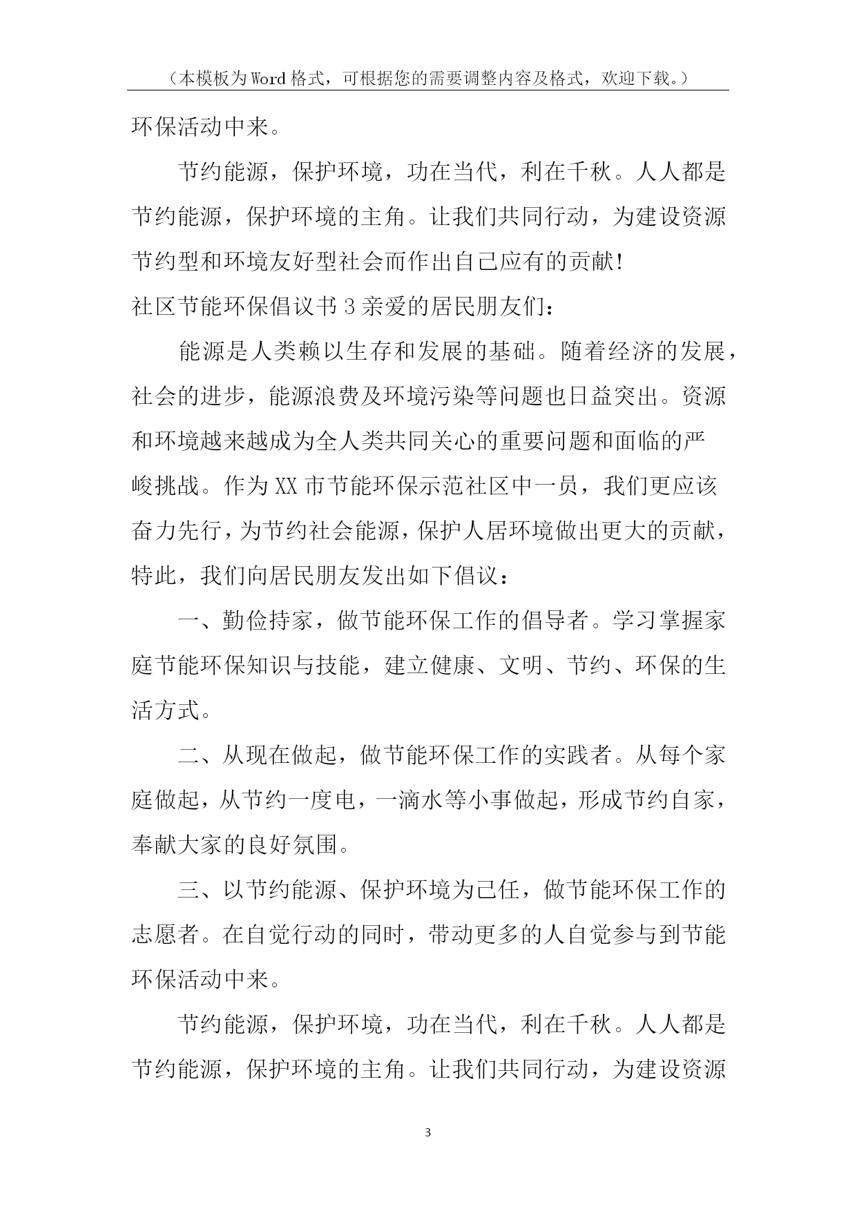 (本模板为Word格式,可根据您的需要调整内容及格式,欢迎下载。)PAGE\*MERGEFORMAT4社区节能环保倡议书社区节能环保倡议书1各位居民:社区是我们居住、生活的场所,是我们共同的家园,创建整洁、有序、优美的社区环境是我们共同的心愿,社区环境直接关系着居民的起居生活,直接体现着社区自治的能力和社区文明程度。在此向全体居民发出如下倡议:一、爱护环境卫生,人人有责。二、自觉维护社区卫生的整洁,不乱倒垃圾,污物、不高空抛物。三、培养良好的卫生行为,不随地吐痰、便溺、乱扔果皮纸屑、烟头等废弃物。四、不擅自在楼道内堆放杂物。五、养宠物的居民要及时清理宠物粪便,栓好犬链。六、爱护社区内的一草一木,不在绿化带内种菜等,不摘取枝叶花木或在公共绿地内抛洒废物。不乱摇乱晃树木,不在树木和健身器材上挂衣服、被子等。七、社区车辆停靠整齐,维护社区良好秩序。社区广大居民们!相信我们的'倡议一定会得到大家的支持和响应。人人都喜欢美好的环境,人人都有享受整洁清新环境生活的权利。然而,人人也都有保护环境,维持环境整洁的责任和义务。愿大家身体力行,为搞好并保持环境卫生和各自楼道的清洁卫生,奉献出自己的一份力量,做文明的社区居民。我们相信,在全体居民的共同努力下,清新优美、干净整洁的怡人家园将呈现在我们面前。倡议人:XXX时间:XXXX年XX月XX日社区节能环保倡议书2亲爱的居民朋友们:能源是人类赖以生存和发展的基础。随着经济的发展,社会的进步,能源浪费及环境污染等问题也日益突出。资源和环境越来越成为全人类共同关心的重要问题和面临的严峻挑战。作为长沙市节能环保示范社区中一员,我们更应该奋力先行,为节约社会能源,保护人居环境做出更大的贡献,特此,我们向居民朋友发出如下倡议:一、勤俭持家,做节能环保工作的倡导者。学习掌握家庭节能环保知识与技能,建立健康、文明、节约、环保的生活方式。二、从现在做起,做节能环保工作的实践者。从每个家庭做起,从节约一度电,一滴水等小事做起,形成节约自家,奉献大家的良好氛围。三、以节约能源、保护环境为己任,做节能环保工作的志愿者。在自觉行动的同时,带动更多的人自觉参与到节能环保活动中来。节约能源,保护环境,功在当代,利在千秋。人人都是节约能源,保护环境的主角。让我们共同行动,为建设资源节约型和环境友好型社会而作出自己应有的贡献!社区节能环保倡议书3亲爱的居民朋友们:能源是人类赖以生存和发展的基础。随着经济的发展,社会的进步,能源浪费及环境污染等问题也日益突出。资源和环境越来越成为全人类共同关心的重要问题和面临的严峻挑战。作为XX市节能环保示范社区中一员,我们更应该奋力先行,为节约社会能源,保护人居环境做出更大的贡献,特此,我们向居民朋友发出如下倡议:一、勤俭持家,做节能环保工作的倡导者。学习掌握家庭节能环保知识与技能,建立健康、文明、节约、环保的生活方式。二、从现在做起,做节能环保工作的实践者。从每个家庭做起,从节约一度电,一滴水等小事做起,形成节约自家,奉献大家的良好氛围。三、以节约能源、保护环境为己任,做节能环保工作的志愿者。在自觉行动的同时,带动更多的人自觉参与到节能环保活动中来。节约能源,保护环境,功在当代,利在千秋。人人都是节约能源,保护环境的主角。让我们共同行动,为建设资源节约型和环境友好型社会而作出自己应有的贡献!