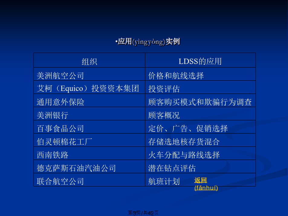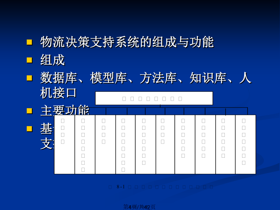 会计学8.1物流决策支持的特点与系统(xìtǒng)组成应用(yìngyòng)实例8.2物流决策的定量(dìngliàng)模型8.3物流预测的定量(dìngliàng)模型8.4物流决策支持系统的空间(kōngjiān)分析8.5支持物流决策的信息(xìnxī)分析技术操作(cāozuò)型数据和分析型数据的区别切块(Dice)旋转(xuánzhuǎn)(Rotate)钻取(Drill)提出的有关(yǒuguān)OLAP的十二条准则8.6物流系统模拟技术(jìshù)8.7物流配送调度支持系统的定量(dìngliàng)算法感谢您的观看(guānkàn)。