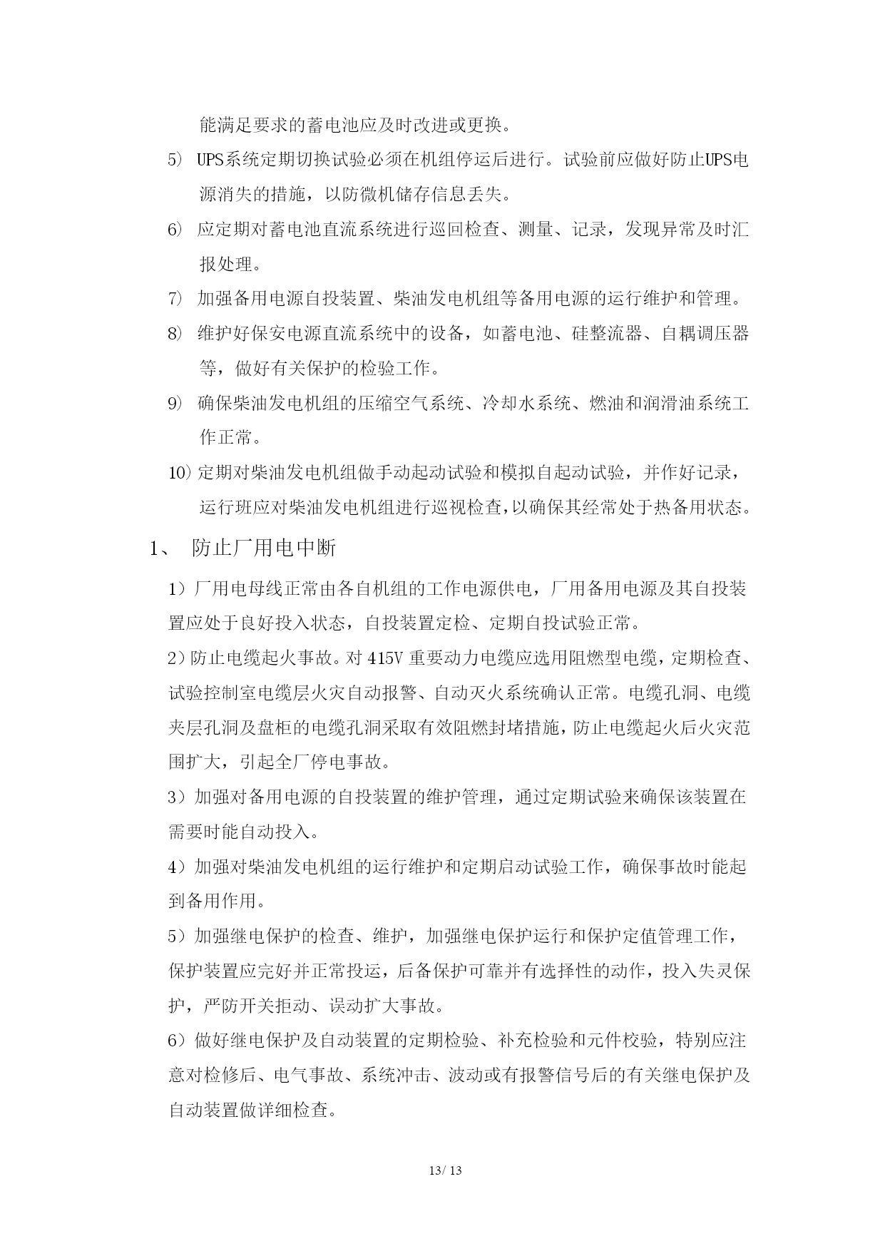 全厂失电事故应急预案编写:审核:批准:XXXX电厂2018年05月目录TOC\o"1-2"\h\z\uHYPERLINK\l"_Toc489981309"第一条总则PAGEREF_Toc489981309\h1HYPERLINK\l"_Toc489981310"第二条编制依据PAGEREF_Toc489981310\h1HYPERLINK\l"_Toc489981311"第三条本预案适用范围PAGEREF_Toc489981311\h1HYPERLINK\l"_Toc489981312"第四条指导思想及编制原则PAGEREF_Toc489981312\h1HYPERLINK\l"_Toc489981313"第五条应急处理指导小组组织机构PAGEREF_Toc489981313\h2HYPERLINK\l"_Toc489981314"第六条概况PAGEREF_Toc489981314\h3HYPERLINK\l"_Toc489981315"第七条事故类型PAGEREF_Toc489981315\h4HYPERLINK\l"_Toc489981316"第八条应急处置基本原则PAGEREF_Toc489981316\h4HYPERLINK\l"_Toc489981317"第九条防范措施PAGEREF_Toc489981317\h5HYPERLINK\l"_Toc489981318"第十条应急处置措施PAGEREF_Toc489981318\h7HYPERLINK\l"_Toc489981319"附件PAGEREF_Toc489981319\h1513/13全厂失电应急预案第一条总则全厂停电事故是灾难性事故,除了造成自身严重经济损失外,还可能破坏电力系统的运行稳定,甚至电网瓦解,而大面积停电又将引起社会不安定。因此,防范全厂停电事故意义重大。为确保机组安全稳定运行,在全厂失电事故发生后,能保证机组顺利停运和避免发生设备损坏事故,特编制本预案。本预案只适用于孟加拉S4项目部。第二条编制依据本预案是按照“安全第一,预防为主,综合治理”的方针,依据《安全生产法》、《防止电力生产重大事故的二十五项重点要求》、《电业生产事故调查规程》等有关规定、要求以及项目部的实际情况而编制。第三条本预案适用范围本预案适用于XXX电厂(#1燃气机组与#2联合循环机组)全厂失电应急预案。本部门各相关专业。第四条指导思想及编制原则保证重点。遵循“保人身、保设备、保机组”的原则,在突发事件的处理过程中,将保证设备安全尽快恢复机组运行放在首位;在部门专工的统一领导下,严格执行值长、调度命令,进行事故处理。第五条应急处理指导小组组织机构指导小组成员构成:组长:项目经理副组长:项目副经理成员:项目部所有成员指导小组成员与部门各岗位职责:1)全厂停电发生后,根据事故报告立即按本预案规定的程序,组织全厂力量赶赴现场进行事故处理,使损失降到最低限,迅速恢复机组稳定运行。同时要根据网络及运行方式的变化及时修改预案,修改后的方案仍需上报批准。2)负责向上级及业主汇报我厂的事故情况和事故处理进展情况。3)组织和提供事故恢复所需要的备品备件。4)组织事故恢复所必需的生产车辆。5)组织实施事故恢复所必须采取的临时性措施。6)完成对外停电事故(发生原因、处理经过、设备损坏和经济损失情况)调查报告的编写和上报工作。7)组织运行和管理人员学习预案,进行专题反事故演习活动。8)根据预案实施过程中存在的问题和危险源的变化,及时对预案进行调整、修订、补充和完善。第六条概况XXXXX电厂为一拖一燃气蒸汽联合循环,其中1台三菱生产的燃机发电机,型号为:M701F4,额定容量:435MVA,额定电压:18KV,额定频率:50HZ,额定转速:3000rpm,功率因数:0.8,冷却方式:氢冷。1台汽轮发电机组为东方电气生产,型号:QF-150-2-15.75D,额定容量:187.5MVA,额定电压:15.75kV,额定频率:50HZ,额定转速:3000rpm,功率因数:0.8,冷却方式:空冷。中压厂用电系统:每台发电机(燃机及汽机)各设1台双绕组无励磁调压高厂变,作为6.9kV厂用母线的工作电源。每台机组各设1段6.9kV厂用工作母线,采用单母线接线,每台机组6.9kV厂用工作母线电源分别引自该机组的高压厂变低压侧绕组分支。正常运行状态下,由本台机组的高压厂变低压侧向本机组的单元厂用负荷供电。两台机组6.9kV工作段