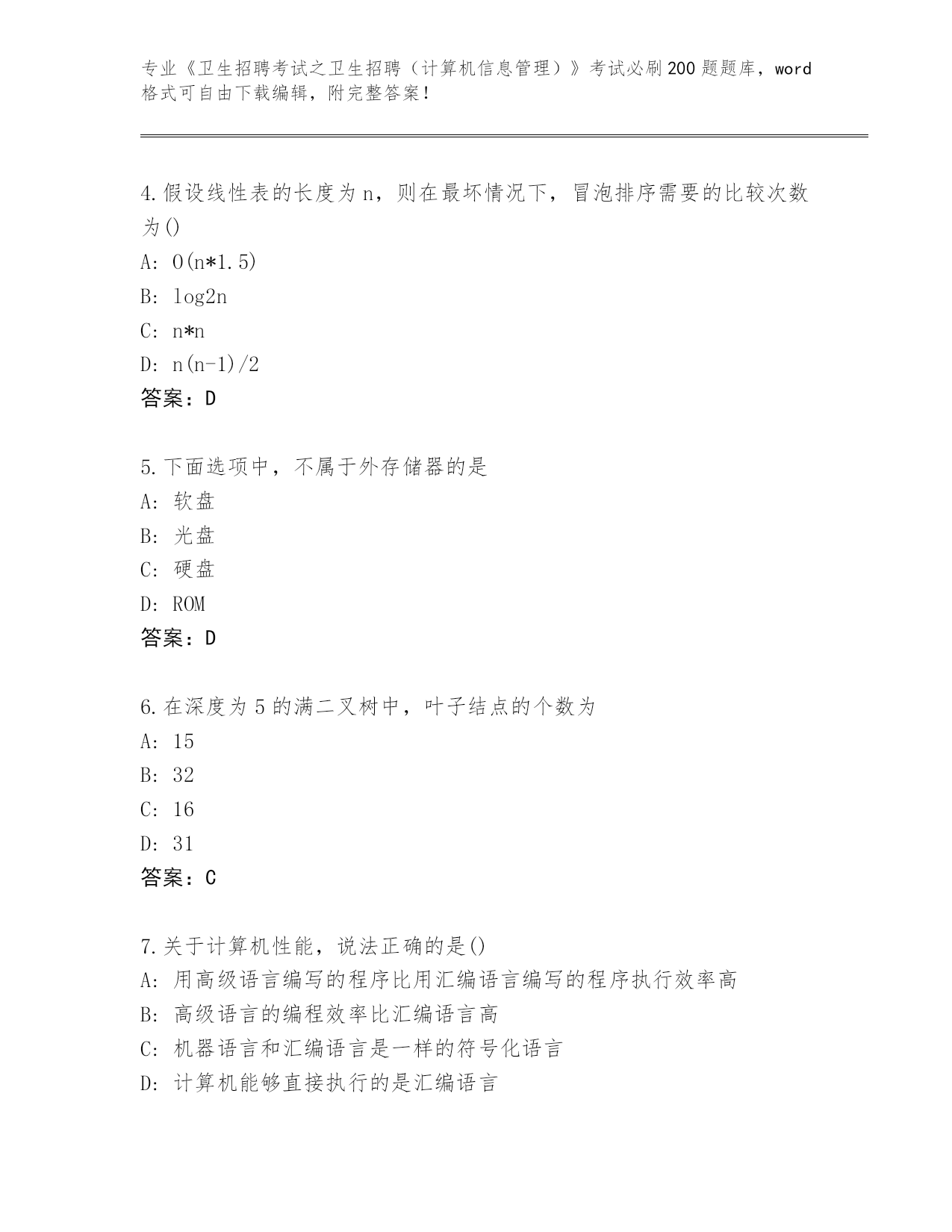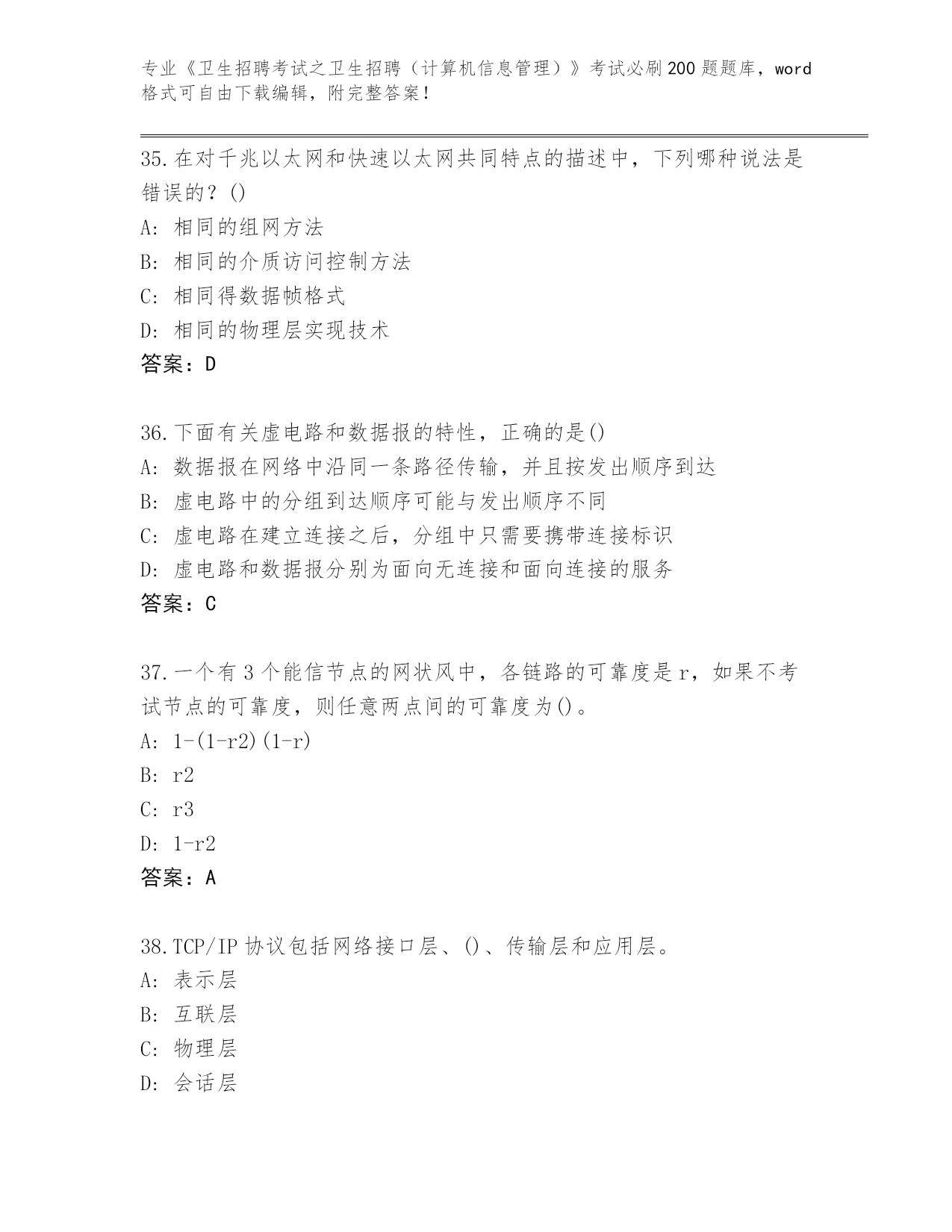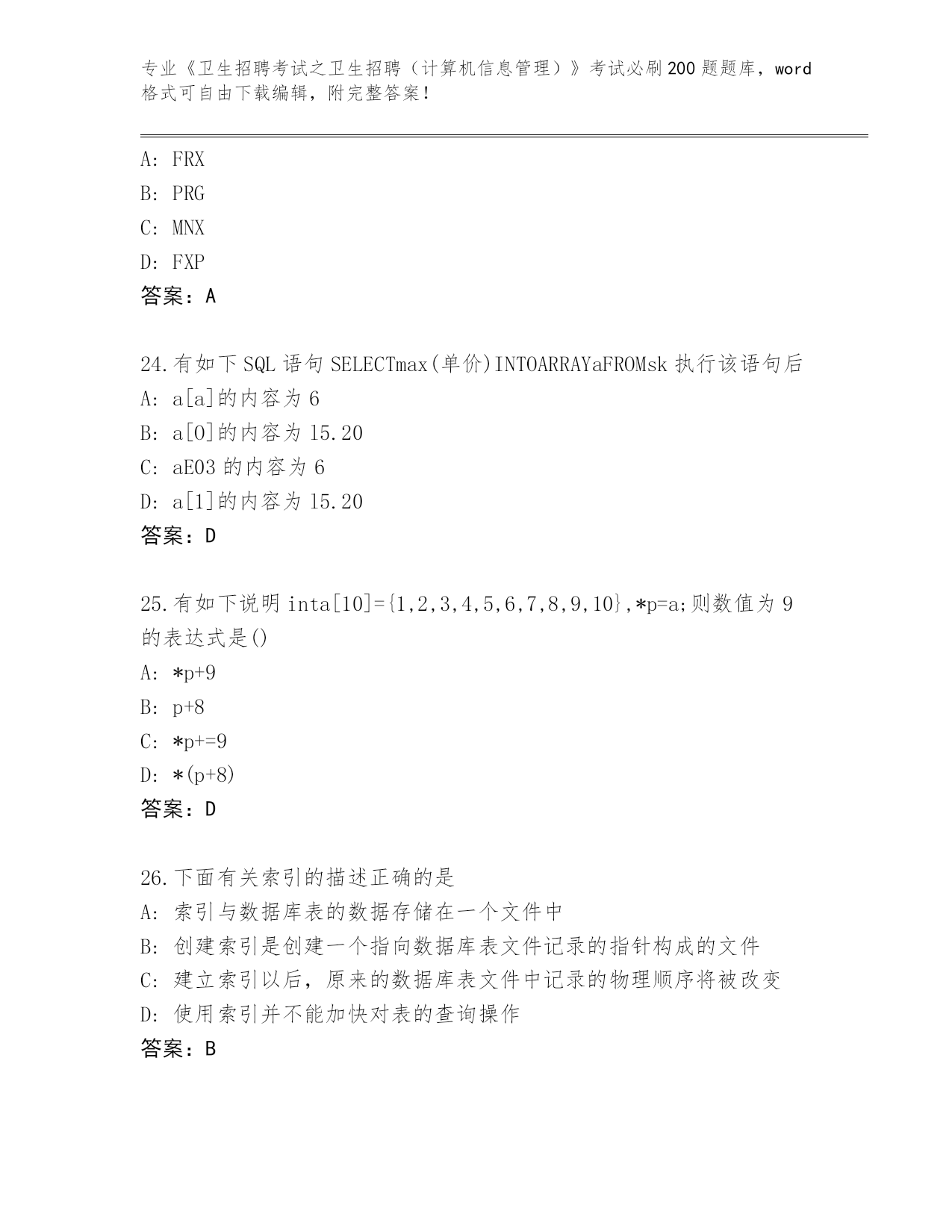 2024年湖北省嘉鱼县《卫生招聘考试之卫生招聘(计算机信息管理)》资格考试必刷200题大全(综合卷)