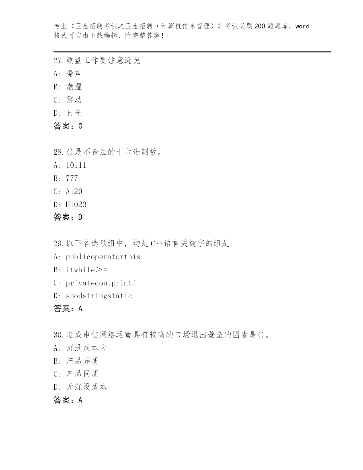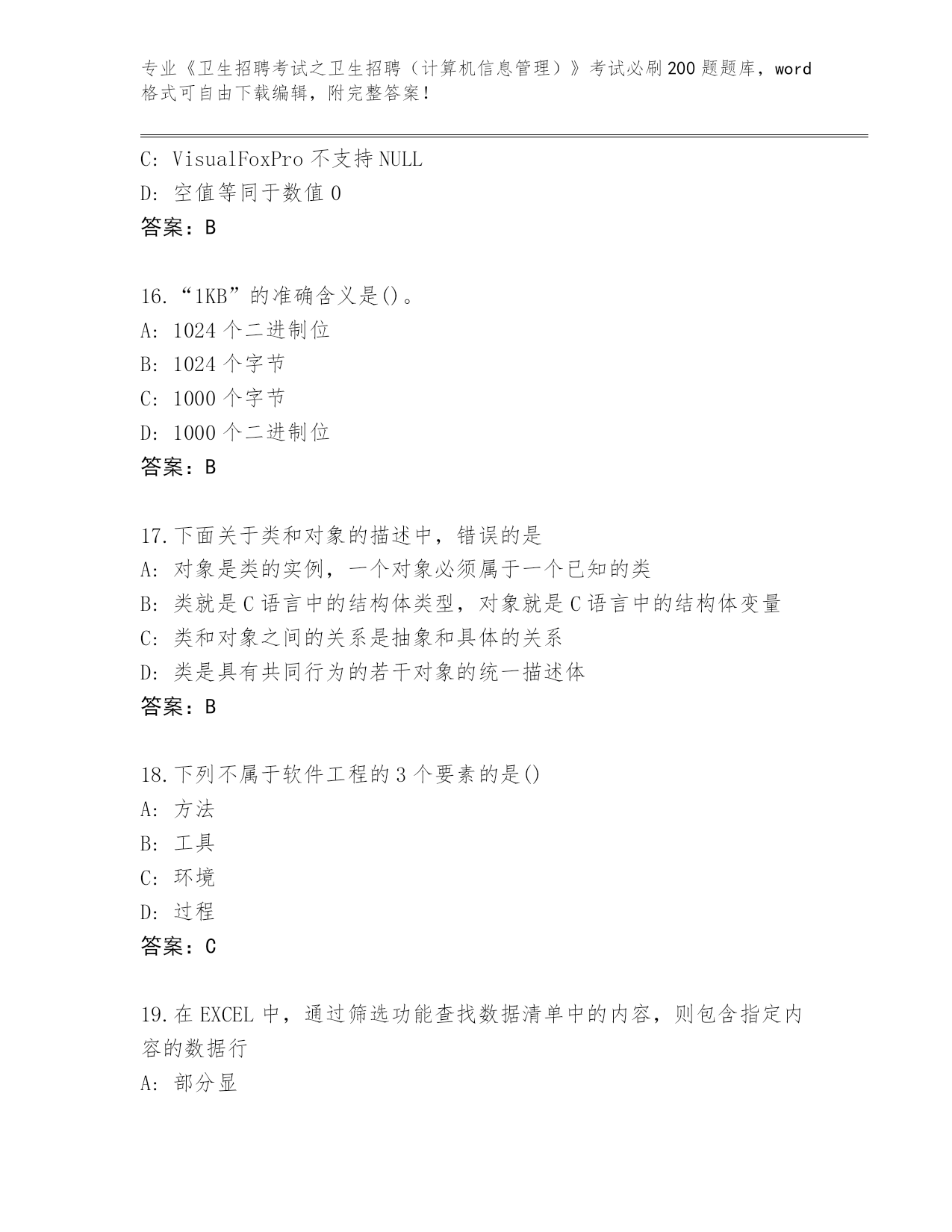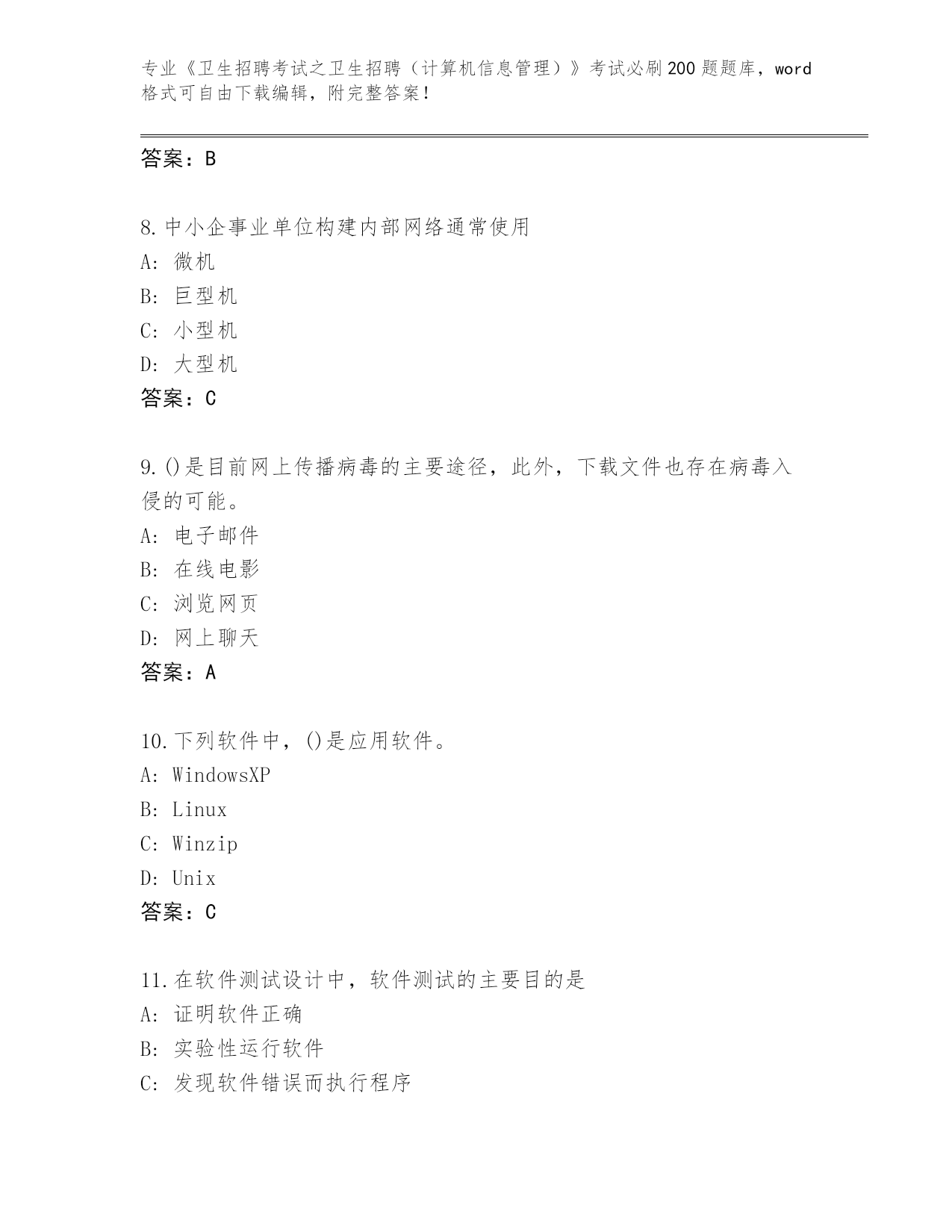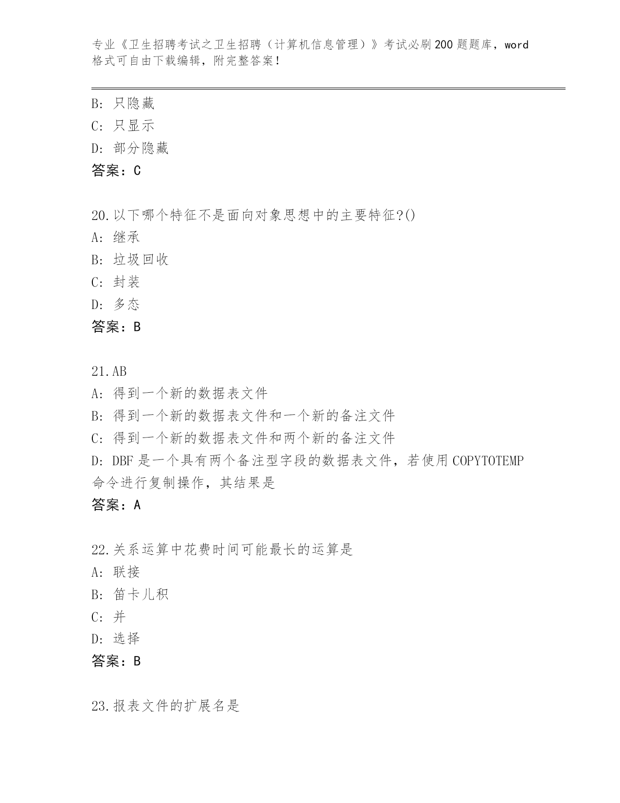 湖北省整理《卫生招聘考试之卫生招聘(计算机信息管理)》考试必刷200题真题题库加答案