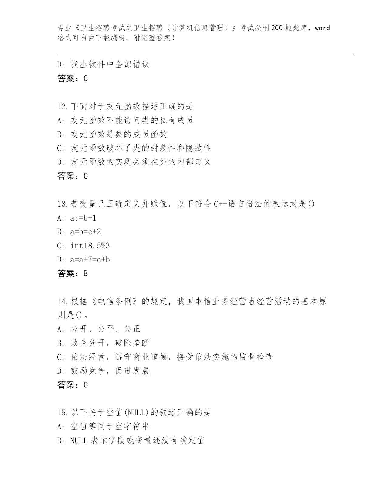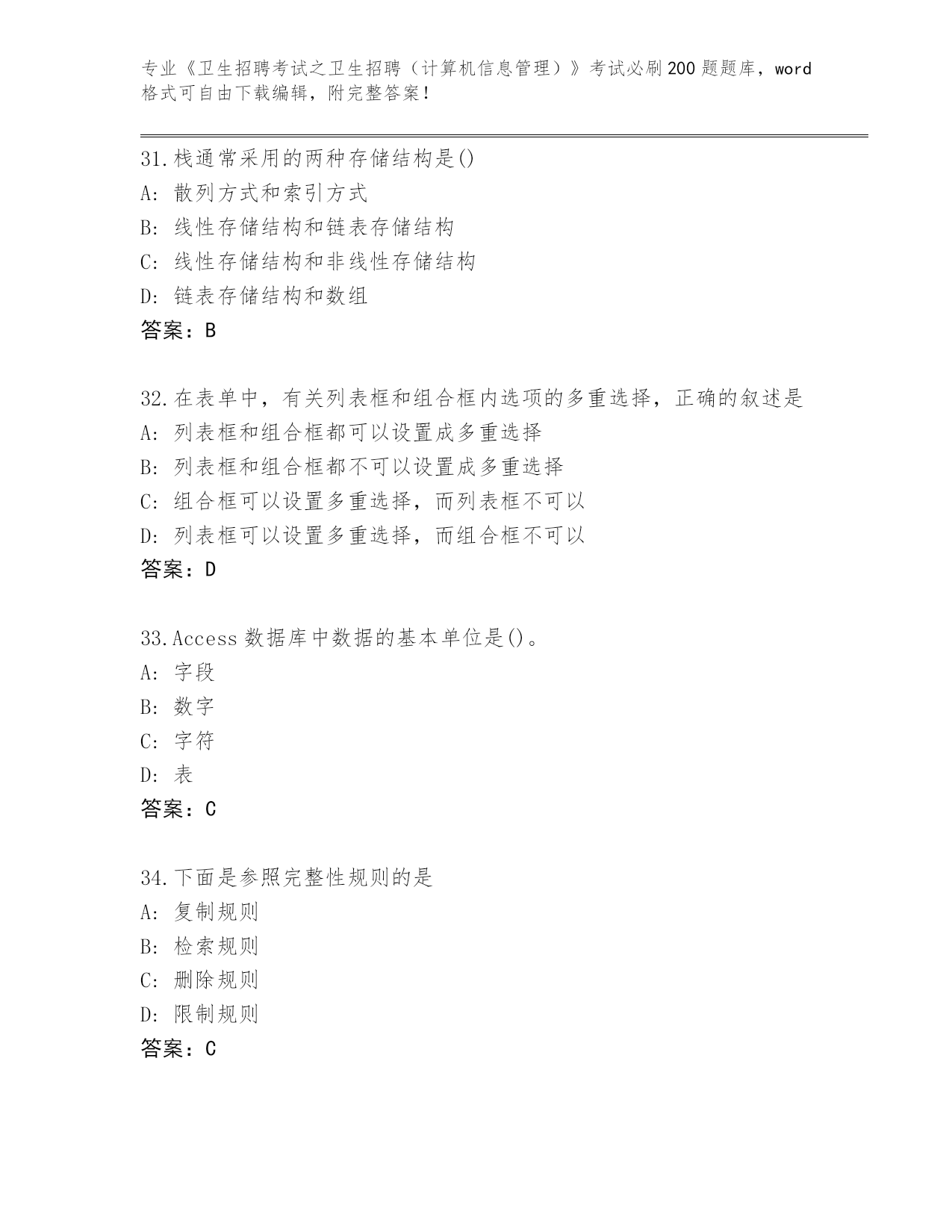 完整版湖北省嘉鱼县《卫生招聘考试之卫生招聘(计算机信息管理)》资格考试必刷200题大全及答案(全优)