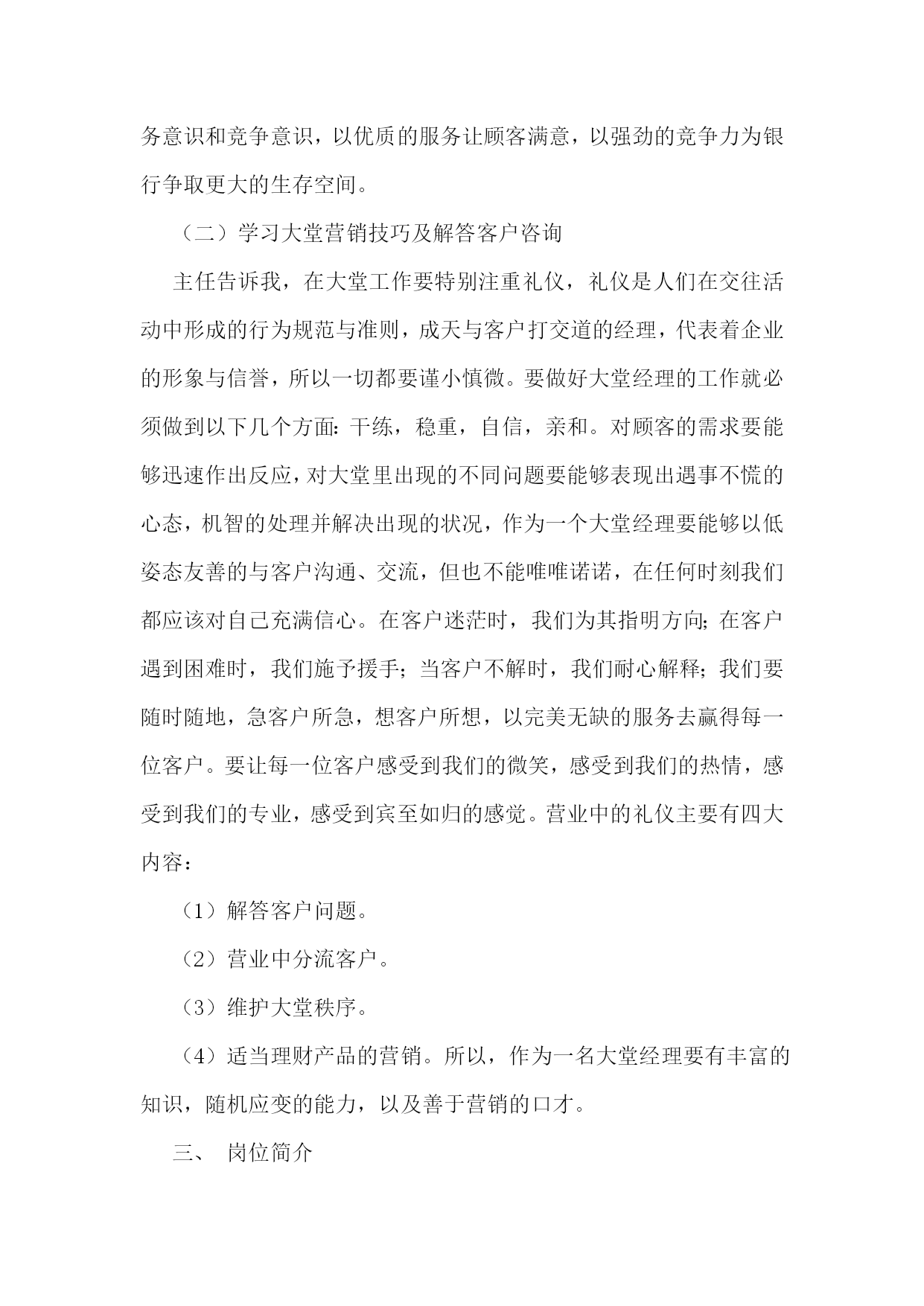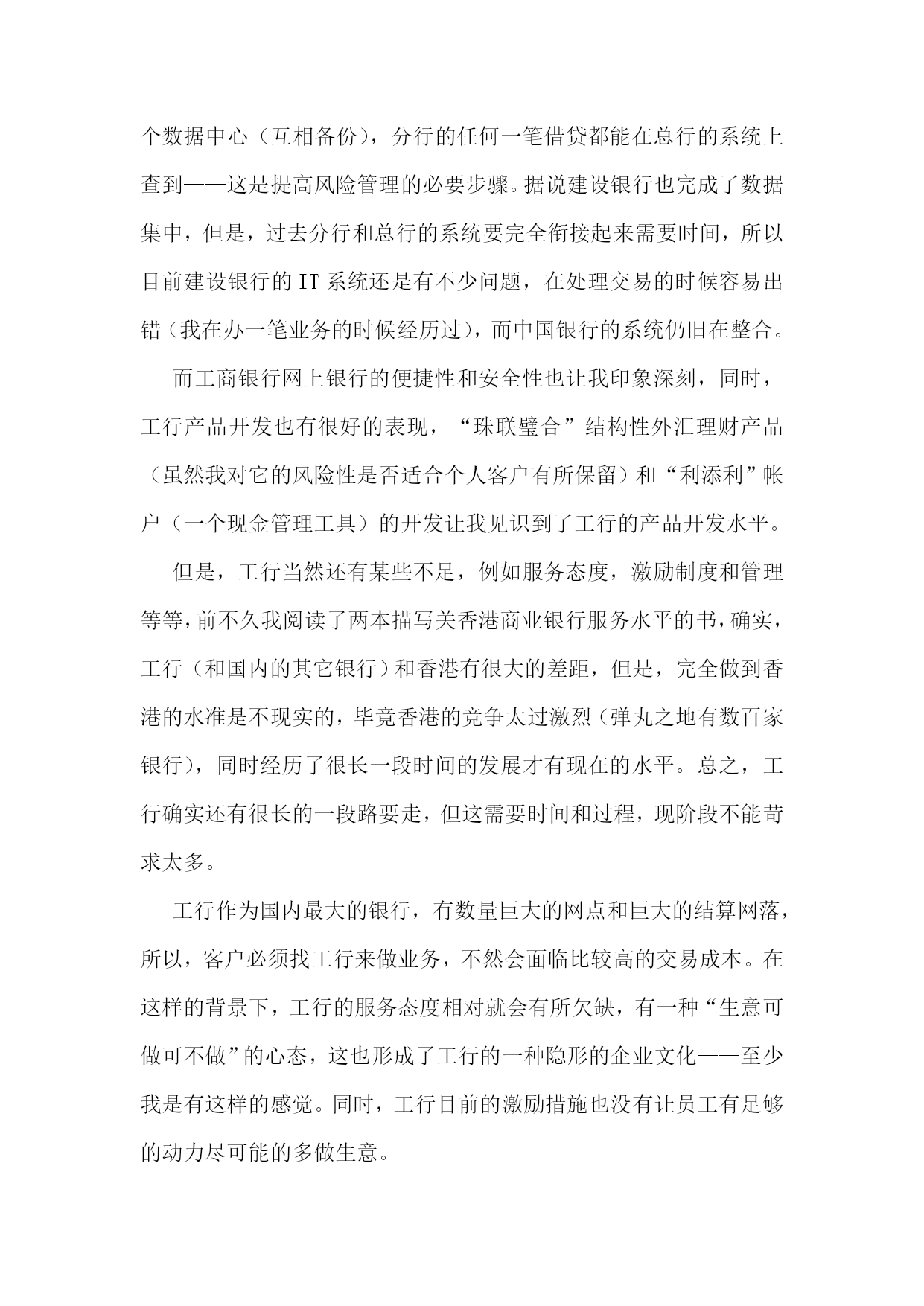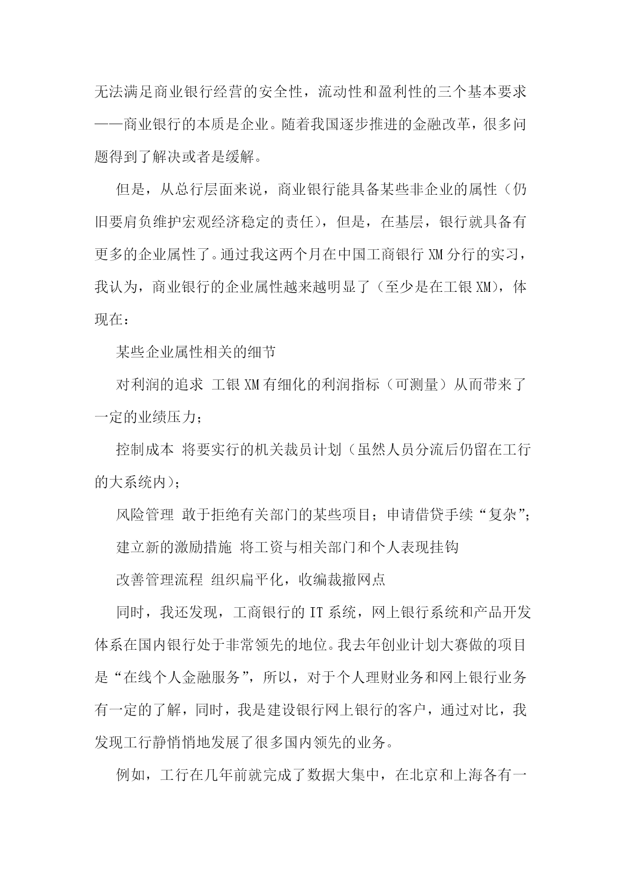 中国工商银行实习报告【精彩3篇】工商银行实习报告精选篇一一,实习单位简介中国工商银行成立于1984年。作为中国资产规模最大的商业银行,经过20几年的改革发展,中国工商银行已经步入质量效益和规模协调发展的轨道。XX年末资产总额近53000亿元人民币,占中国境内银行业金融机构资产总和的近五分之一。XX年英国《银行家》杂志按一级资本排序,中国工商银行名列全球1000家大银行的第十六位,连续五次入围美国《财富》全球500强,并被美国《远东经济评论》评为中国高质量产品(服务)十强。XX年由工商银行自主投产成功的全功能银行(nova)系统,为业务和管理的进步提供了强健的动力。二,实习过程此次实习的目的在于:掌握银行业务的基本技能,熟悉银行日常业务的操作流程以及工作制度等,使教学更有针对性,对学生就业岗位需求把握更灵敏。实习过程主要包括以下几个阶段:(一)了解实习单位基本情况和机构设置,人员配备等。(二)了解银行的基本业务流程,主要包括以下方面:银行业务基本技能训练,如点钞,珠算,五笔字型输入,捆扎等;银行的储蓄业务,如活期存款,整存整取,定活两便等;银行的对公业务,如受理现金支票,签发银行汇票等;银行的信用卡业务,如贷记卡的开户,销户,现金存取等。(三)了解银行会计核算方法,科目设置与账户设置,记账方法的确定等,区别与比较银行会计科目账户与企业的异同。(四)总结实习经过。三,实习内容在分行领导的指导,帮助下,我们首先就银行工作中所必需的基本技能,包括点钞,捆钞,珠算,五笔字型输入法,数字小键盘使用等进行了详细了解和现场观摩。特别要说的是珠算,很多学生包括我自己都无法理解在这个信息技术高速发展的时代,为什么还要苦练珠算,为什么不用计算器原来银行柜员经常需要查点现金,看是否能账实相符,而人民币有多种卷别,在点钞时需要累加,这时使用算盘就要比计算器方便,因为计算器显示的结果超过一定时间便会消失。接下来,我们又在个人理财中心观摩了银行柜面业务的全过程。工行柜面业务实行的是柜员负责制,就是每个柜员都可以办理所有的储蓄业务,即开户,存取现金,挂失,解挂,大小钞兑换,受理中间业务等。对于每一笔业务,都必须进入nova系统办理。此外营业终了时需要进行的nova轧账和中间业务轧账,柜员必须学习如何打印流水,平账报告表,重要空白凭证销号表,重要空白凭证明细核对表,审查传票号是否连续,金额是否准确,凭证要素是否齐全等。在银行,柜员间每天交接工作时的对账是必不可少的,对账时除了要核对现金账实是否相符外,还要查看重要空白凭证是否缺失,传票是否连续等等。而柜员间对账也是很有程序的,一般先清点现金,然后再是清点重要空白凭证如存折,银行卡,存单等。四,实习收获与体会财经系中许多年轻的专业教师虽然已具备扎实的理论知识和基础技能素养,但与企业缺少紧密联系,以致当学生问到相关行业的细节问题时,答不上来,只能照本宣科。而学校安排教师到企业实践,就是为了了解企业生产组织方式,工艺流程,产业发展趋势等基本情况等,并结合企业的生产实际和用人标准,不断完善教学方案,改进教学方法,积极开发校本教材,切实加强职业学校实践教学环节,提高技能型人才培养质量,为了改变教学与实际脱节状况。这次下企业实践,除了使我对工商银行的基本业务有了一定了解外,银行职员的工作态度和职业礼仪也给我留下了深刻的印象。比如:对待客户的态度,首先是要用敬语,如您好,请签字,请慢走;其次与客户传递资料时必须起立并且双手接送,最后对于客户的一些问题和咨询必须要耐心的解答。但以礼待人固然重要,绝不能抛弃基本的职业道德和素养。比如,有的业务办理需要身份证件,虽然客户可能是自己认识的人,职员也必须要求对方出示证件,而当对方有所微词时,职员则须耐心的解释为什么必须得这么做。听许多毕业班老师交流时说到:不少毕业生刚到企业时,常会水土不服,上手慢。我想这与老师对企业用人标准不够了解有关。但这次下企业使得老师们都获得了共同信号:企业青睐综合素质高的职教生,即学生除了扎实的专业技能,还需要良好的口头表达,人际沟通,应急反应等能力,如一些单位招聘人才时,还会考一考字写得怎样,电脑水平如何,英语沟通是否顺畅等,这些能力在平时都应让学生有所储备。此次的下企业实践活动使我受益匪浅,对今后的教育教学起到了积极的指导作用。期望以后能有更多类似的学习机会。工行实习报告篇二一、实习地点情况介绍:中国工商银行简介成立于1984年,承接原中国人民银行的商业银行职能。根据本次工商银行上市招股说明书的数据,工行总资产目前约为7万亿人民币,38万员工,18000余个分支机构。是国内最大的银行。传统的商业银行业务(不考虑混业经营)可以简单地分为两部分(以不同的客户群体为划分标准):·批发银行业务;·零售银行业