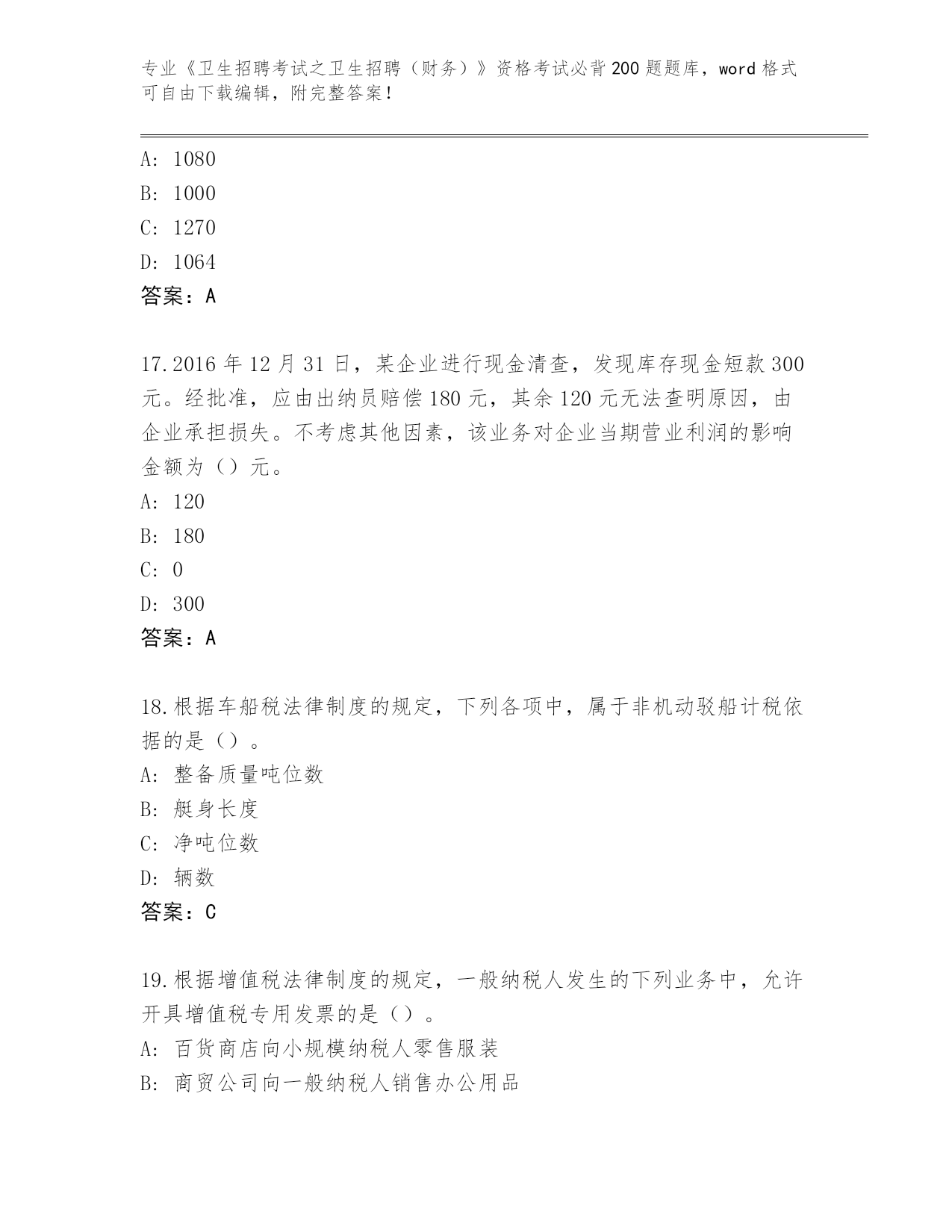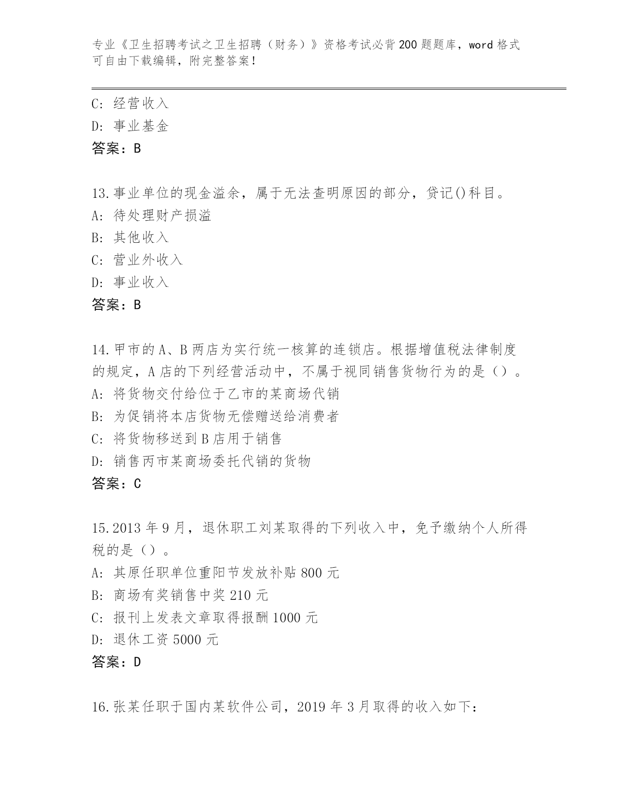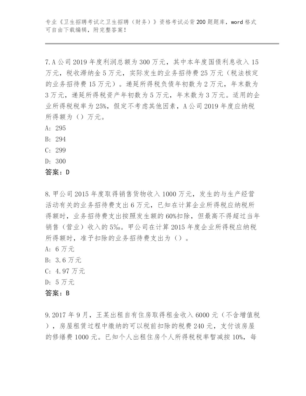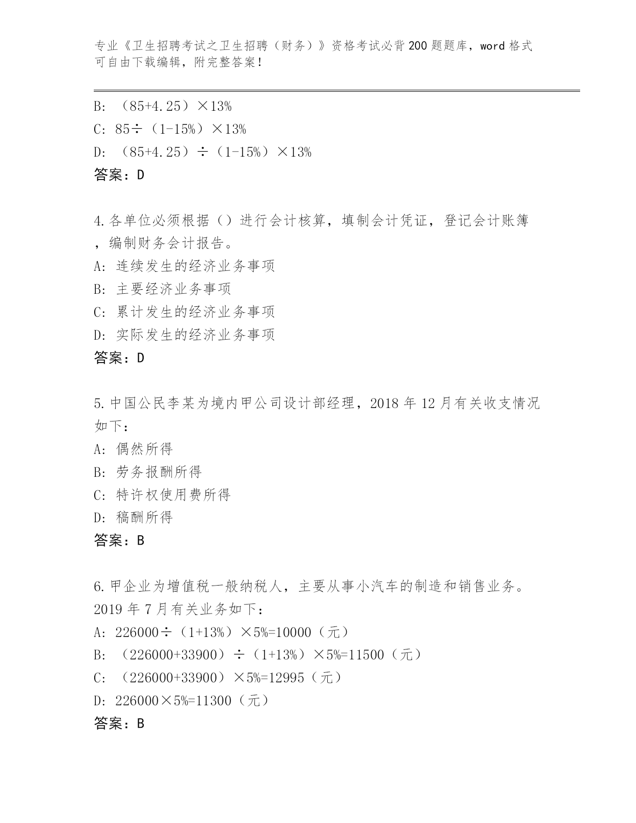 湖南省南县整理《卫生招聘考试之卫生招聘(财务)》资格考试必背200题【全优】