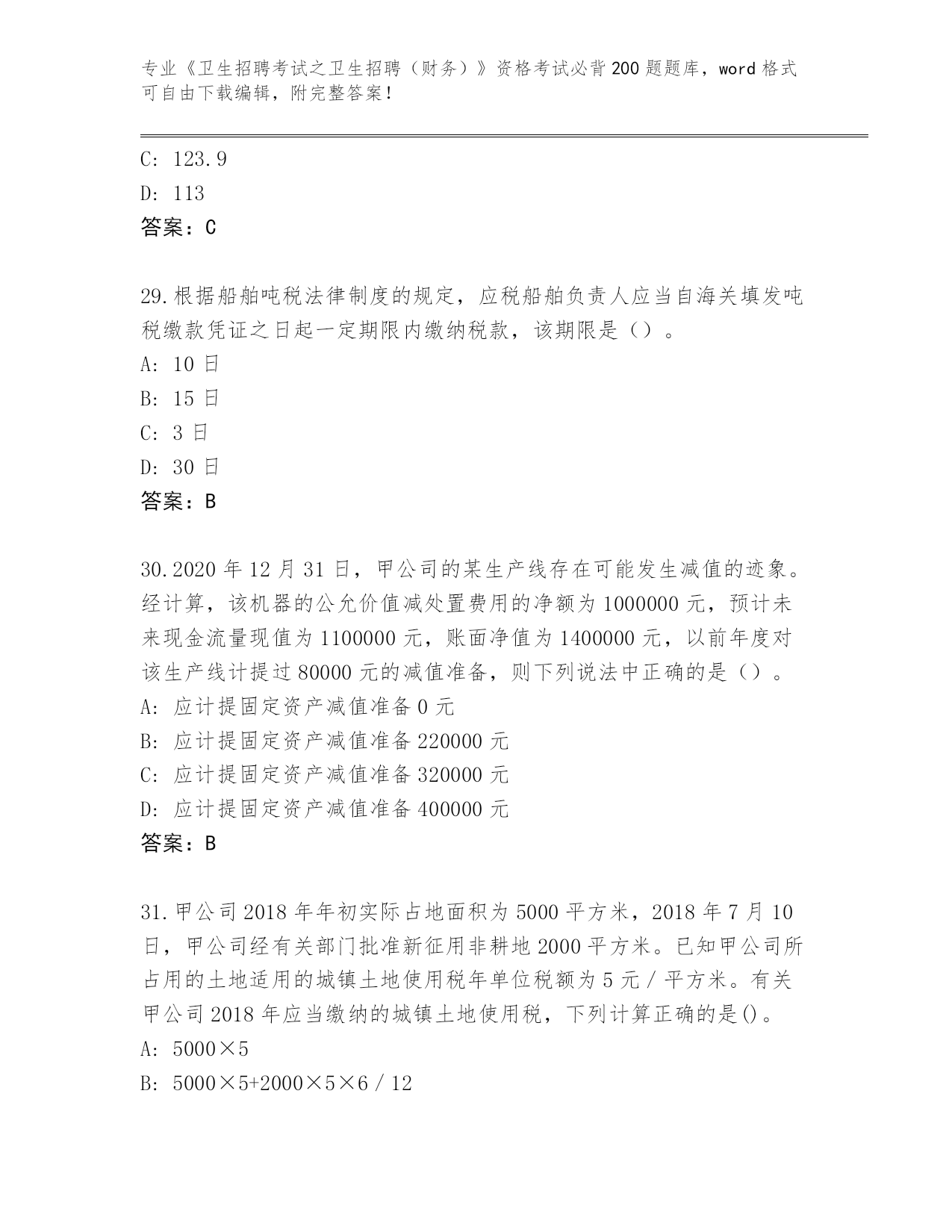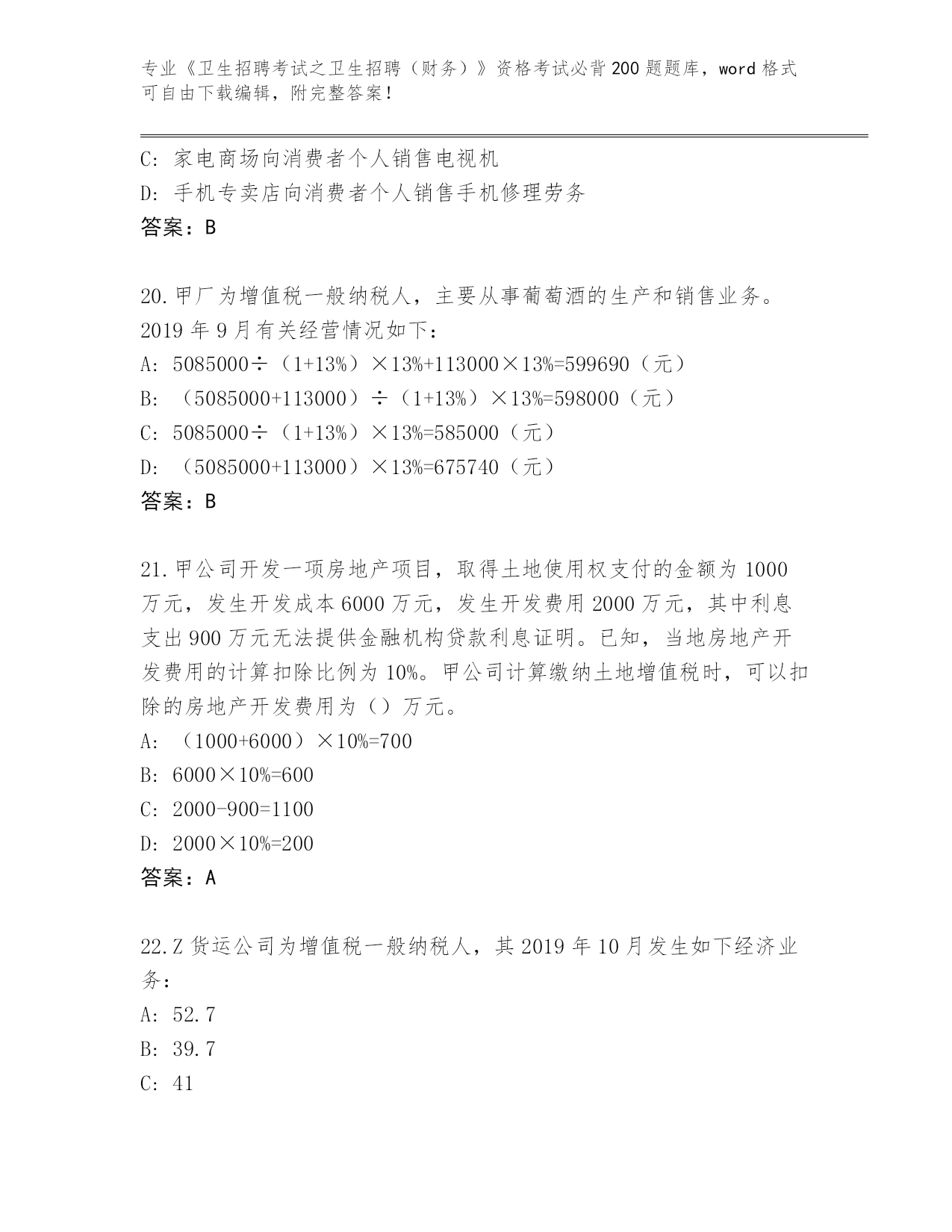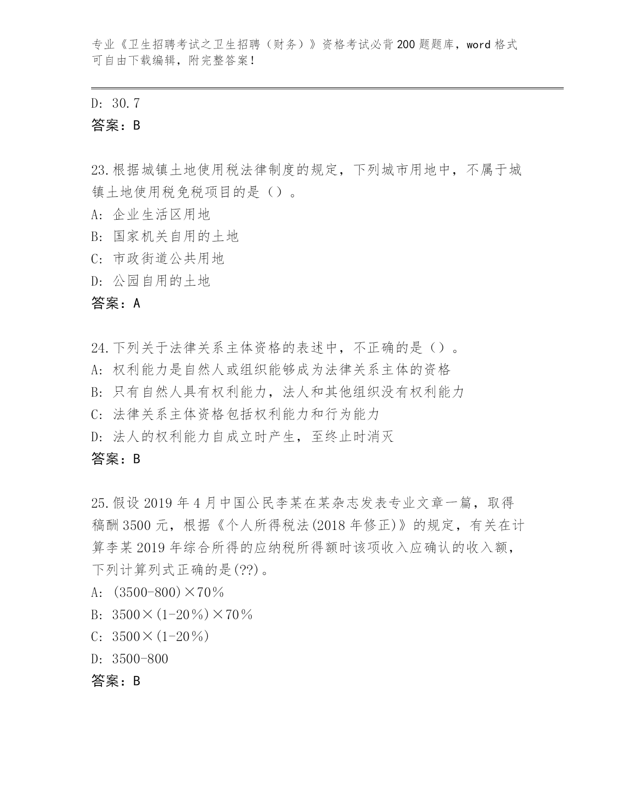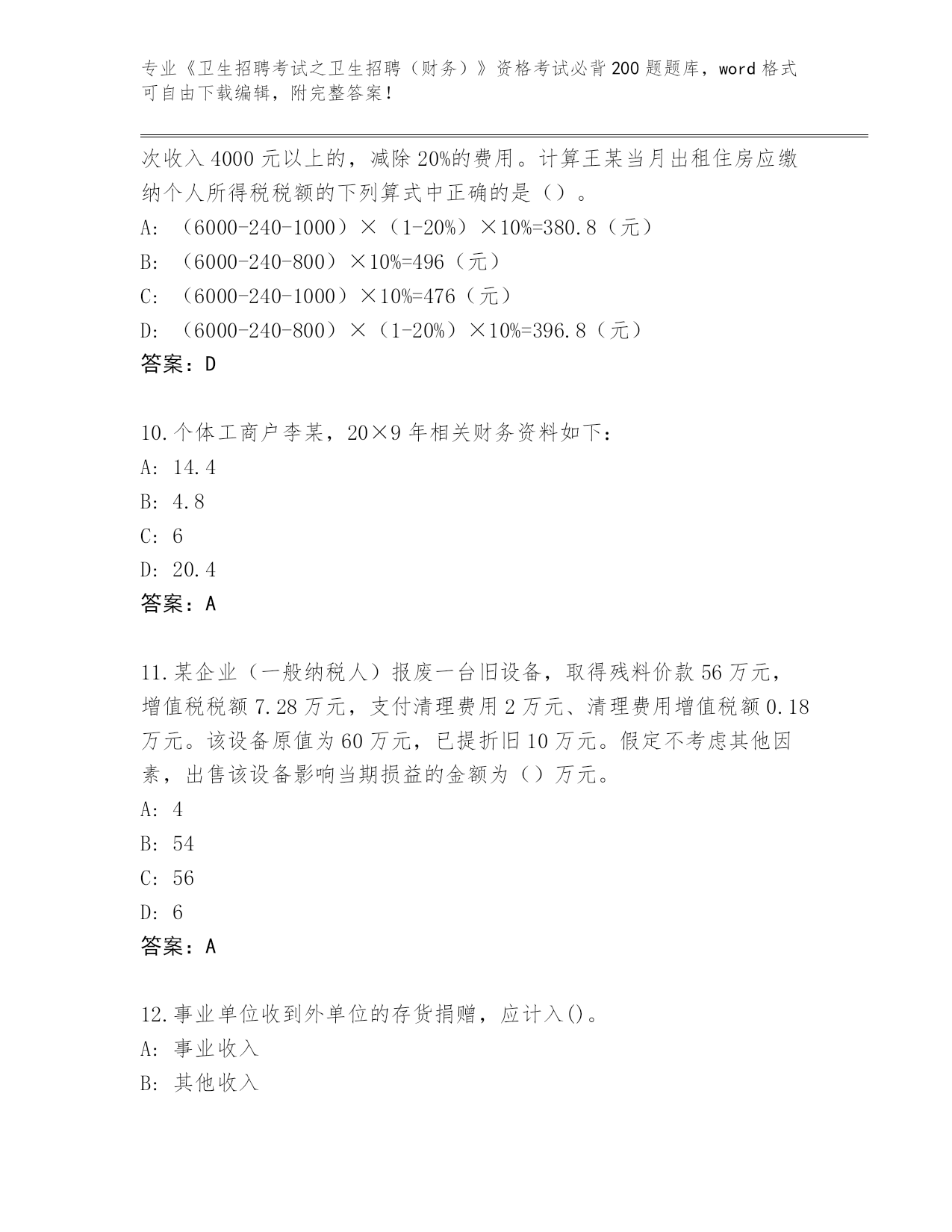湖南省南县整理《卫生招聘考试之卫生招聘(财务)》资格考试必背200题【全优】