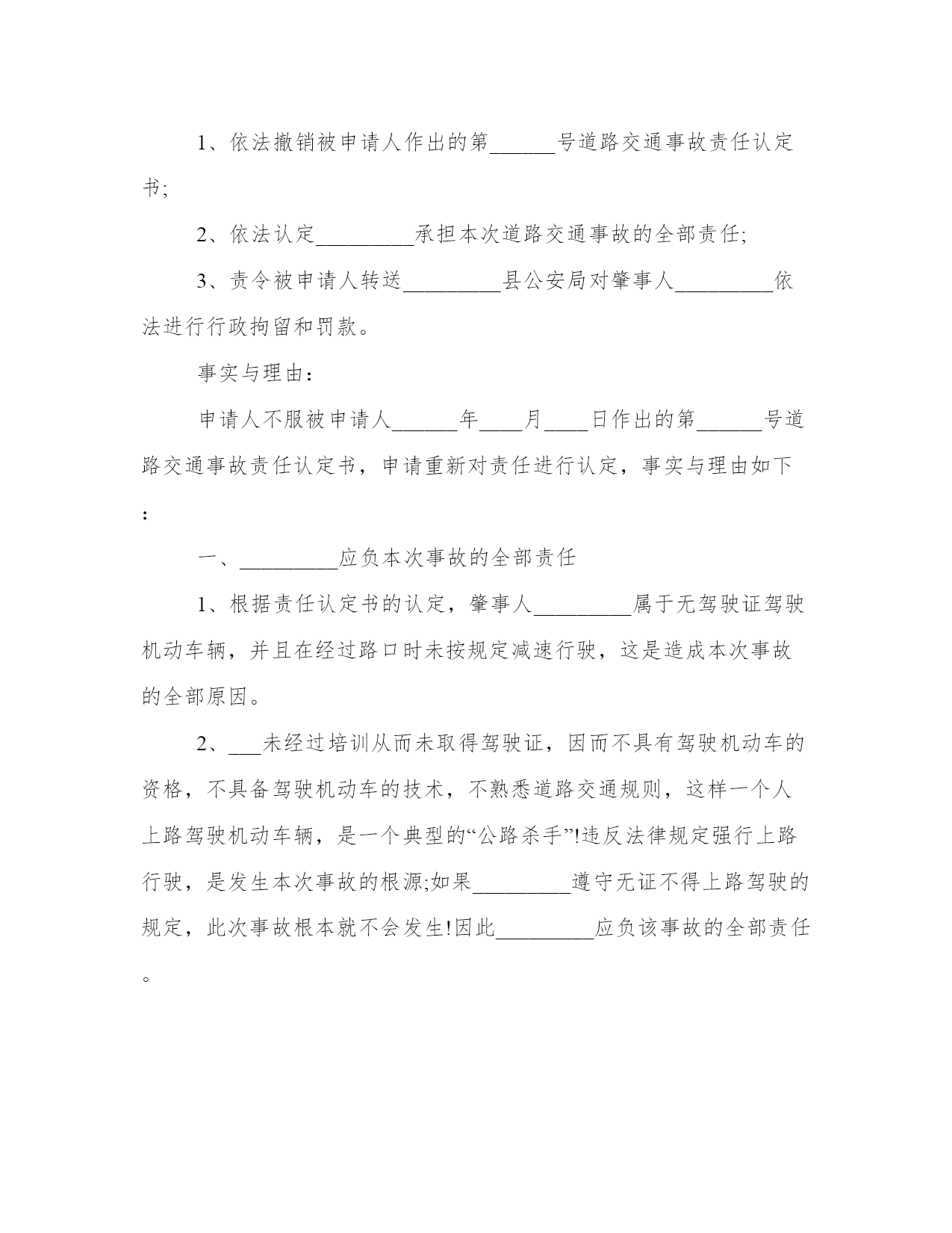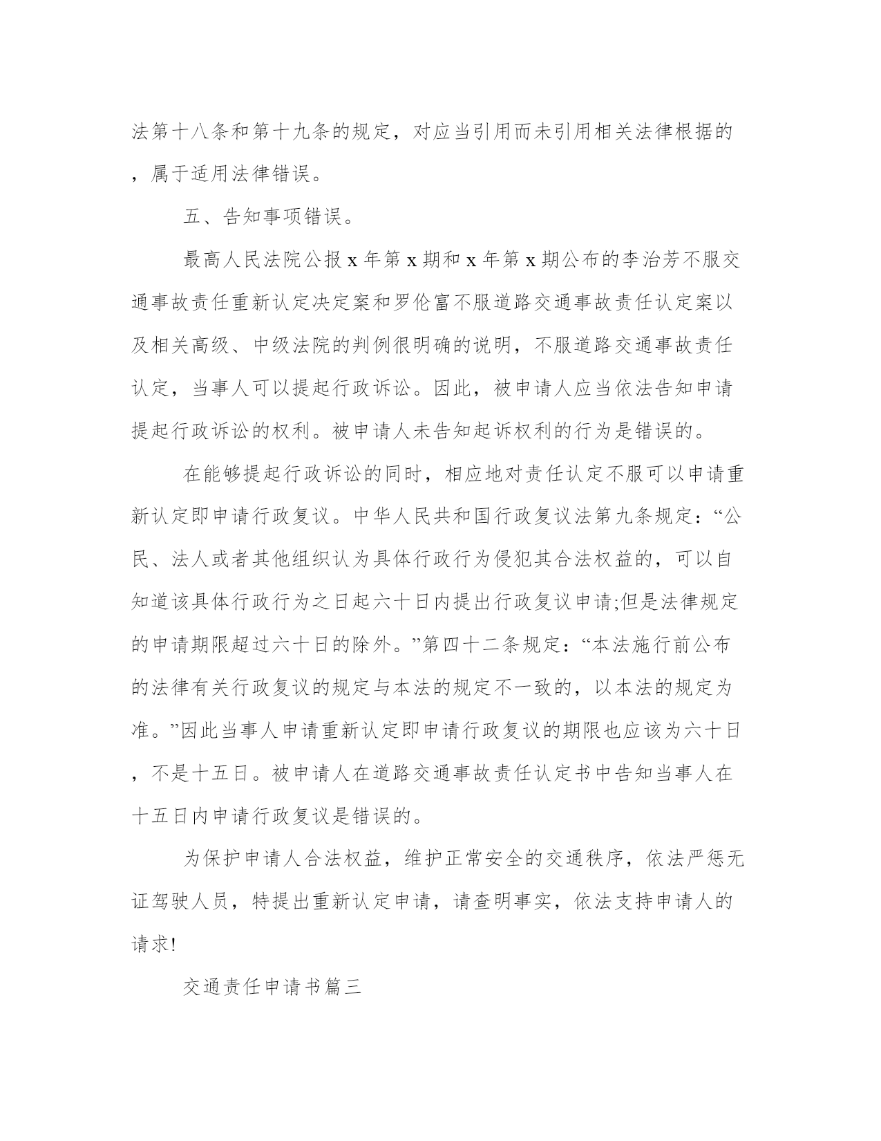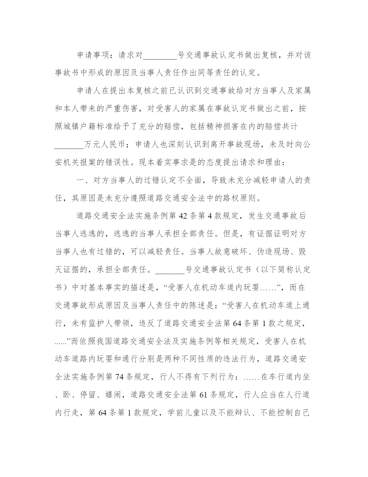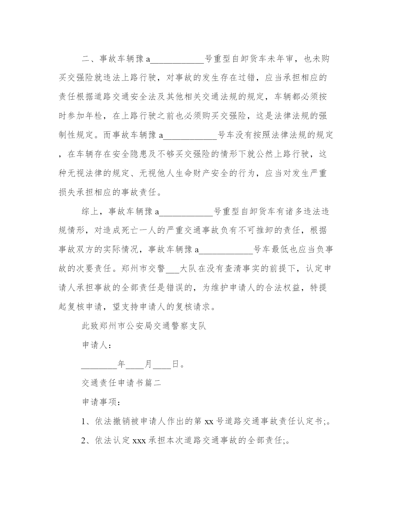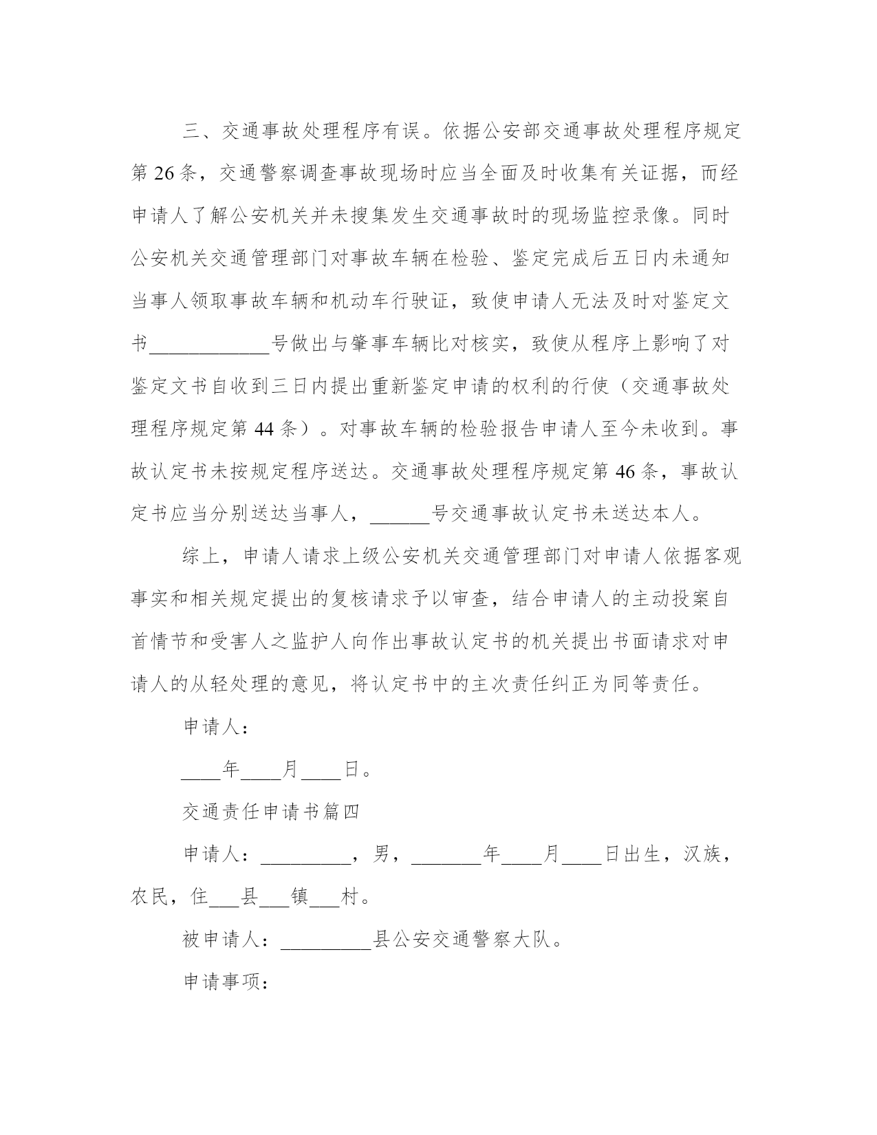 最新交通责任申请书交通事故责任申请书(精选8篇)