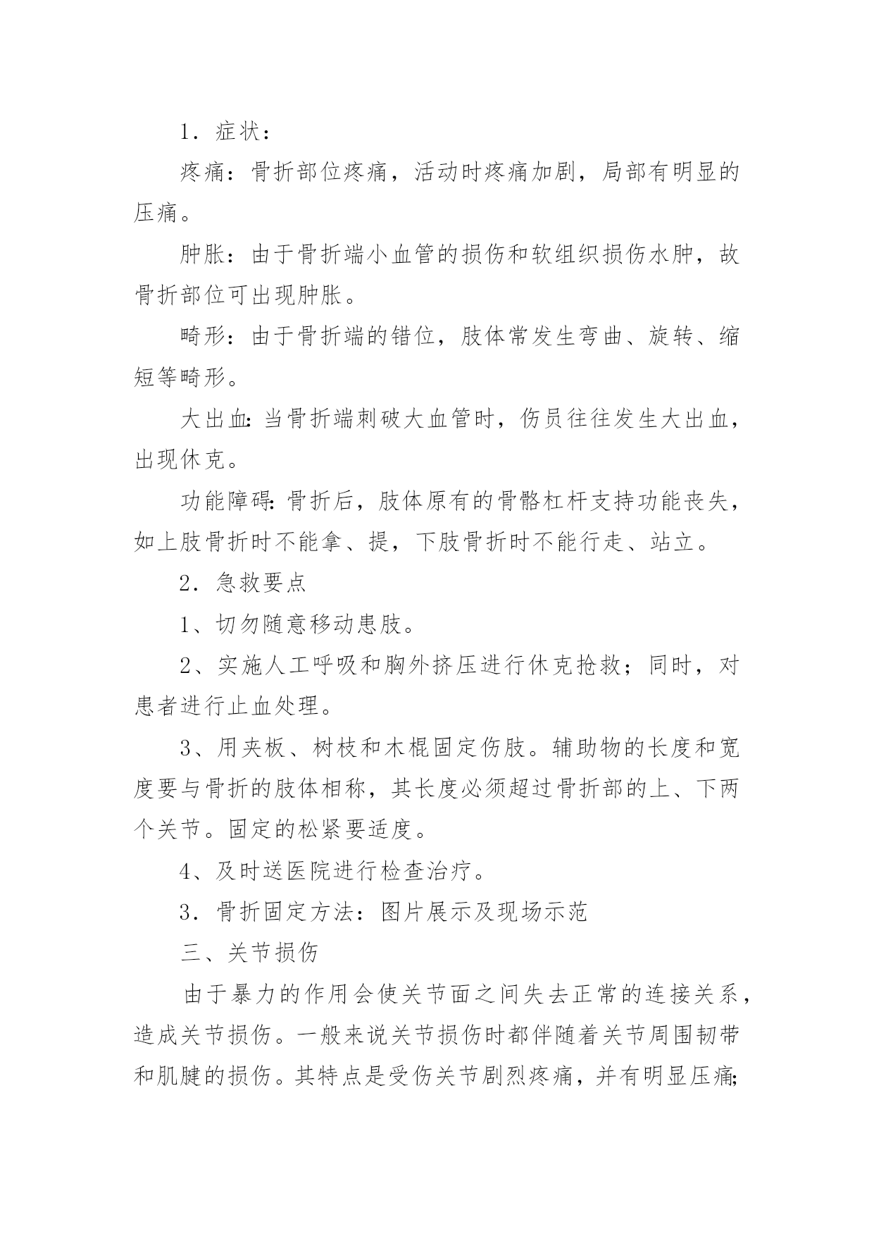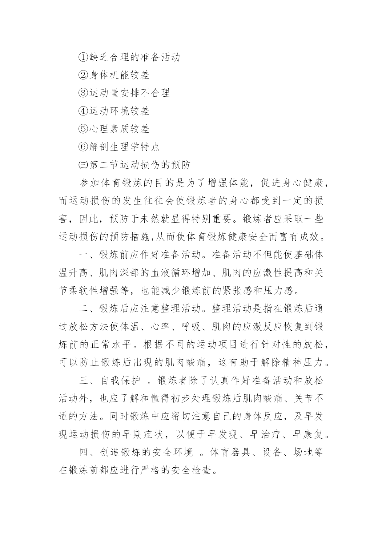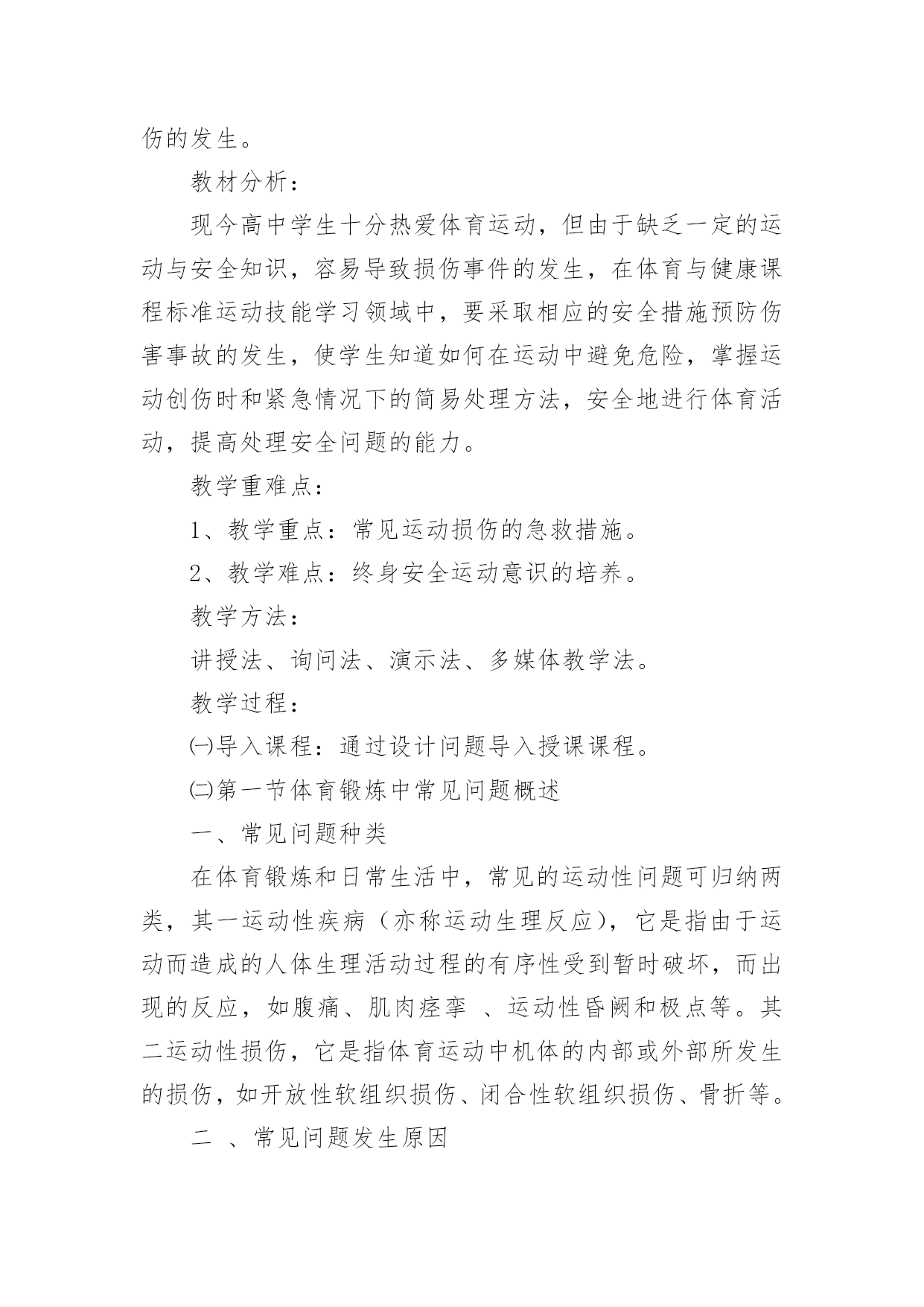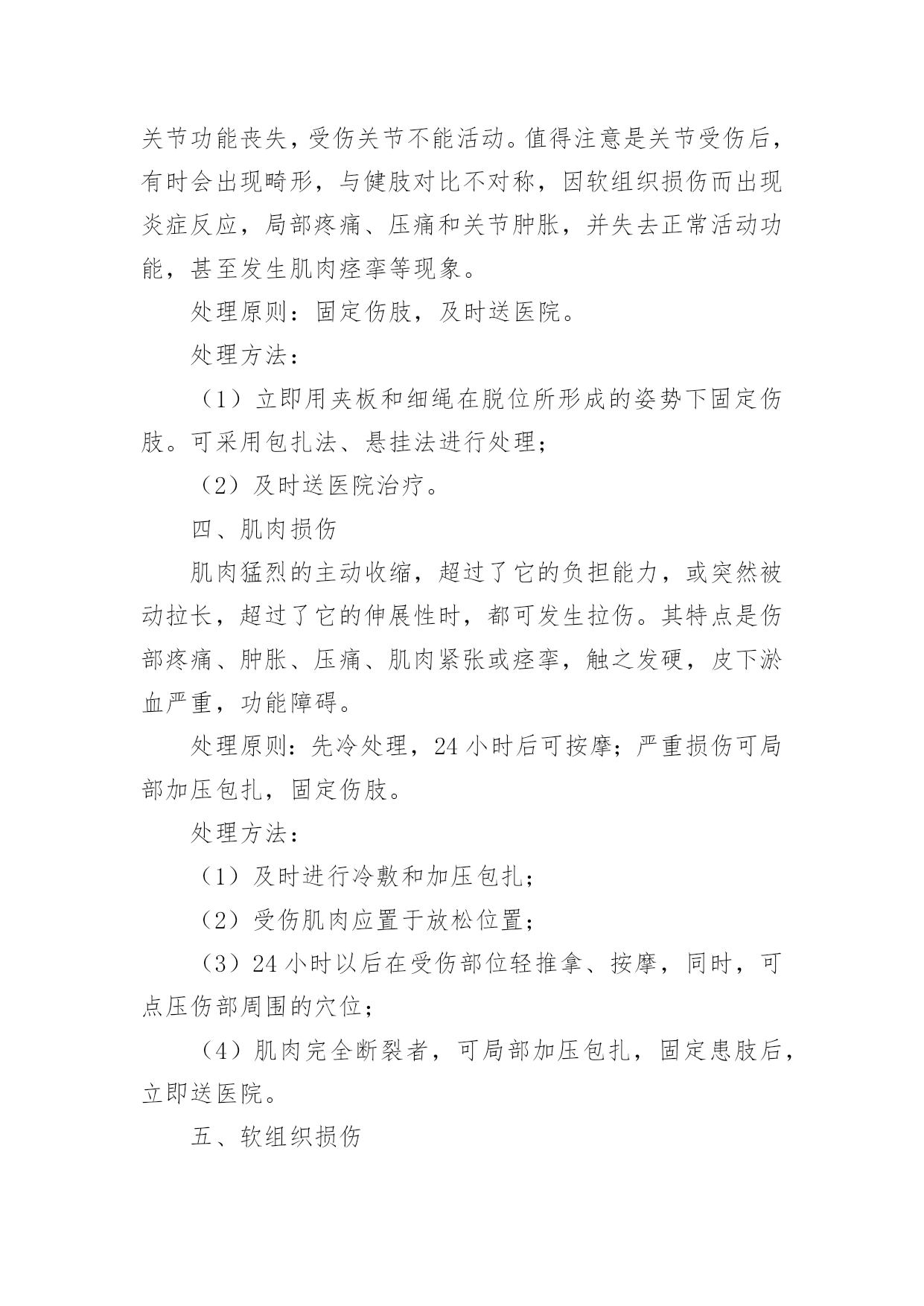 《常见运动损伤的预防》优秀说课稿《常见运动损伤的预防》优秀说课稿(通用10篇)作为一无名无私奉献的教育工作者,就难以避免地要准备说课稿,编写说课稿是提高业务素质的有效途径。那么大家知道正规的说课稿是怎么写的吗?下面是小编帮大家整理的《常见运动损伤的预防》优秀说课稿,欢迎大家分享。《常见运动损伤的预防》优秀说课稿1一、说教材1、地位和作用常见运动损伤预防是人教版体育与健康水平四,属于健康知识领域。教材的意图是让学生进一步认识人际交往的作用,引导学生了解和掌握一些基本的人际交往方法。通过本课程的教学活动,学生更加的关注人际交往,培养了热爱生活的情感,引导学生养成健康的生活方法。2、教学目标知识与技能目标:了解有关运动损伤的一些基本知识。过程与方法目标:通过对运动损伤的掌握,学生能够增强与他人交往的意识,通过小组合作讨论交流发展团队合作能力。情感态度与价值观目标:学生进一步认识人际交往的重要性,培养团结协作意识,热爱自然、热爱健康。3、教学重难点重点:通过对教材分析,以及教师的演示和师生互动,调动学生学习的主动性,了解运动损伤的处理方法。难点:运动损伤的处理方法。二、说学情初中的学生对体育课具有浓厚的'兴趣,开始具有独特见解和独立思考的能力,求知欲和好奇心强烈。已经对社会交往有了一定的了解,为本课的学习打下了很好的基础。但是在人际交往等方面还有所不足。因此,在课堂教学过程中,我将首先观察的过程中引导学生对运动损伤进行分析、将运动损伤原则进行概括。针对本节课的难点,也即是运动损伤处理的方法,我将采用分组讨论的形式,学生通过观察及交流感受等活动,更能加深了解。三、说教学方法根据本课内容,针对这一年龄阶段学生的心里特点和认知规律,在教学方式上我采用讲授法、引导法等相结合的教法,引起学生的兴趣,以最大的热情投入到课堂学习中。四、学习方法学生为教学过程中的主体,所以学法的选择要根据学生自身特点和课程的内容而定。通过对课程内容及学情的分析,我将引导学生采用自主探究法、和小组讨论法等学法参与学习。充分调动学生的主观能动性,引导他们通过自身的体验与合作交流的过程达到对知识的掌握,培养主动探索和自主学习能力。五、教学过程(一)情境导入、引出课题在课堂的开始,采用提问的方式导入今天的课题。同学们大家知道运动中,如果活动不当容易引起损伤,那大家知道如何处理损伤吗?通过提问建立关联,提高学生学习兴趣,达到课未始、兴已浓的效果。(二)讲授新知、增强理解1、分析教材展示运动损伤的图片,引导学生找出原则,通过对人际交往结构的探讨与分析达到对意志的认识与理解,为接下来的学习打下基础。2、分组讨论引导学生思考、探究扭伤的处理原则,得出团队交往、交往有度、自尊自爱、保持独立的异性交往原则。3、骨折通过讨论与讲解,组织学生进行初步的学习,通过交流感受的方法加深对骨折的了解。最后,通过教师提问,学生回忆的方式,师生共同总结所学内容。《常见运动损伤的预防》优秀说课稿2教学目标:知识目标:1、了解运动损伤的定义及发生的原因;2、掌握常见运动损伤的处理办法。能力目标:学会在运动中的相互帮助、相互协助及自我防护。情感目标:树立终身安全运动的意识,尽量避免运动损伤的发生。教材分析:现今高中学生十分热爱体育运动,但由于缺乏一定的运动与安全知识,容易导致损伤事件的发生,在体育与健康课程标准运动技能学习领域中,要采取相应的安全措施预防伤害事故的发生,使学生知道如何在运动中避免危险,掌握运动创伤时和紧急情况下的简易处理方法,安全地进行体育活动,提高处理安全问题的能力。教学重难点:1、教学重点:常见运动损伤的急救措施。2、教学难点:终身安全运动意识的培养。教学方法:讲授法、询问法、演示法、多媒体教学法。教学过程:㈠导入课程:通过设计问题导入授课课程。㈡第一节体育锻炼中常见问题概述一、常见问题种类在体育锻炼和日常生活中,常见的运动性问题可归纳两类,其一运动性疾病(亦称运动生理反应),它是指由于运动而造成的人体生理活动过程的有序性受到暂时破坏,而出现的反应,如腹痛、肌肉痉挛、运动性昏阙和极点等。其二运动性损伤,它是指体育运动中机体的内部或外部所发生的损伤,如开放性软组织损伤、闭合性软组织损伤、骨折等。二、常见问题发生原因①缺乏合理的准备活动②身体机能较差③运动量安排不合理④运动环境较差⑤心理素质较差⑥解剖生理学特点㈢第二节运动损伤的预防参加体育锻炼的目的是为了增强体能,促进身心健康,而运动损伤的发生往往会使锻炼者的身心都受到一定的损害,因此,预防于未然就显得特别重要。锻炼者应采取一些运动损伤的预防措施,从而使体育锻炼健康安全而富有成效。一、锻炼前应作好准备活动。准备活动不但能使基础体温升高、肌肉深部的血液循环增加、肌肉的应激性提高和关节柔软性增强等,也能减少锻炼前的紧张感和压力感。二、锻炼后
