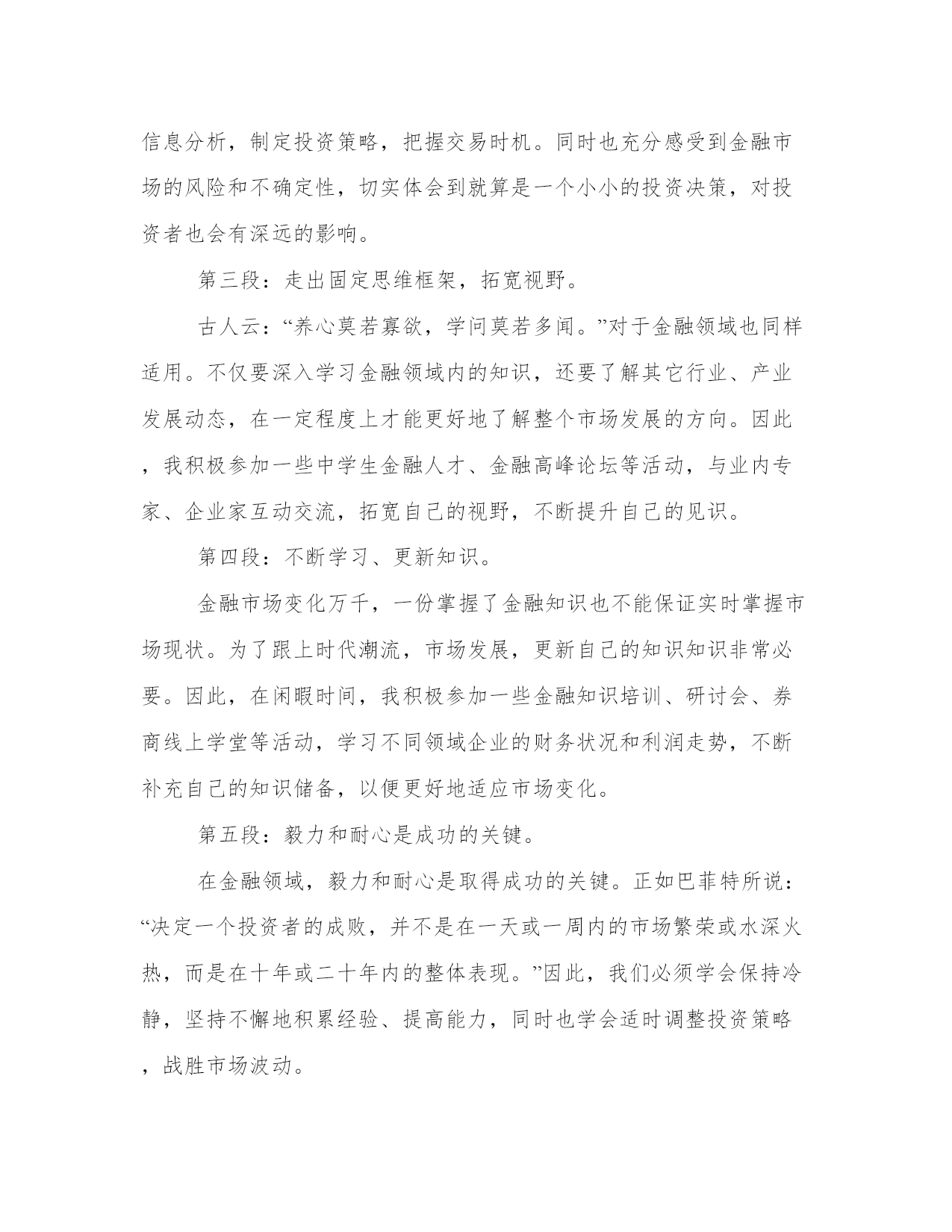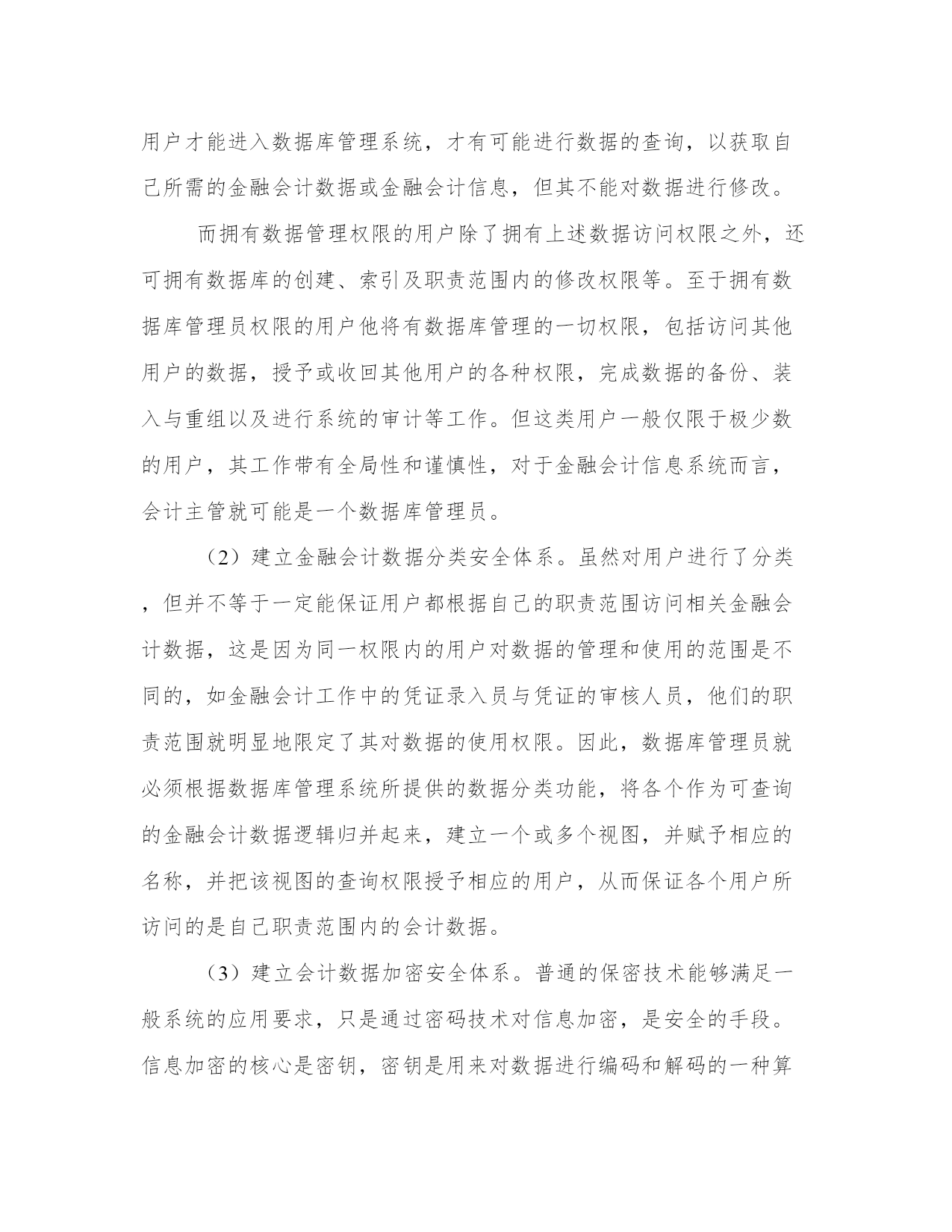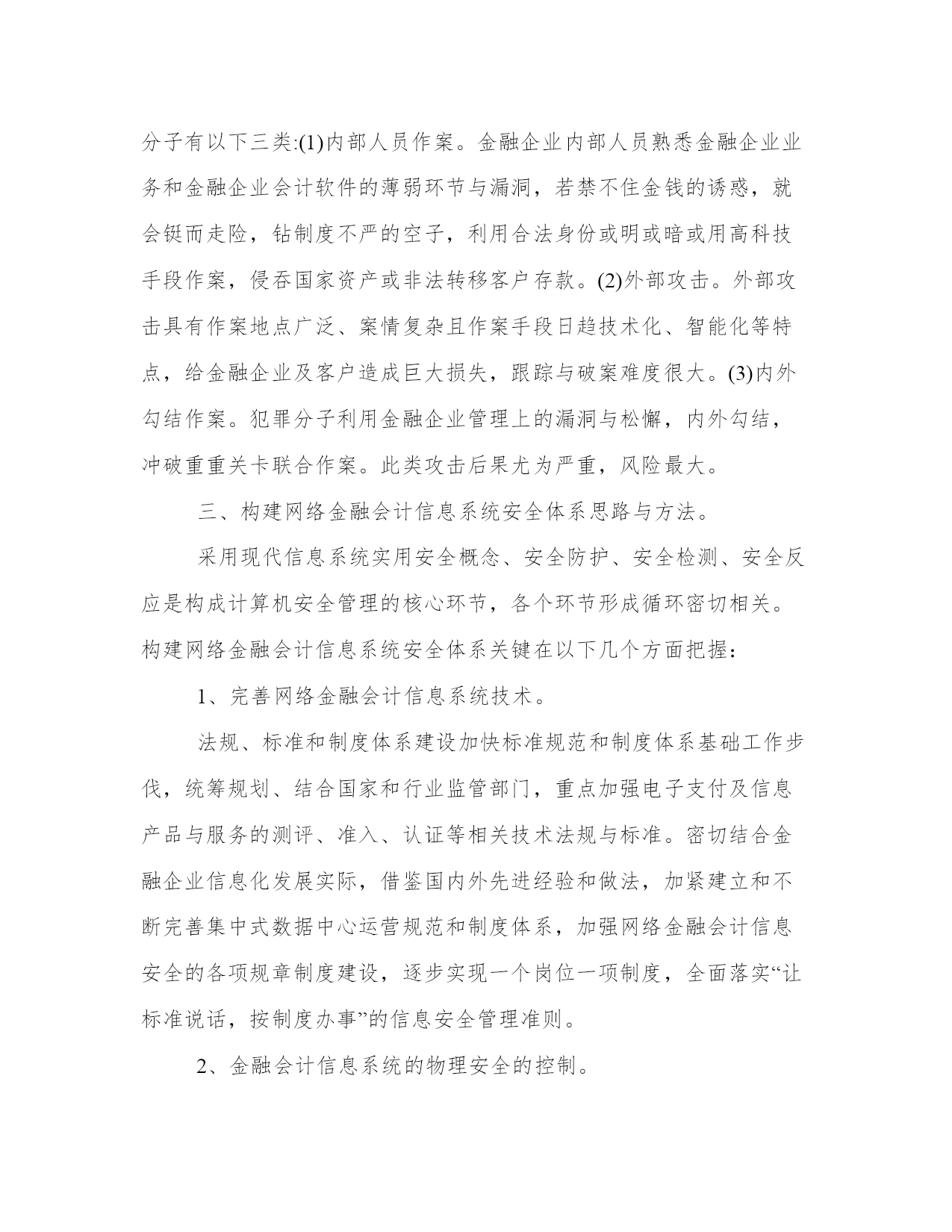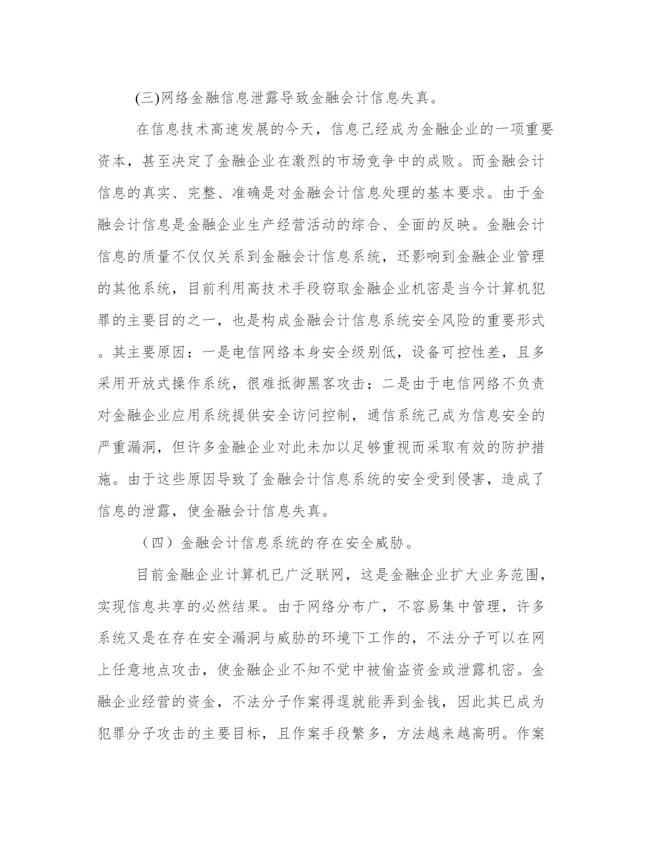 银行绿色金融心得体会(汇总13篇)体会是指将学习的东西运用到实践中去,通过实践反思学习内容并记录下来的文字,近似于经验总结。心得体会可以帮助我们更好地认识自己,通过总结和反思,我们可以更清楚地了解自己的优点和不足,找到自己的定位和方向。以下我给大家整理了一些优质的心得体会范文,希望对大家能够有所帮助。银行绿色金融心得体会篇一近些年来,金融领域的发展呈现出繁荣的景象,与之相应,人们对于金融这一话题的关注程度不断提升。作为从业者,作为普通百姓,进入金融世界已经成为一种趋势,我也不例外。下面,我将就我自己在金融领域的心得体会进行分享。第一段:了解基础理论,掌握基本知识。在进入金融领域之前,我首先选择了阅读相关书籍、听取专家讲座等方式,了解金融领域一些基本的术语、知识和规则,例如金融市场、证券、基金等等。这些知识在之后的实践中成为我理解和应用的基础,也为我日后更深入地分析金融打下了基础。第二段:实践是检验真理的唯一标准。理论虽好,但面对复杂多变的金融市场,仅凭书本知识也会存在不足。因此,我非常注重实践。我尝试着在投资员工持股计划、购买基金、购买股票等方面进行投资。在实践中,我逐渐学习到如何通过信息分析,制定投资策略,把握交易时机。同时也充分感受到金融市场的风险和不确定性,切实体会到就算是一个小小的投资决策,对投资者也会有深远的影响。第三段:走出固定思维框架,拓宽视野。古人云:“养心莫若寡欲,学问莫若多闻。”对于金融领域也同样适用。不仅要深入学习金融领域内的知识,还要了解其它行业、产业发展动态,在一定程度上才能更好地了解整个市场发展的方向。因此,我积极参加一些中学生金融人才、金融高峰论坛等活动,与业内专家、企业家互动交流,拓宽自己的视野,不断提升自己的见识。第四段:不断学习、更新知识。金融市场变化万千,一份掌握了金融知识也不能保证实时掌握市场现状。为了跟上时代潮流,市场发展,更新自己的知识知识非常必要。因此,在闲暇时间,我积极参加一些金融知识培训、研讨会、券商线上学堂等活动,学习不同领域企业的财务状况和利润走势,不断补充自己的知识储备,以便更好地适应市场变化。第五段:毅力和耐心是成功的关键。在金融领域,毅力和耐心是取得成功的关键。正如巴菲特所说:“决定一个投资者的成败,并不是在一天或一周内的市场繁荣或水深火热,而是在十年或二十年内的整体表现。”因此,我们必须学会保持冷静,坚持不懈地积累经验、提高能力,同时也学会适时调整投资策略,战胜市场波动。总之,我的金融之路可以说是一个不断学习、实践、更新的过程,这让我对于金融这一领域有了更多的认识和了解,同时也让我积累了宝贵的经验。只要我们持之以恒,心怀定力,积极实践并更新自己的知识储备,相信在未来的金融之路上,我们也可以游刃有余,驰骋无阻。银行绿色金融心得体会篇二网络金融会计信息系统是指建立在网络环境基础上的会计信息系统网络环境,包括两部分:一是金融企业内部网络环境,即内网,通过组建金融企业内部网络结构实现内部各部门之间的信息交流和共享;二是国际网络环境,即通过互联网使金融企业同外部进行信息交流与共享,基于互联网的会计信息系统,也可以说是基于内联网的会计信息系统,即金融企业的内联网和互联网连接,为金融企业内各部门之间,金融企业与客户、税务、审计等部门之间建立开放、分布、实时的双向多媒体信息交流环境创造了条件,也使金融企业会计与业务一体化处理和实时监管成为现实,原来封闭的局域网会计信息系统被推上开放的互联网世界后,一方面给金融企业带来了前所未有的会计与业务一体化处理和实时监管的优越性,另一方面由于互联网系统的分布式、开放性等特点,其与原有集中封闭的会计信息系统比较,系统在安全上的问题也更加突出,互联网会计信息系统的风险性更大。二、当前网络金融会计信息系统存在安全隐患。(一)金融会计信息安全组织管理体系不完善。目前,金融企业尚未建立起一套完整的计算机安全管理组织体系,金融会计信息系统的建设在安全设计方面缺乏总体考虑和统一规划部署,各系统根据自己的理解进行规划建设,技术要求不规范,技术标准各异,技术体制混乱。国家标准制定严重滞后,法律法规不能满足金融会计信息系统的安全需求,现行计算机安全法律法规不能为金融会计信息系统安全管理提供完整配套的法律依据,在一定程度上存在法律漏洞、死角和非一致性。(二)网络金融会计信息数据不安全。网络金融会计数据是记录在各种单、证、账、表原始记录或初步加工后的会计资料,它反映企业的经营情况和经营成果,对外具有较高的保密性,连接互连网后,会计数据能迅速传播,其安全性降低,风险因素大大增加,网络金融会计的信息工作平台是互联网,在其运作过程中,正确性、有效性会受到技术障碍的限制和网络与应用软件接口的限制,如网络软件选配不合适,网络操作系统和