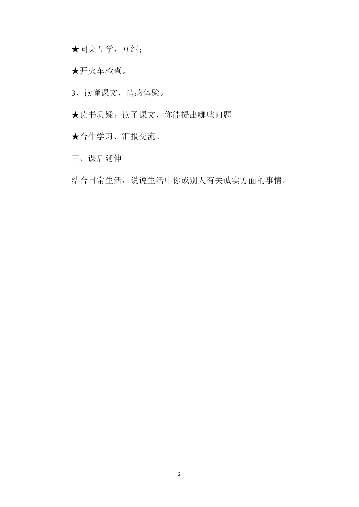 PAGEPAGE2《可爱的娃娃》教学设计教学目标:1、认识8个生字,会写7个生字。2、有感情地朗读课文。3、懂得做一个诚实的人,一个心胸坦荡的人才能生活得快乐,知错能改还是好孩子的道理。教学课时:两课时教学过程:一、激趣导入1、听故事《狼来了》,提问导入。师:放羊娃第三次喊狼来了,为何没人理他2、板书课题,读题质疑。(贴可爱的娃娃图)师:读了课题,你想知道什么二、读通读懂课文1、熟读课文,整体感知。★自由读书,用多种方法识字;★听录音,正字音,进一步认字。2、读通课文,互学生字。★同桌互学,互纠;★开火车检查。3、读懂课文,情感体验。★读书质疑:读了课文,你能提出哪些问题★合作学习、汇报交流。三、课后延伸结合日常生活,说说生活中你或别人有关诚实方面的事情。