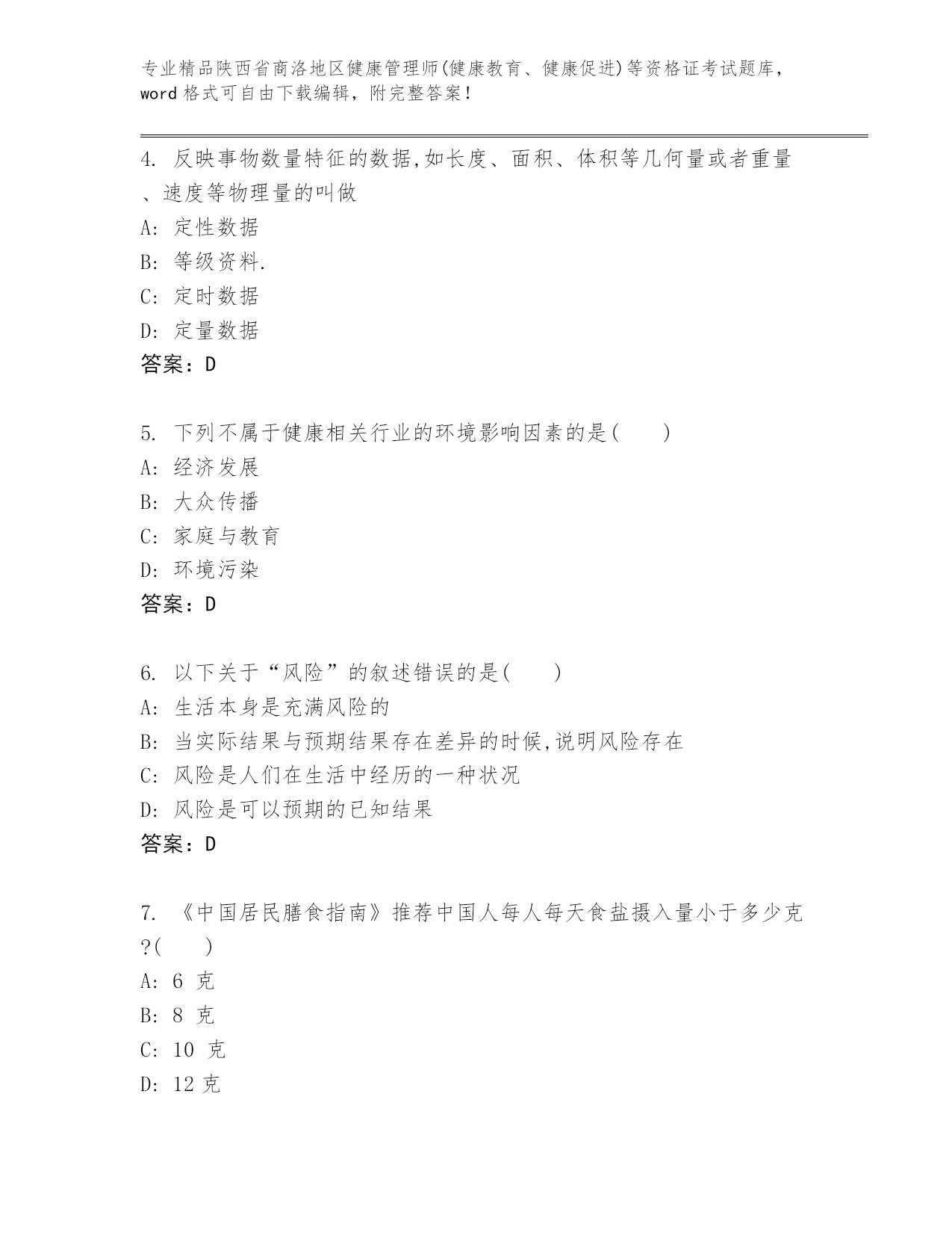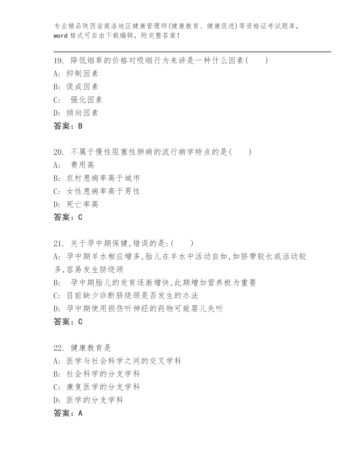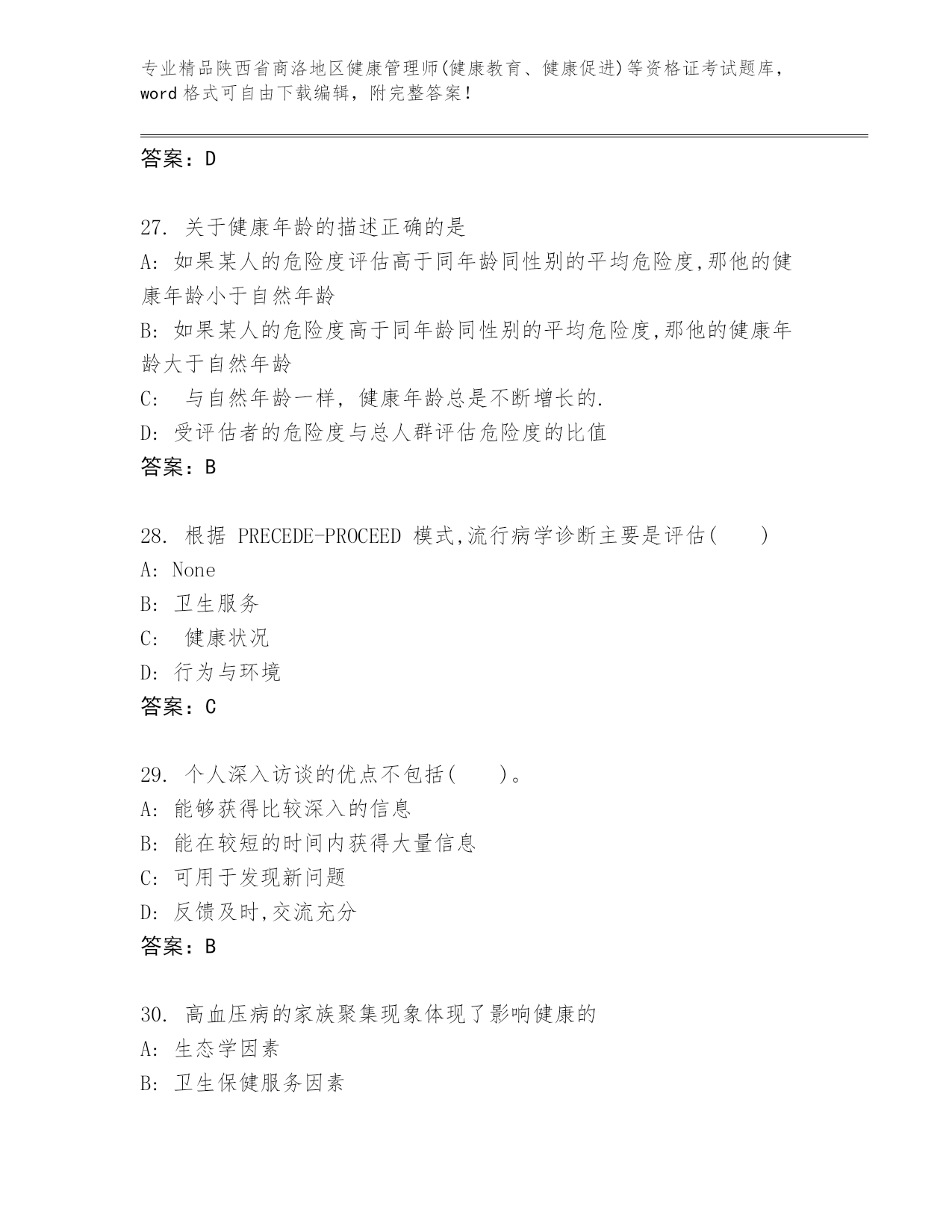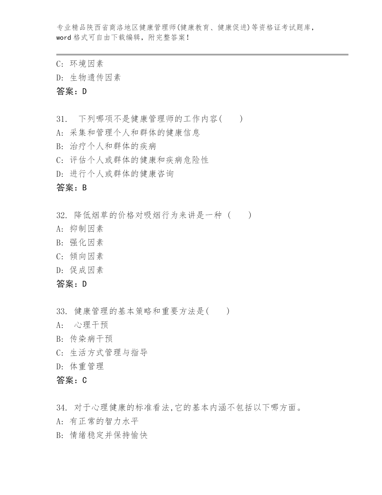 历年陕西省商洛地区健康管理师(健康教育、健康促进)等资格证考试【名师推荐】.docx