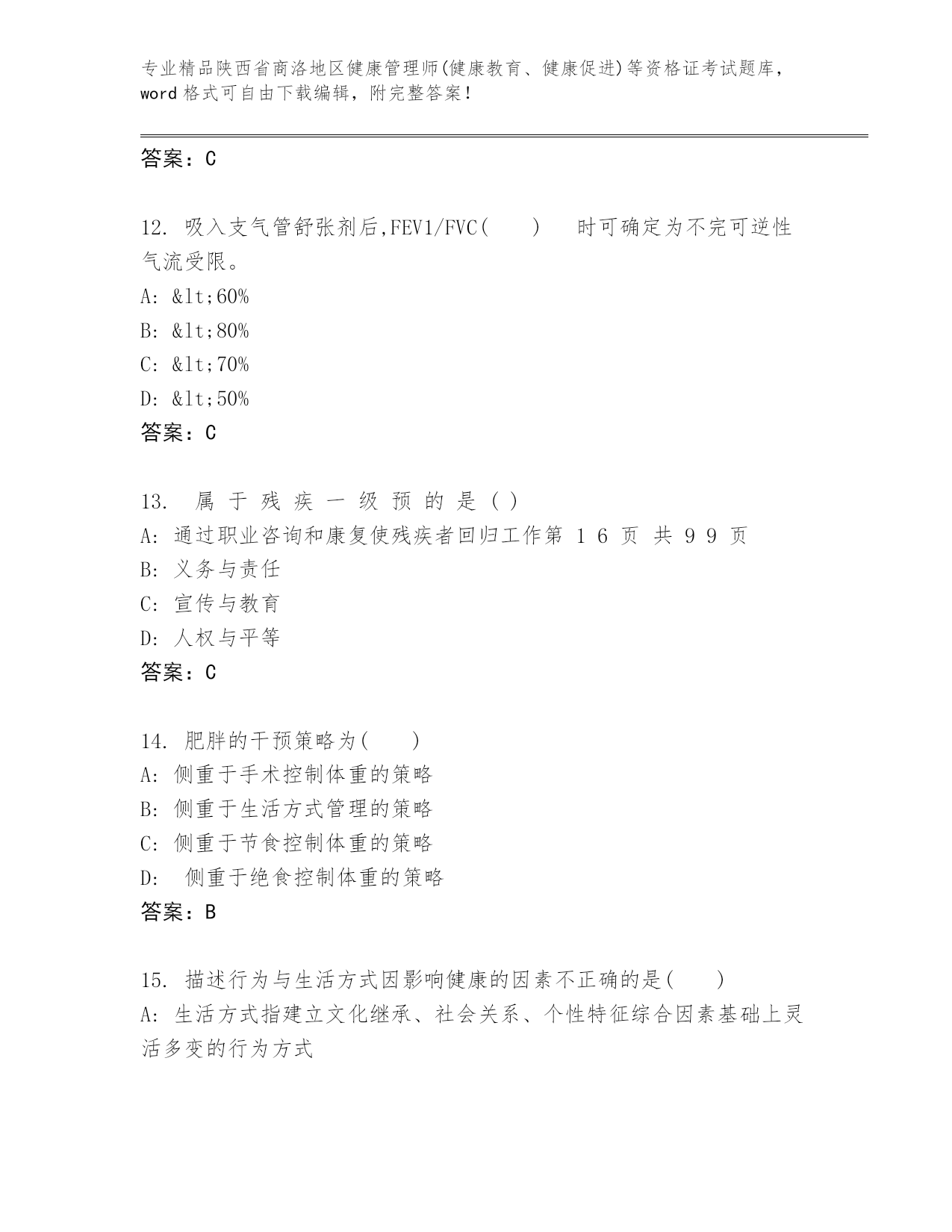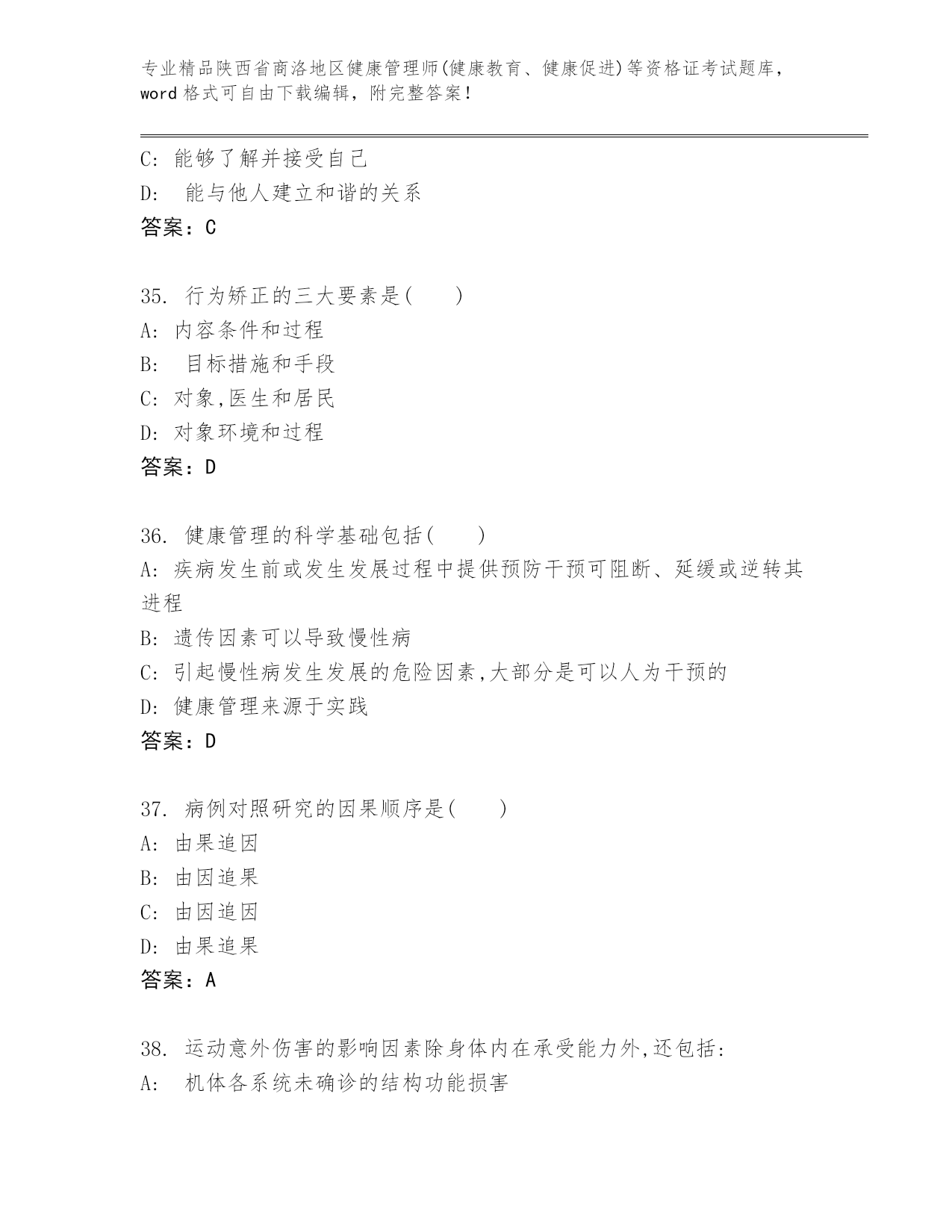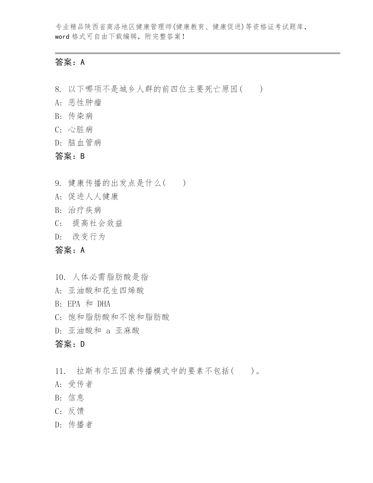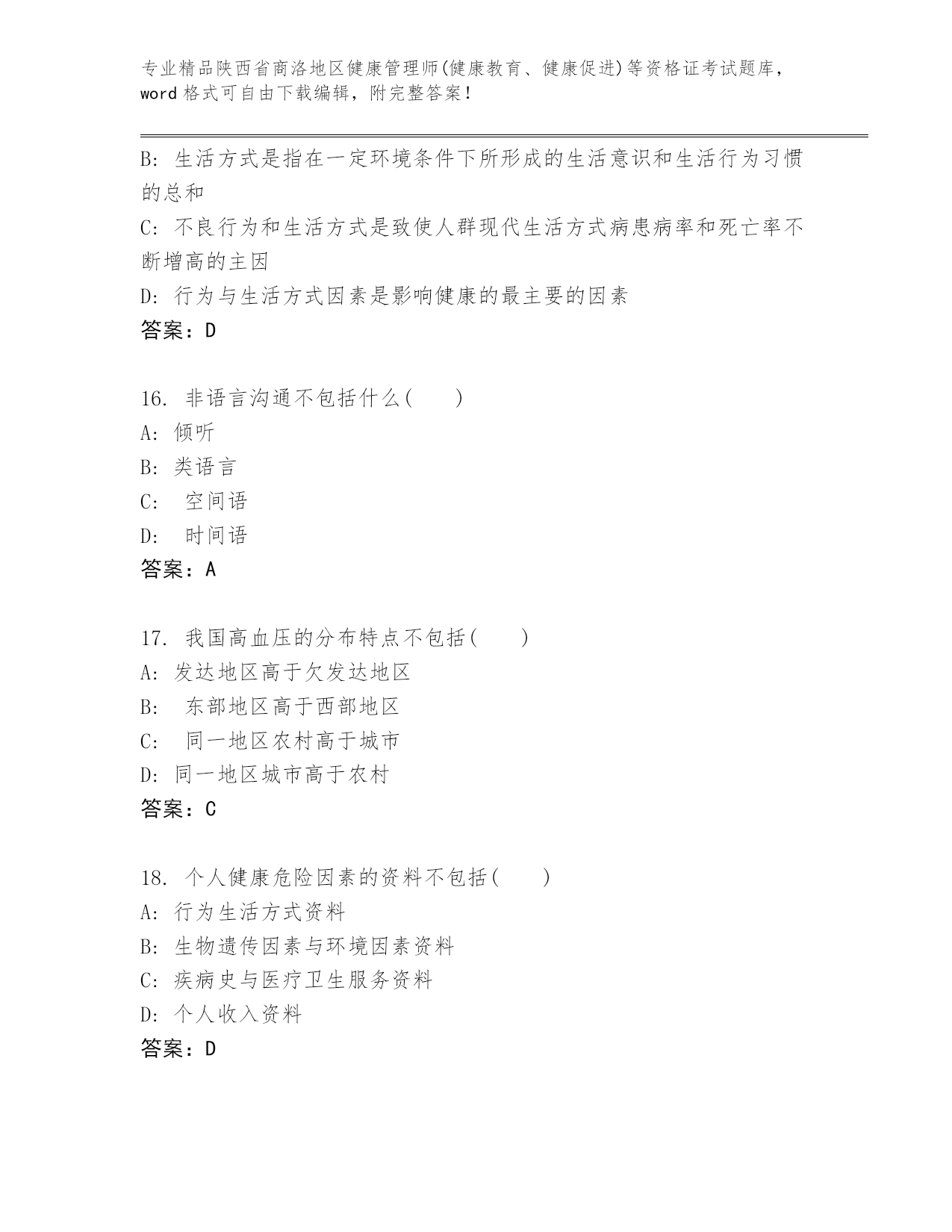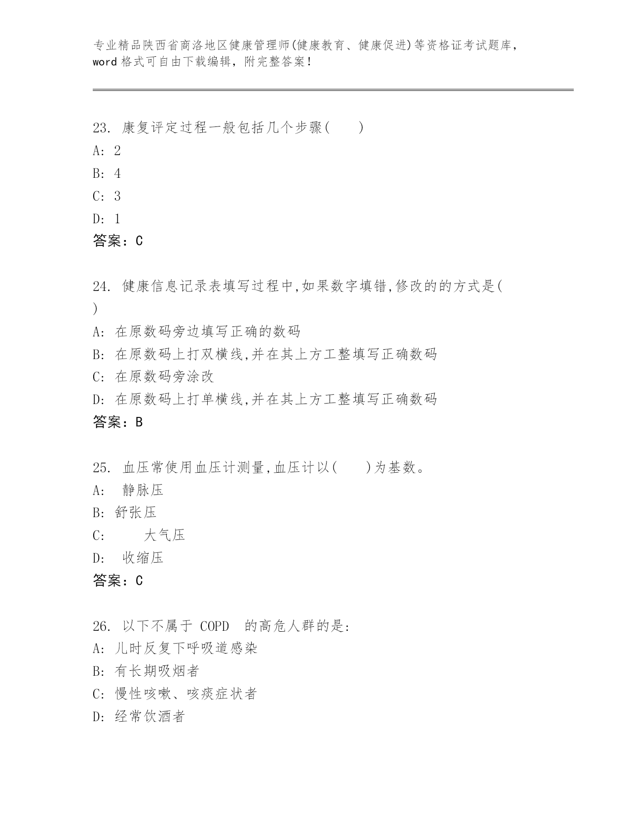 历年陕西省商洛地区健康管理师(健康教育、健康促进)等资格证考试【名师推荐】.docx