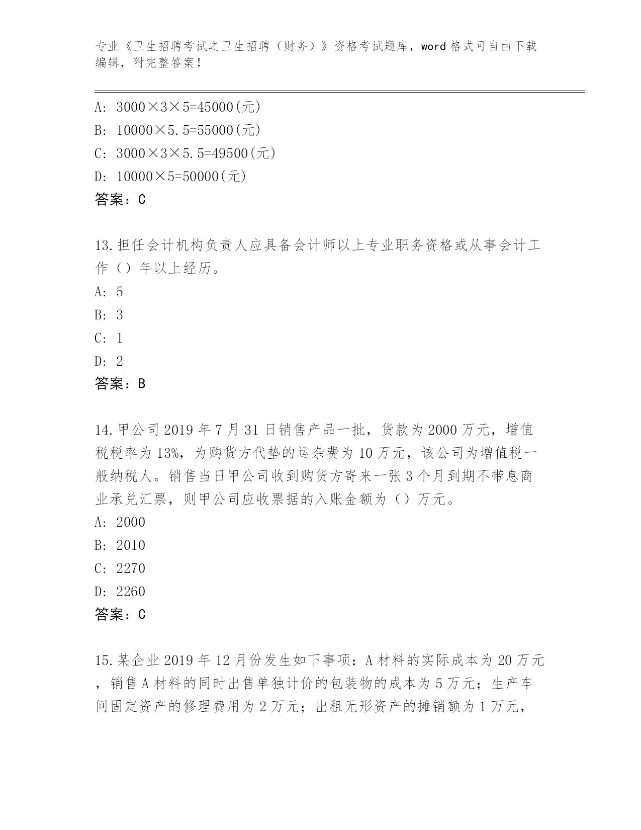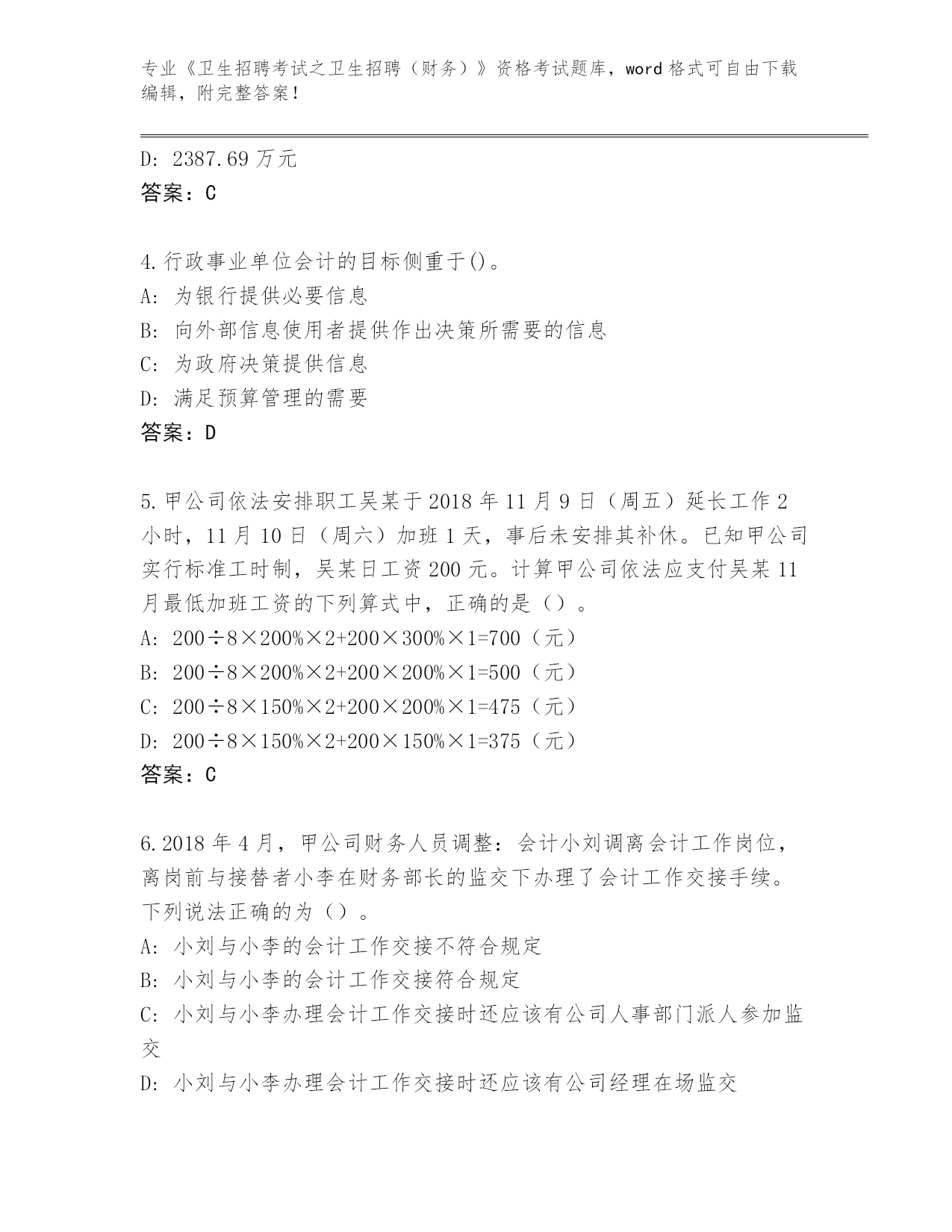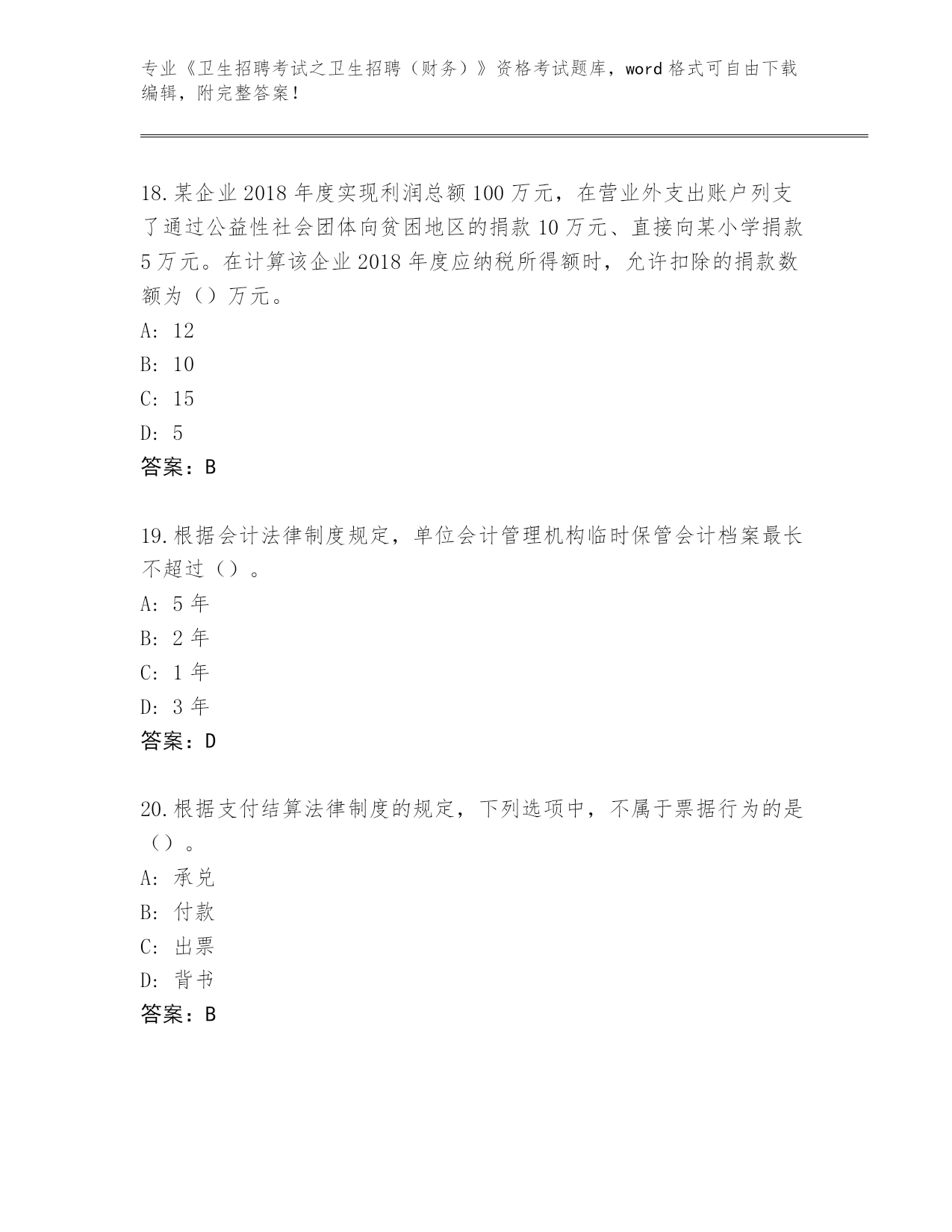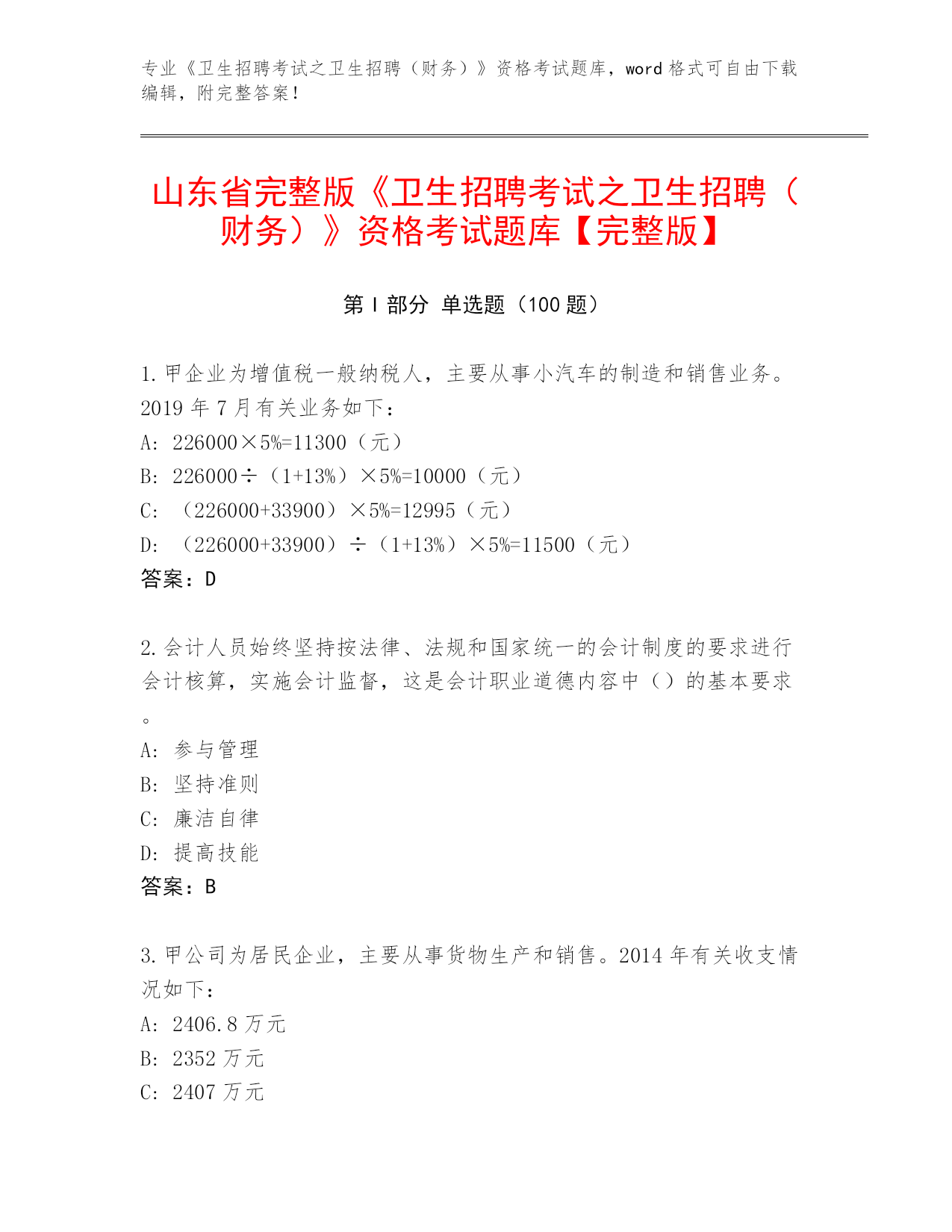 山东省历年《卫生招聘考试之卫生招聘(财务)》资格考试完整版答案下载