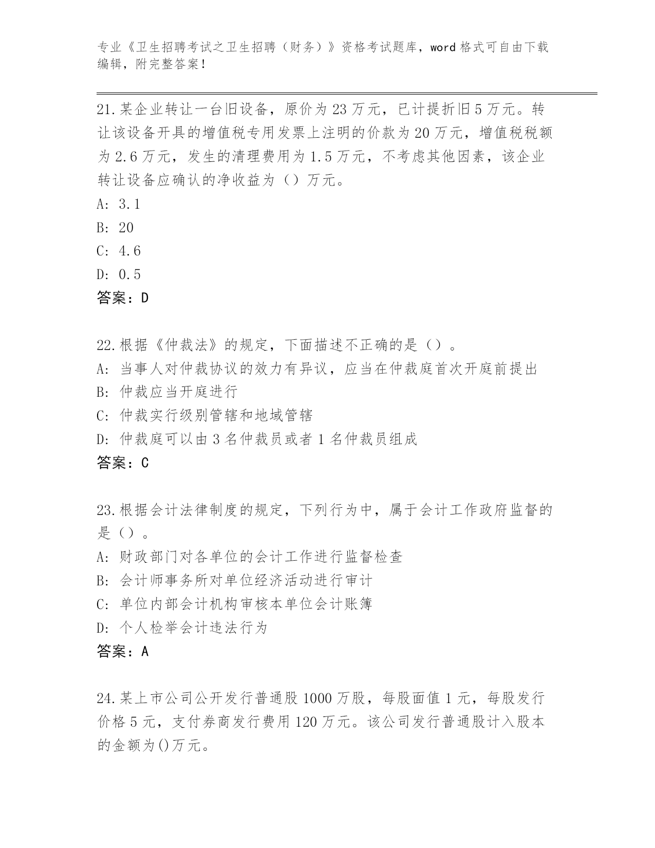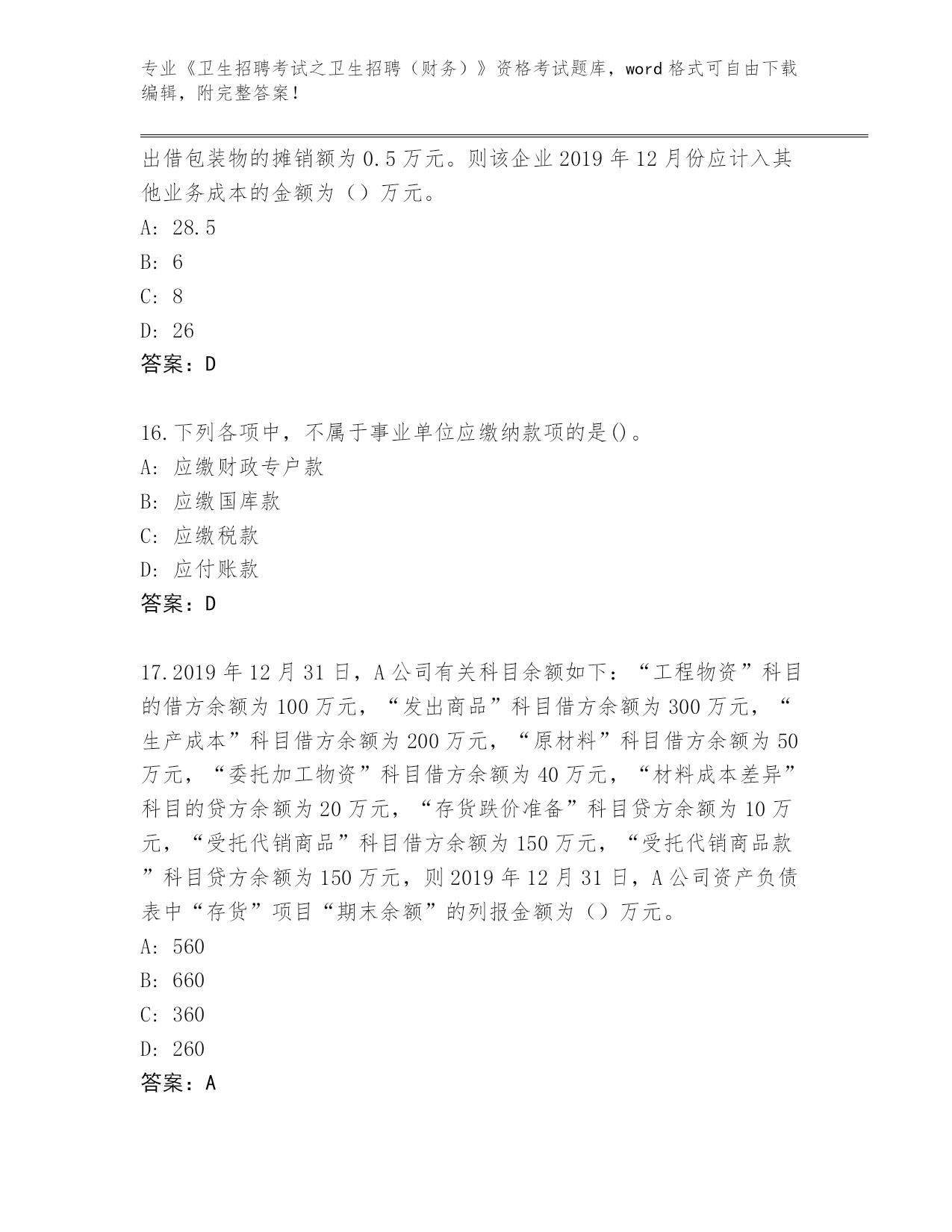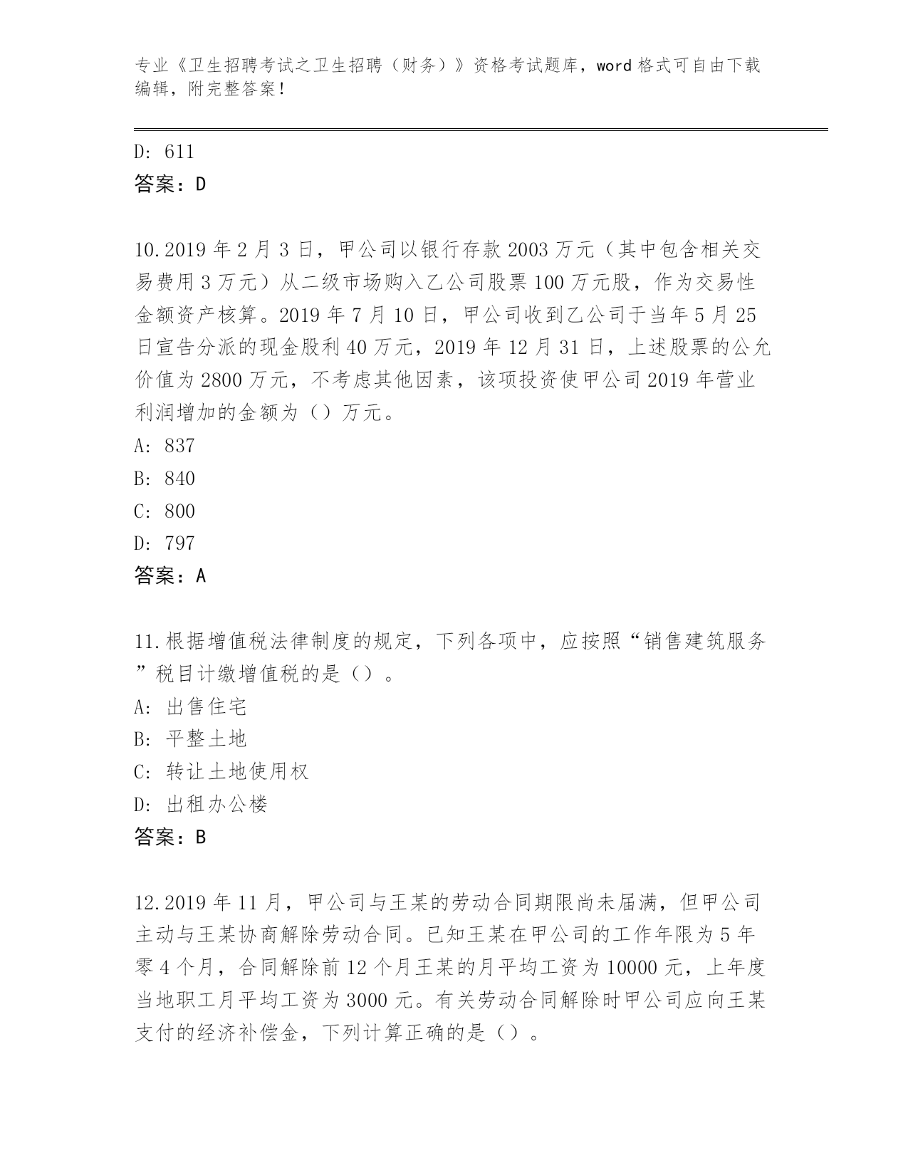 山东省临淄区2024《卫生招聘考试之卫生招聘(财务)》资格考试完整版含答案(完整版)