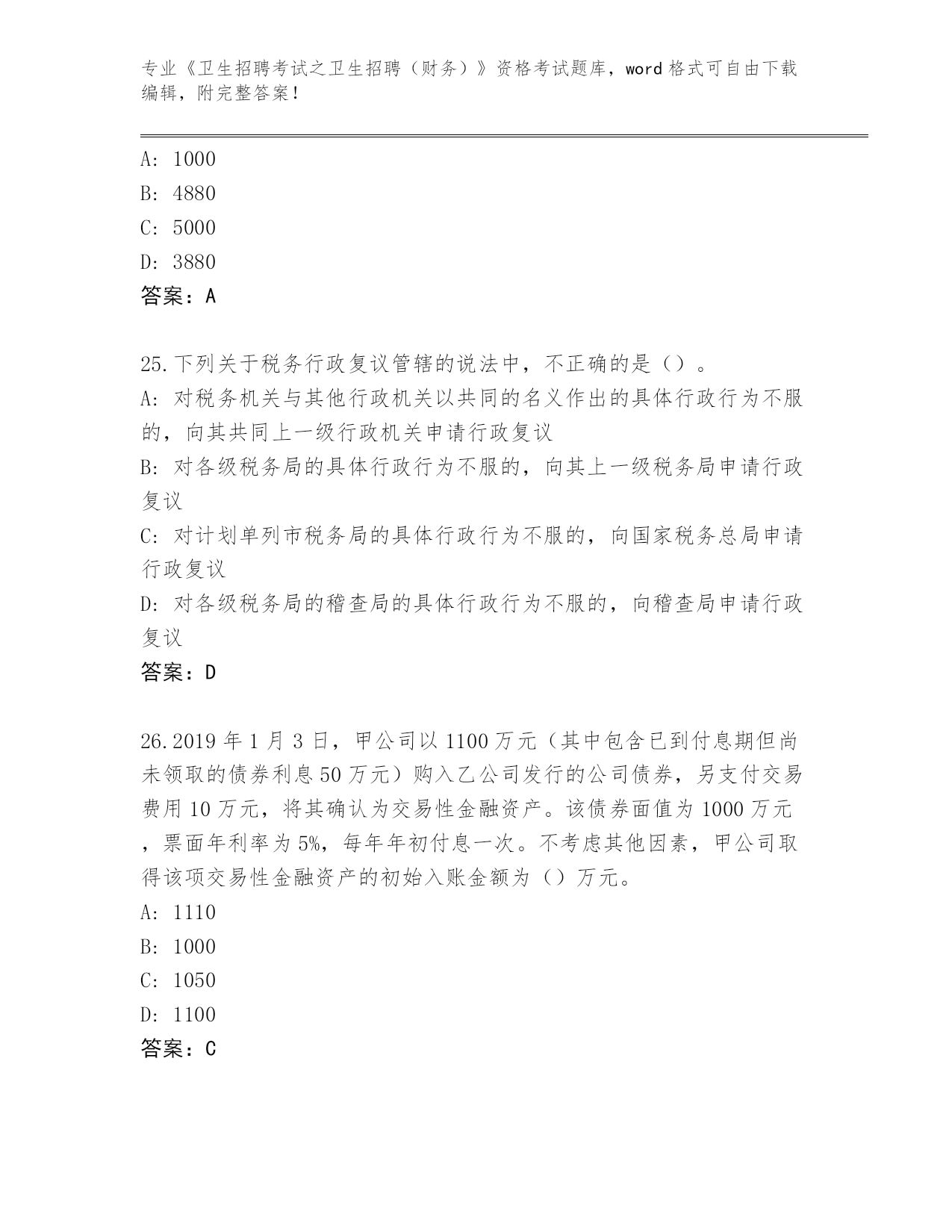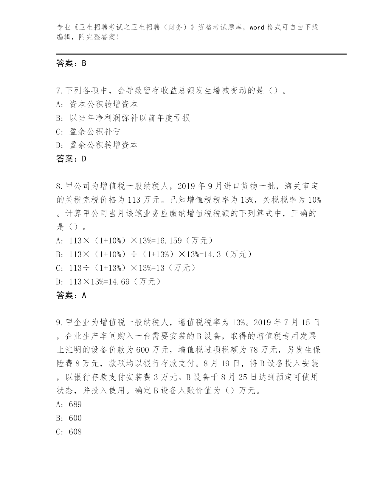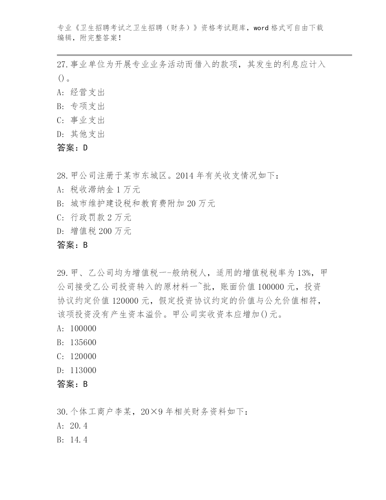 山东省临淄区2024《卫生招聘考试之卫生招聘(财务)》资格考试完整版含答案(完整版)