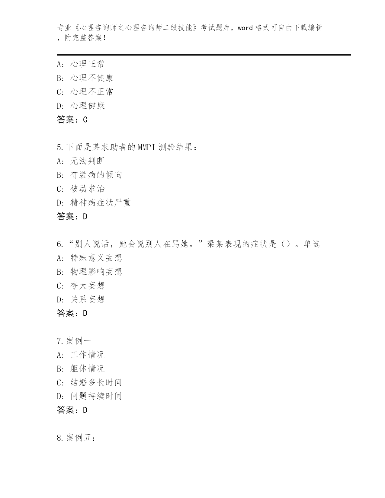 内部使用云南省盘龙区《心理咨询师之心理咨询师二级技能》考试必考200题王牌题库及答案