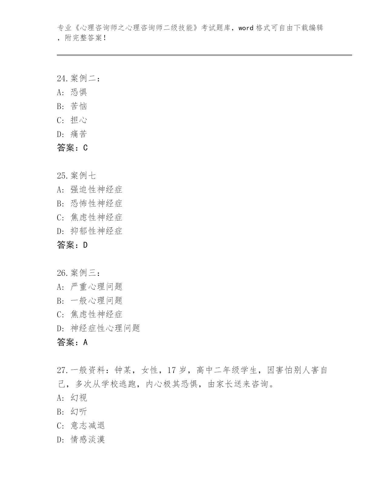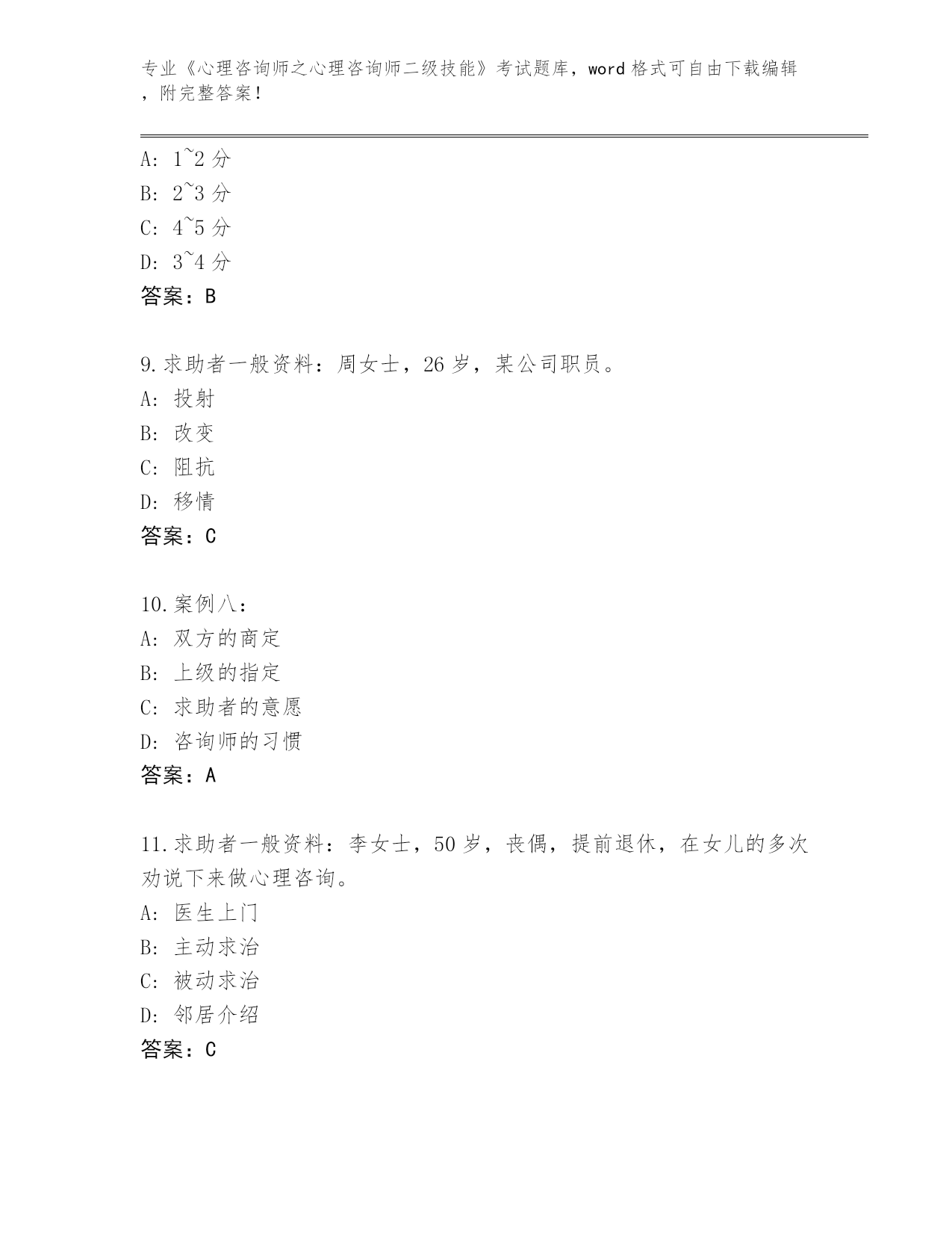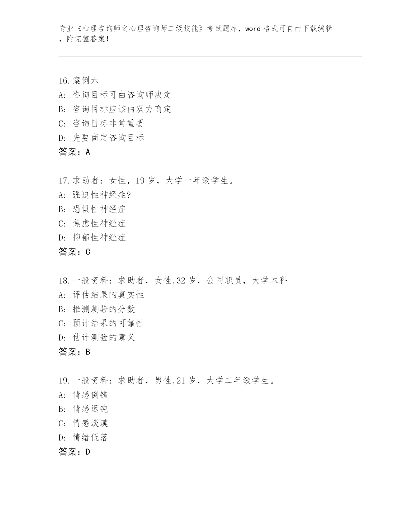 2024年福建省《心理咨询师之心理咨询师二级技能》考试王牌题库带答案解析