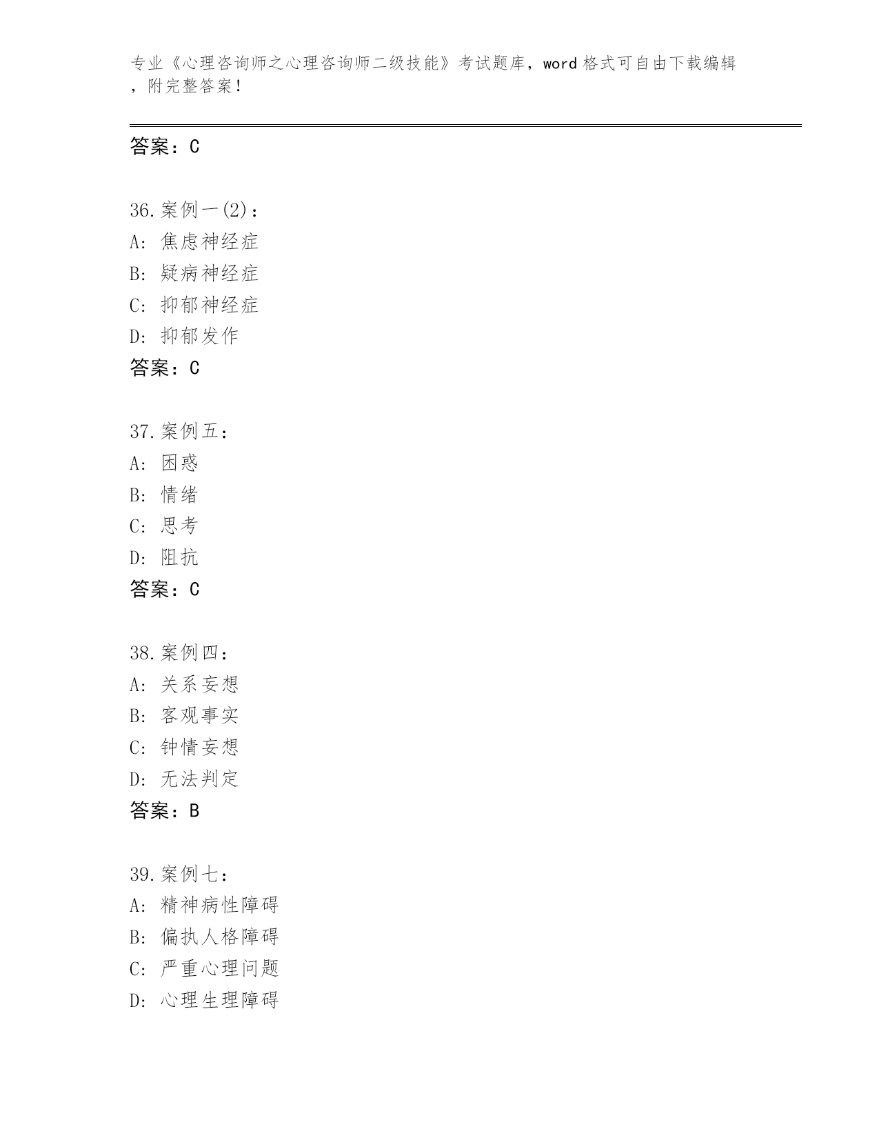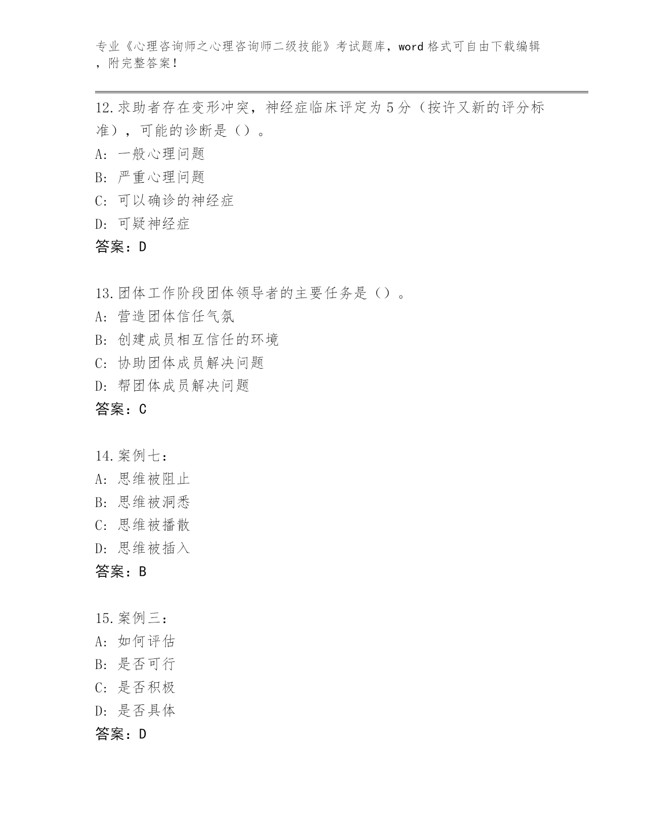历年陕西省《心理咨询师之心理咨询师二级技能》考试王牌题库有解析答案