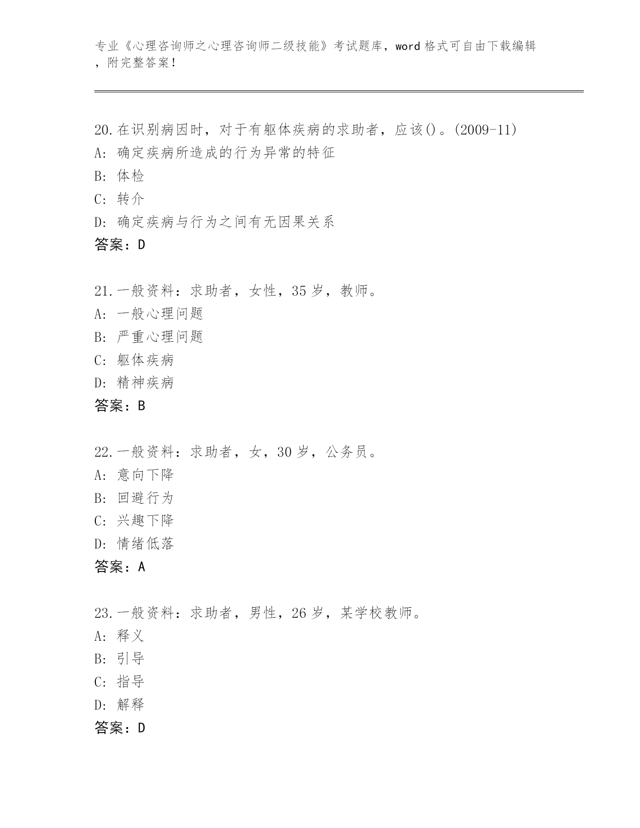 广东省2024年《心理咨询师之心理咨询师二级技能》考试王牌题库附答案解析