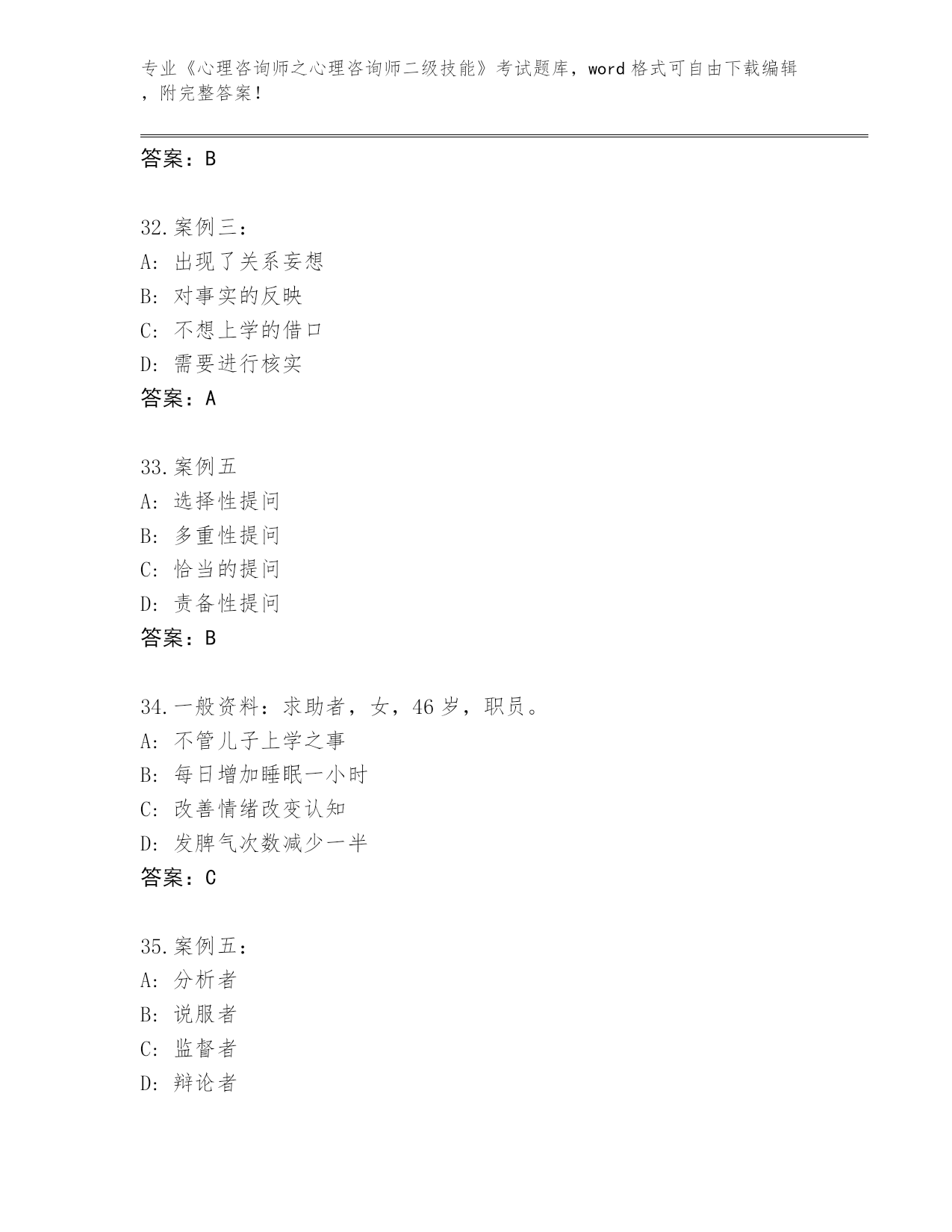 历年福建省建阳区《心理咨询师之心理咨询师二级技能》考试王牌题库及解析答案