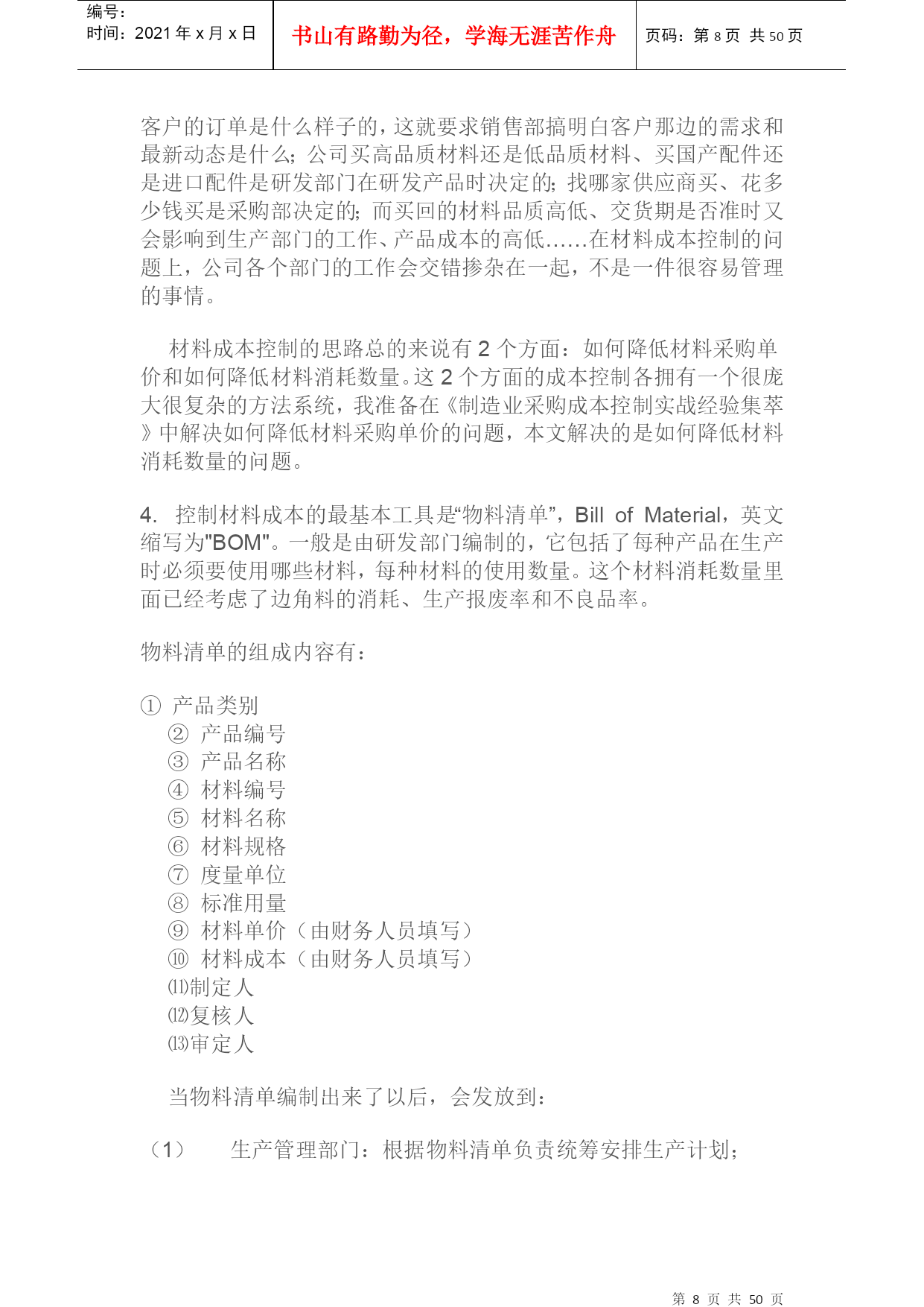 制造业生产成本控制实战经验集萃(DOCX 50页)