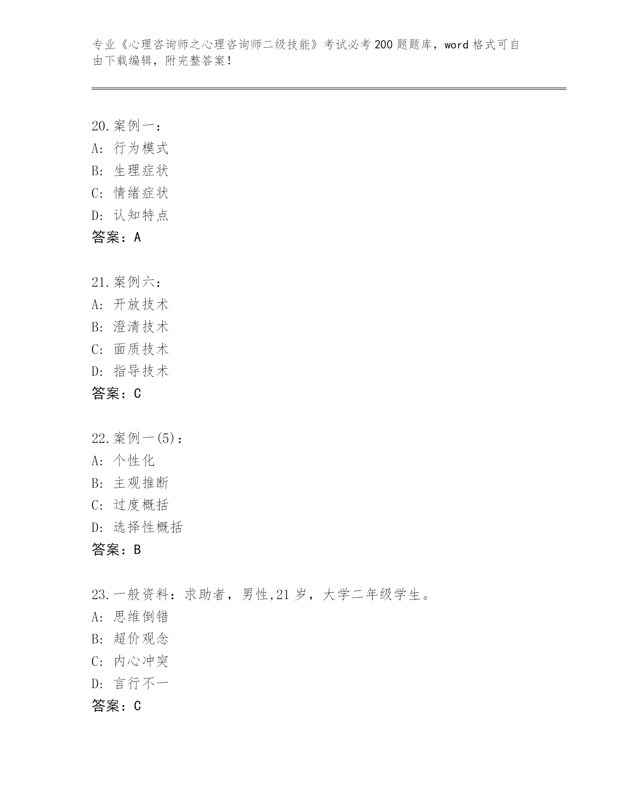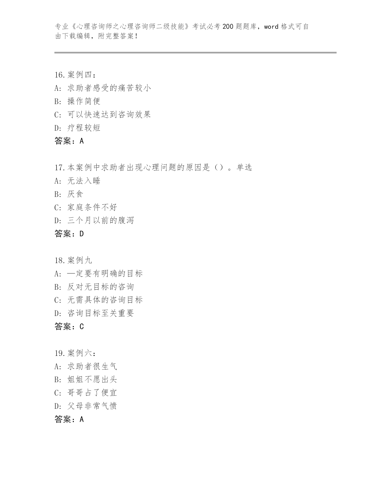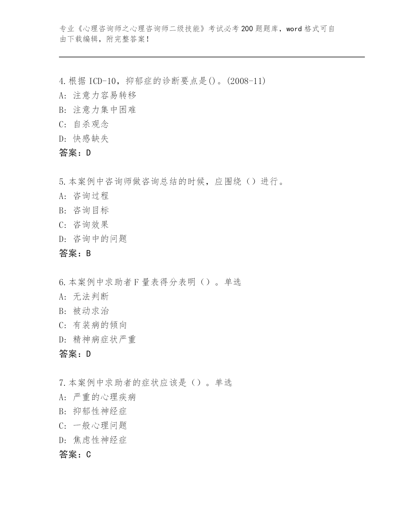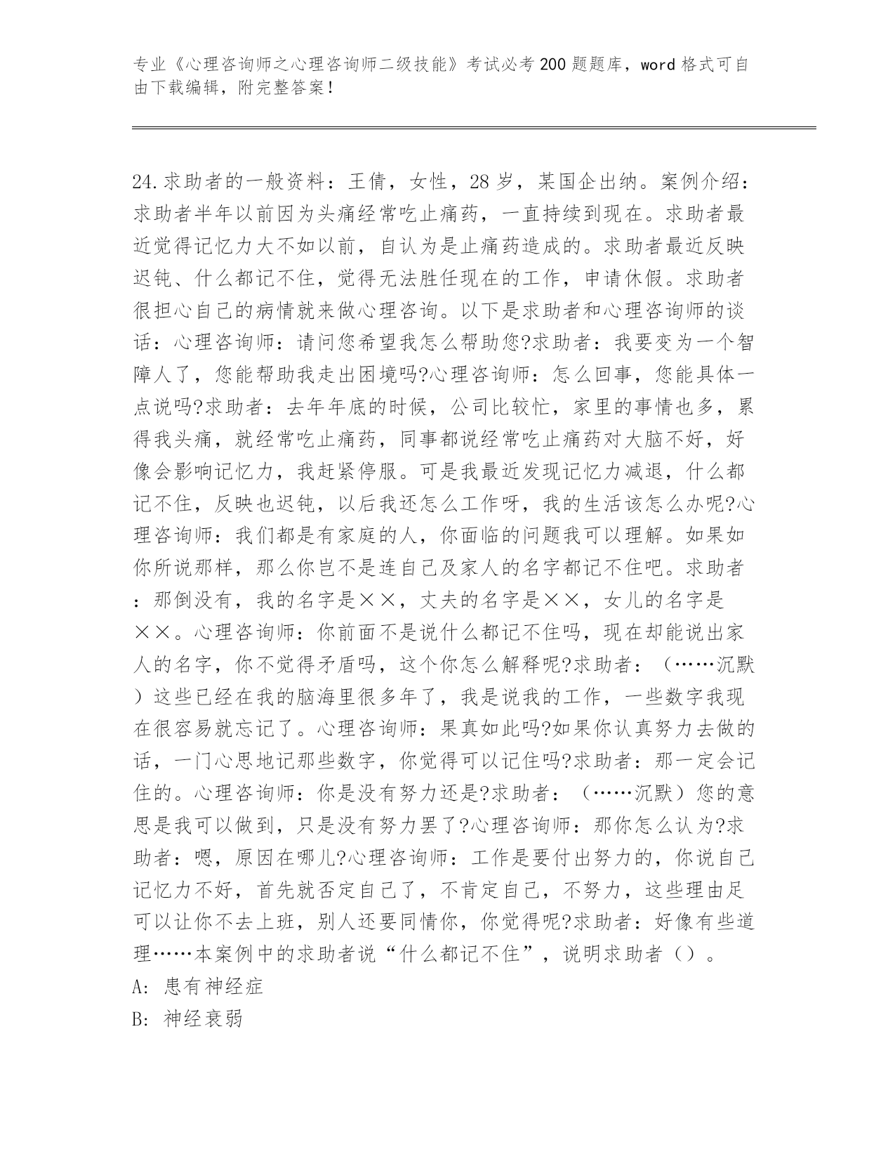 广东省2024《心理咨询师之心理咨询师二级技能》考试必考200题完整版附下载答案