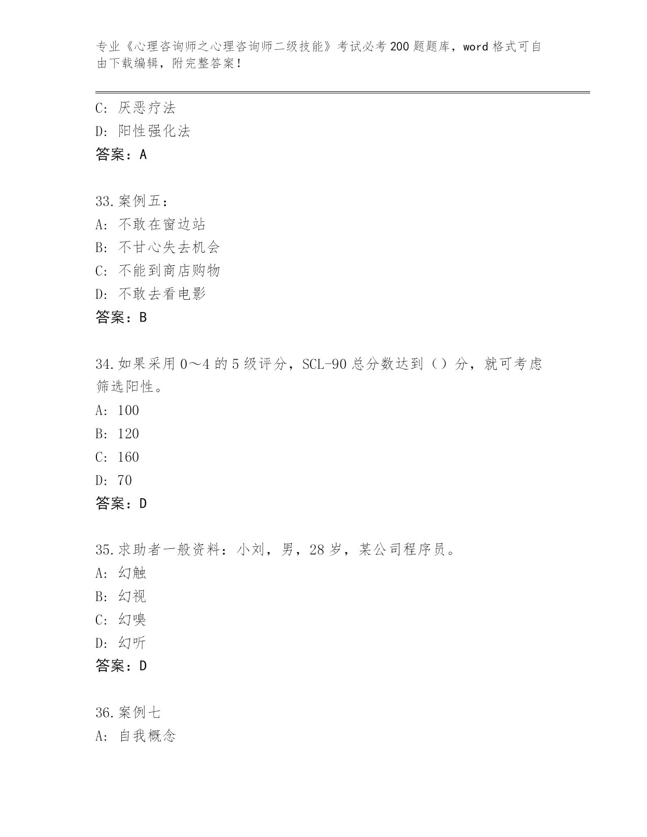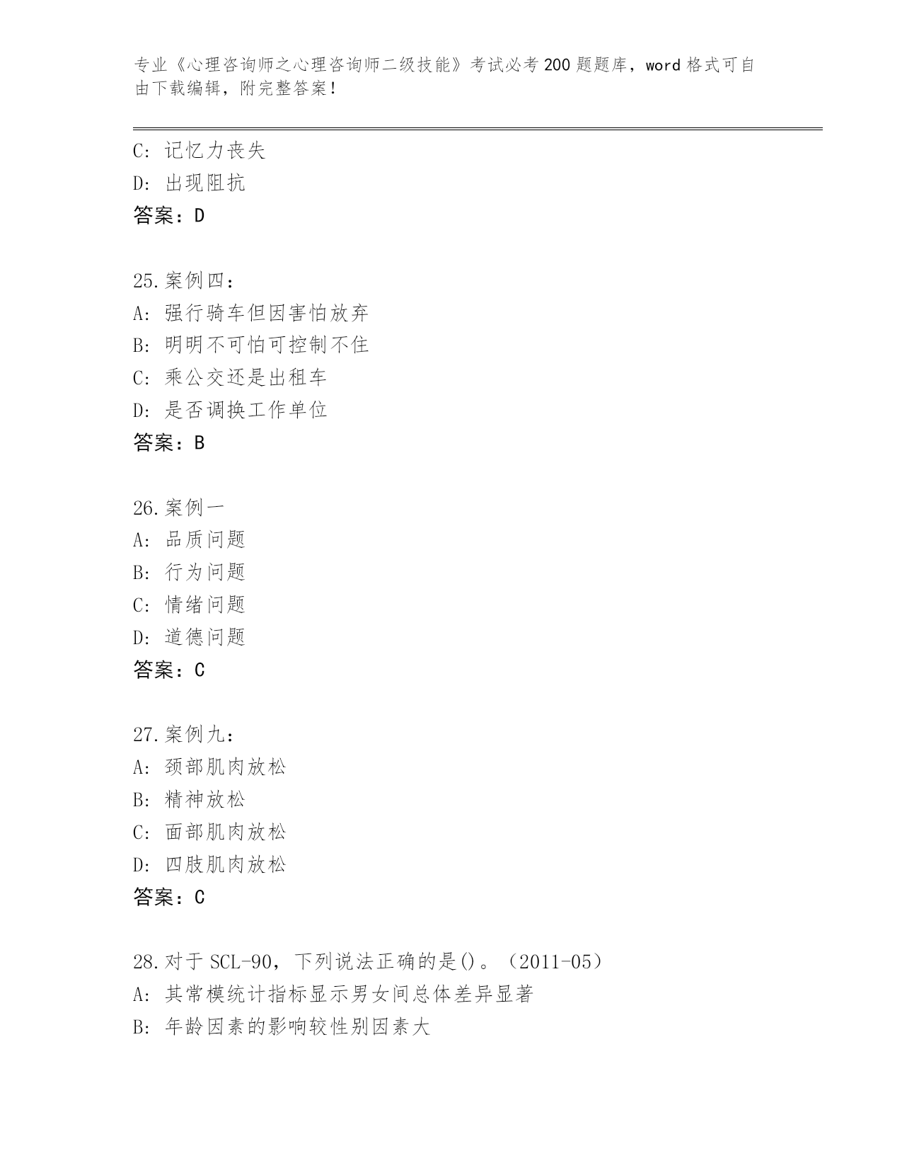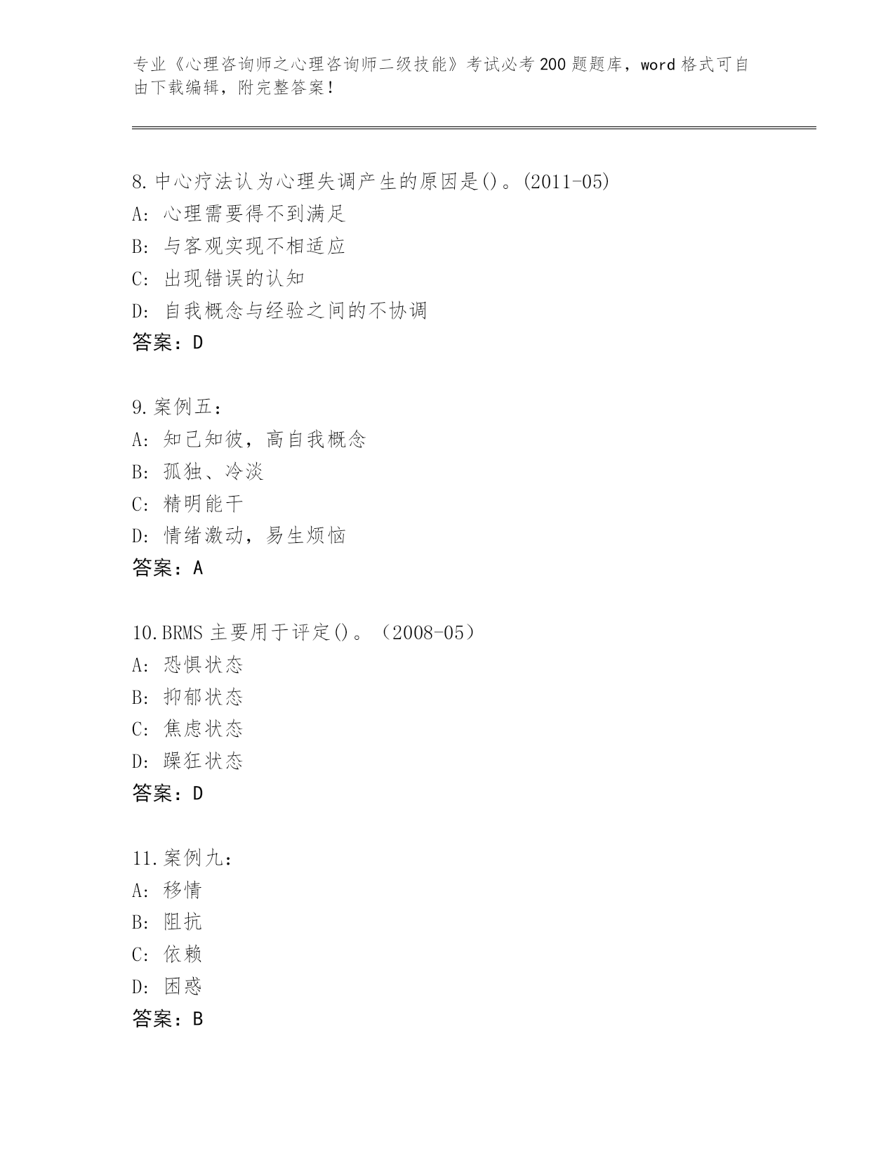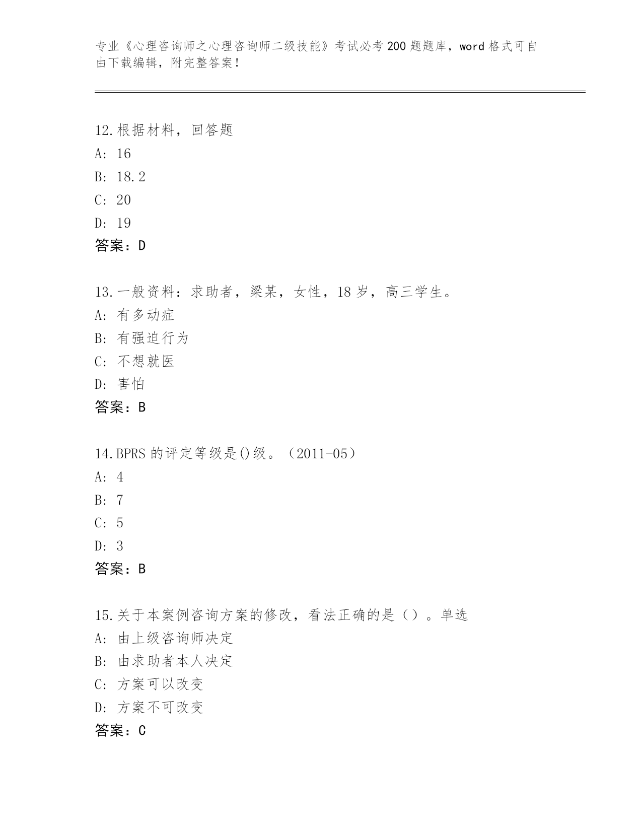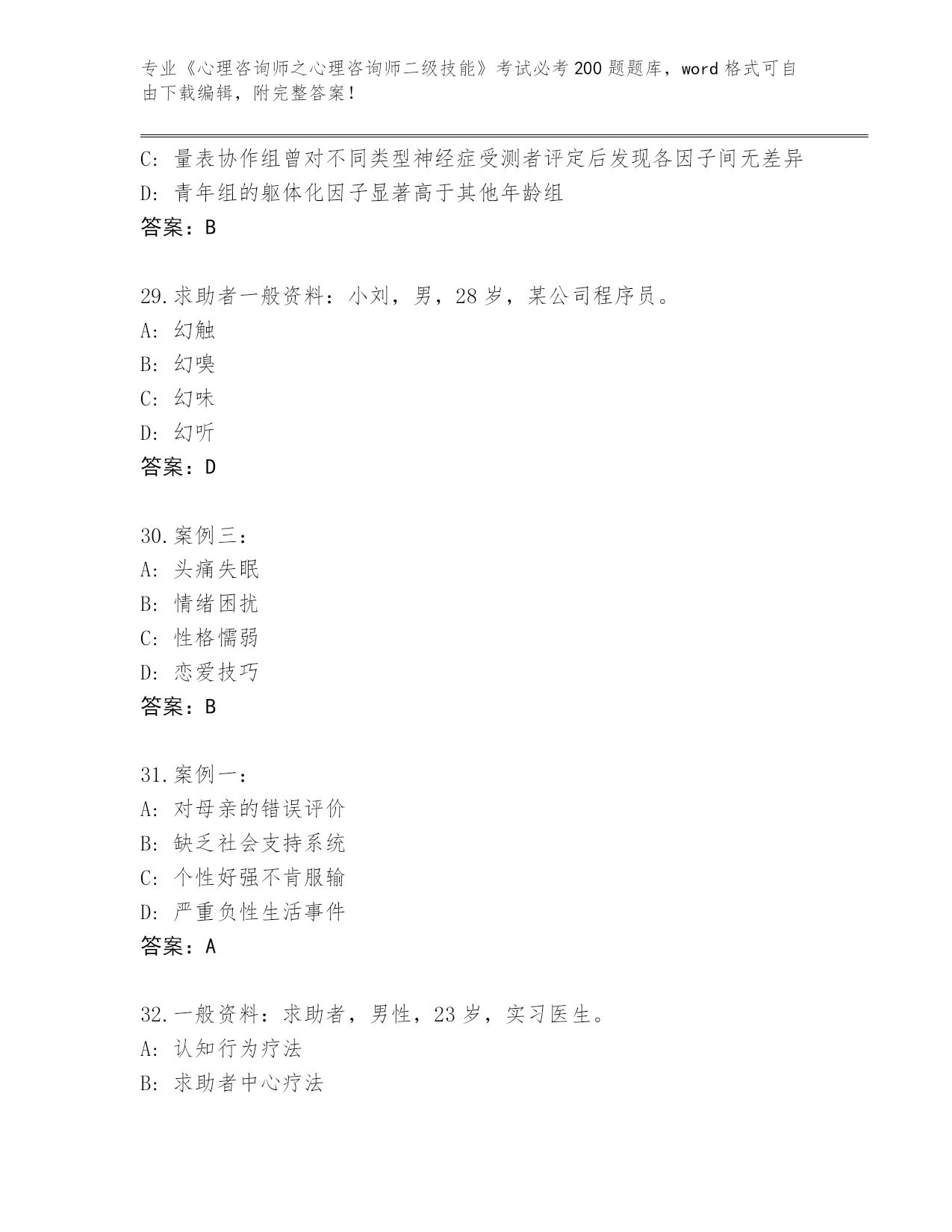 广东省2024《心理咨询师之心理咨询师二级技能》考试必考200题完整版附下载答案