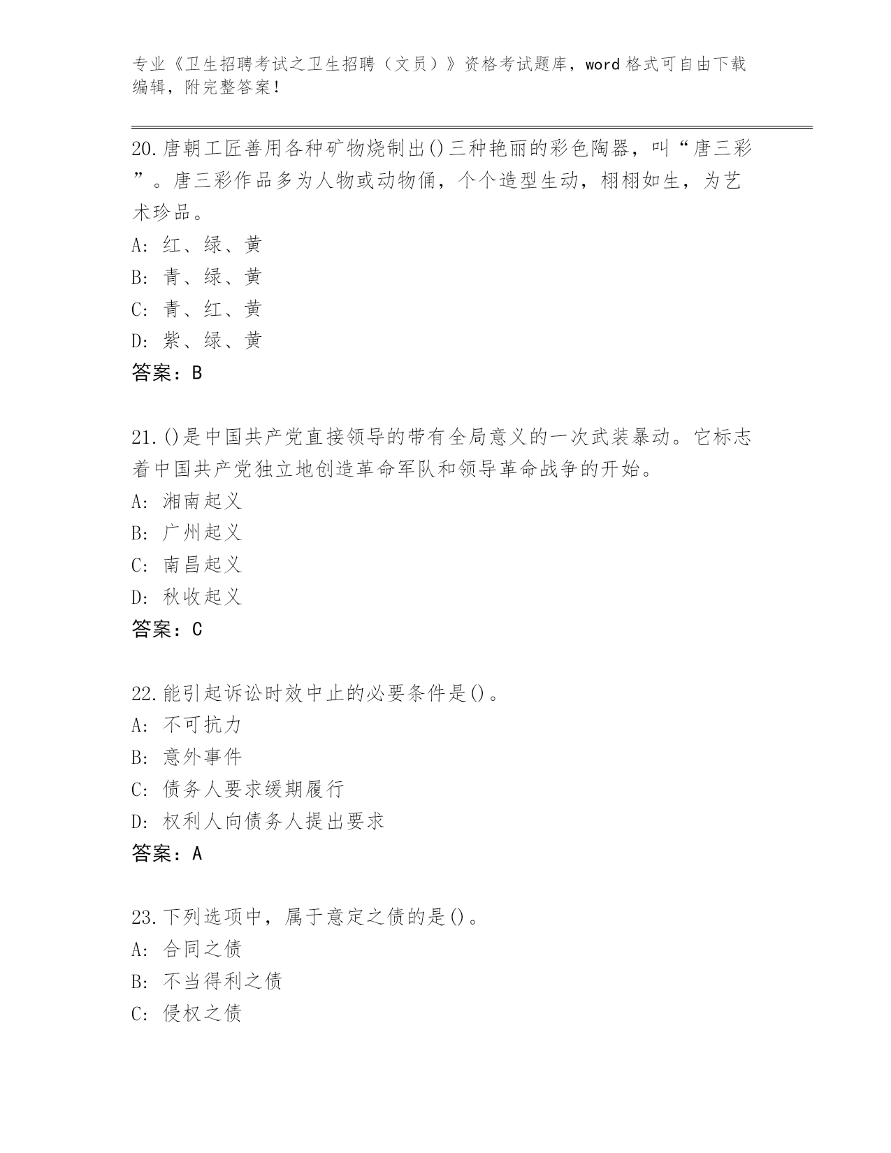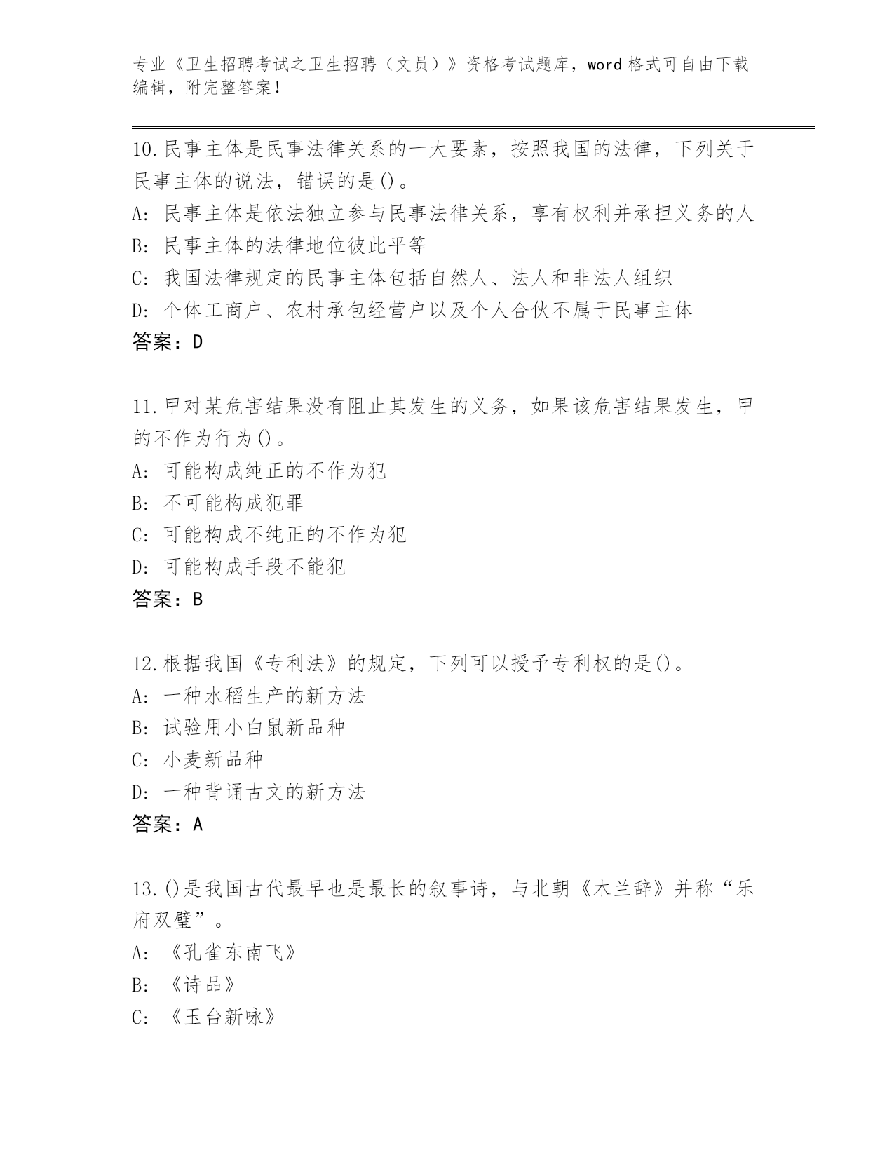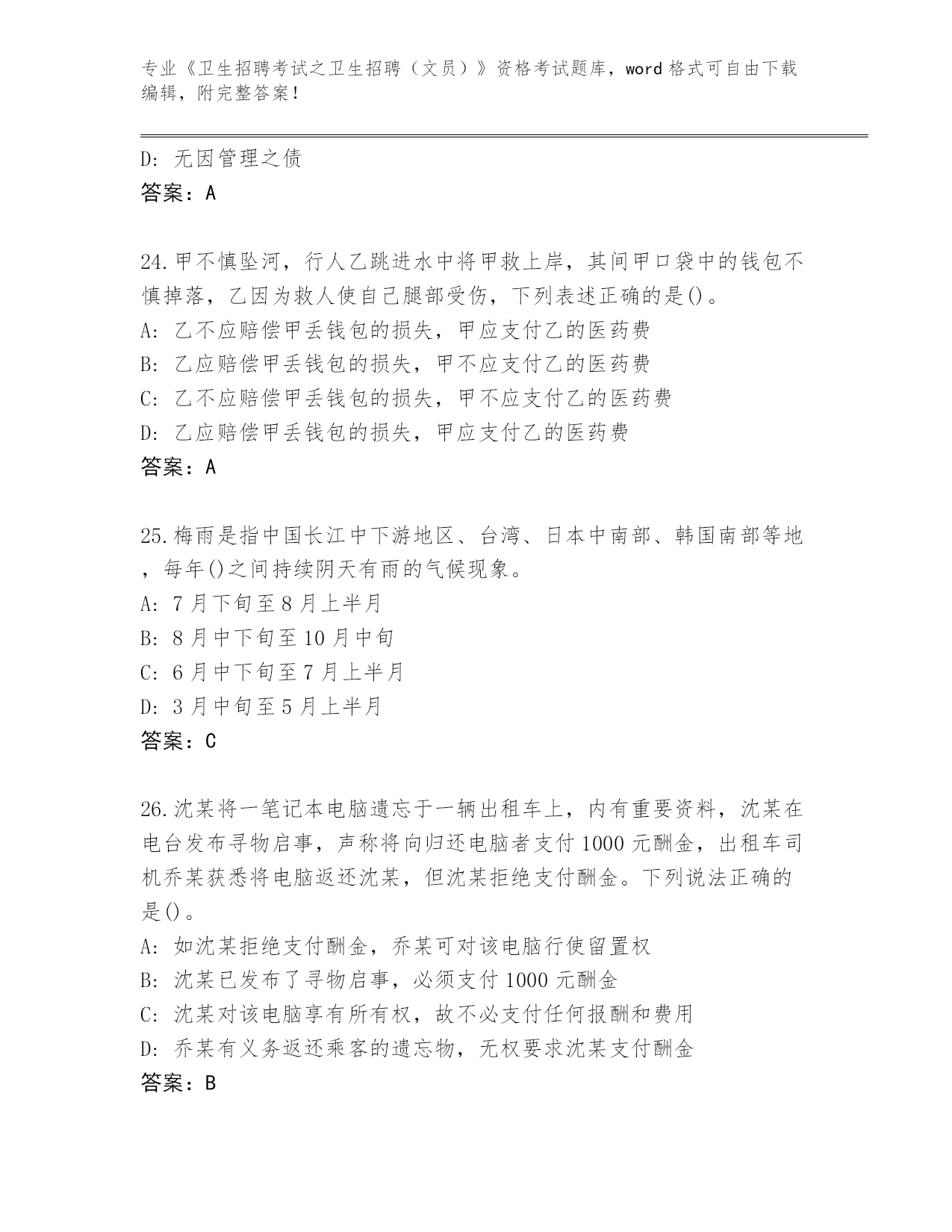 江西省2024年《卫生招聘考试之卫生招聘(文员)》考试通关秘籍题库带答案(考试直接用)