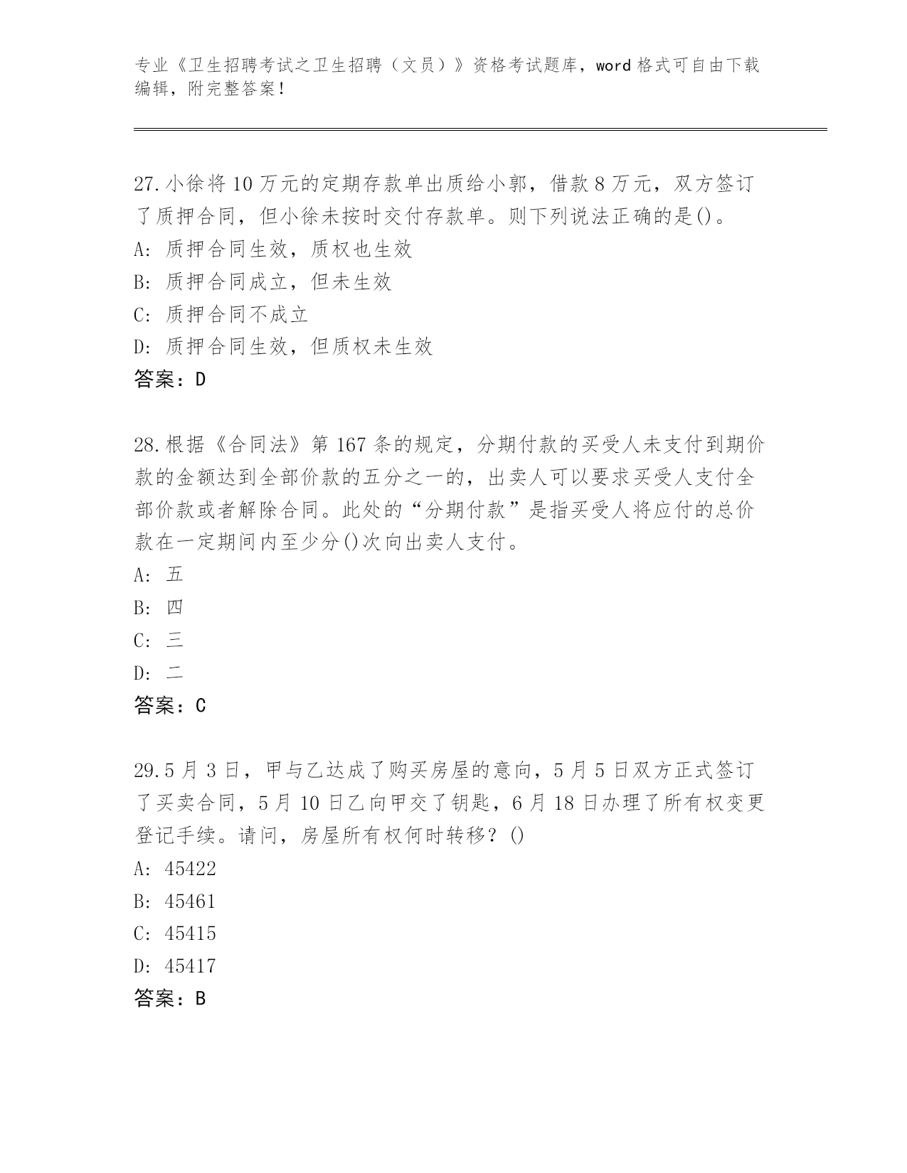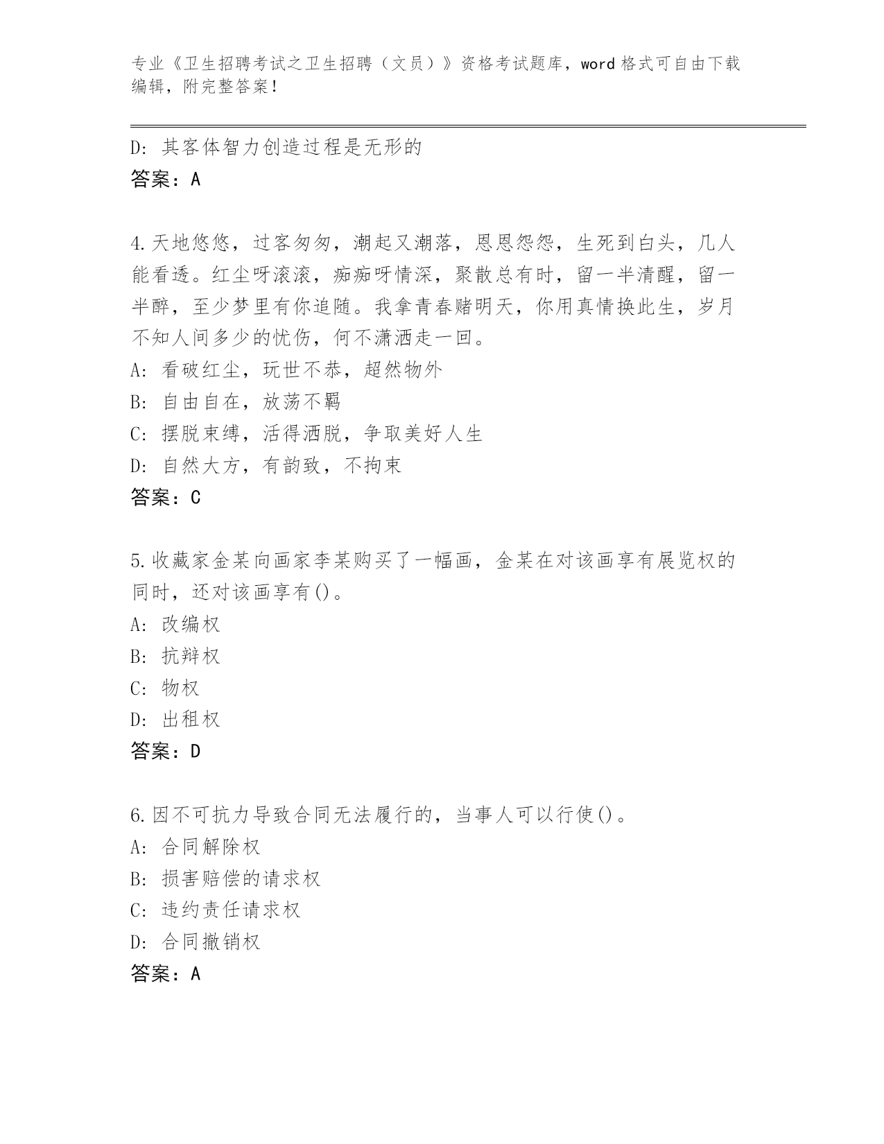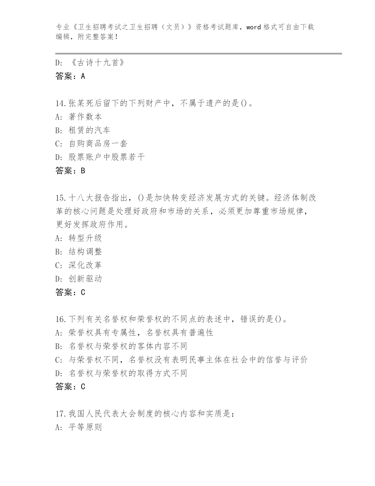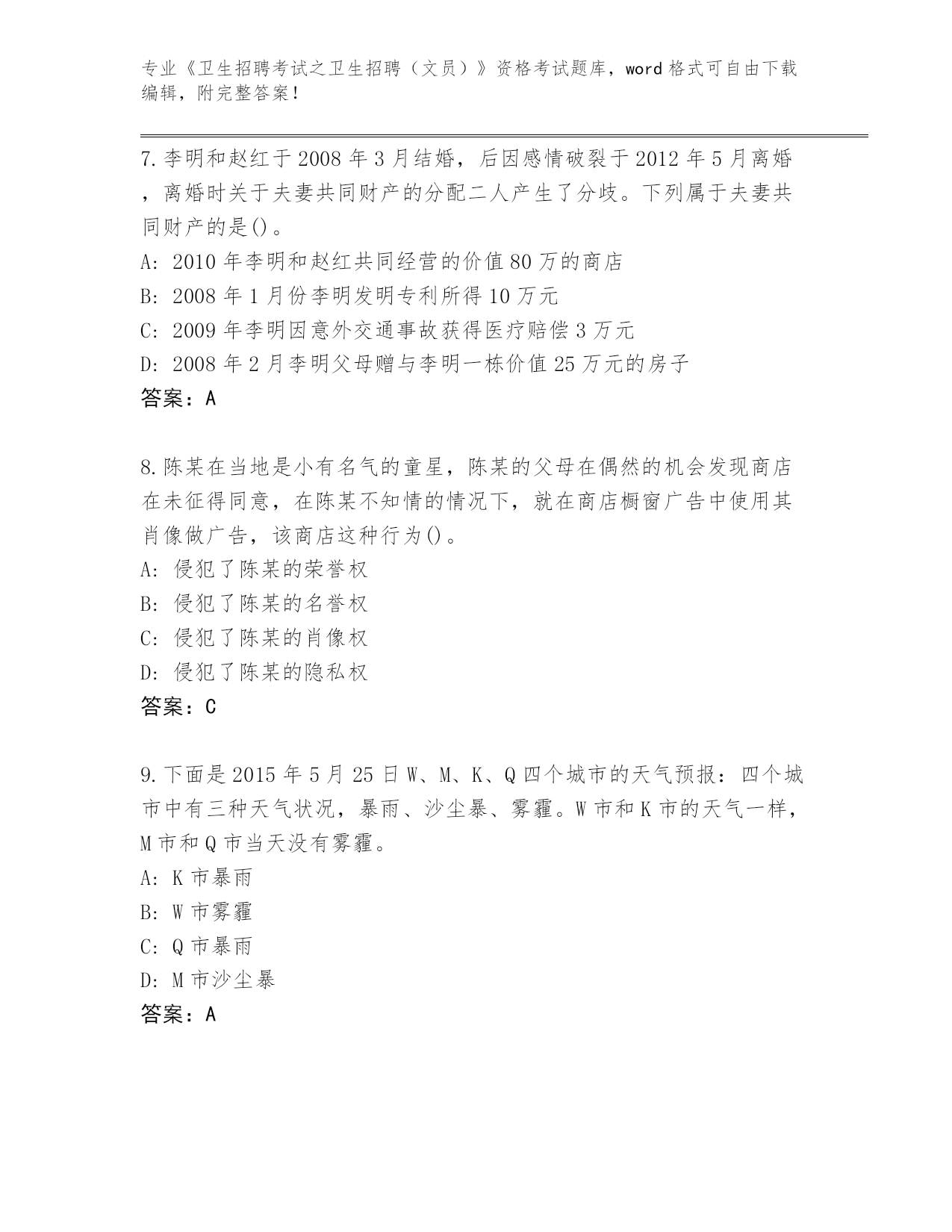 江西省2024年《卫生招聘考试之卫生招聘(文员)》考试通关秘籍题库带答案(考试直接用)