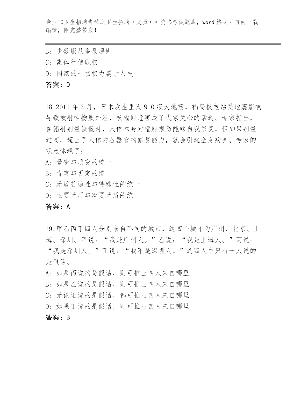 河北省《卫生招聘考试之卫生招聘(文员)》考试通关秘籍题库带答案(巩固)