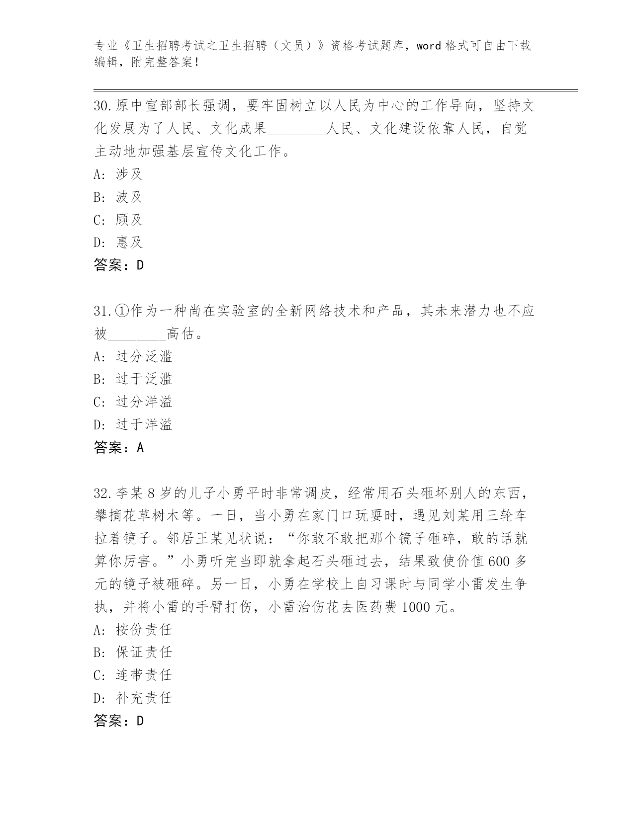 2024江西省芦溪县《卫生招聘考试之卫生招聘(文员)》资格考试通关秘籍题库及答案
