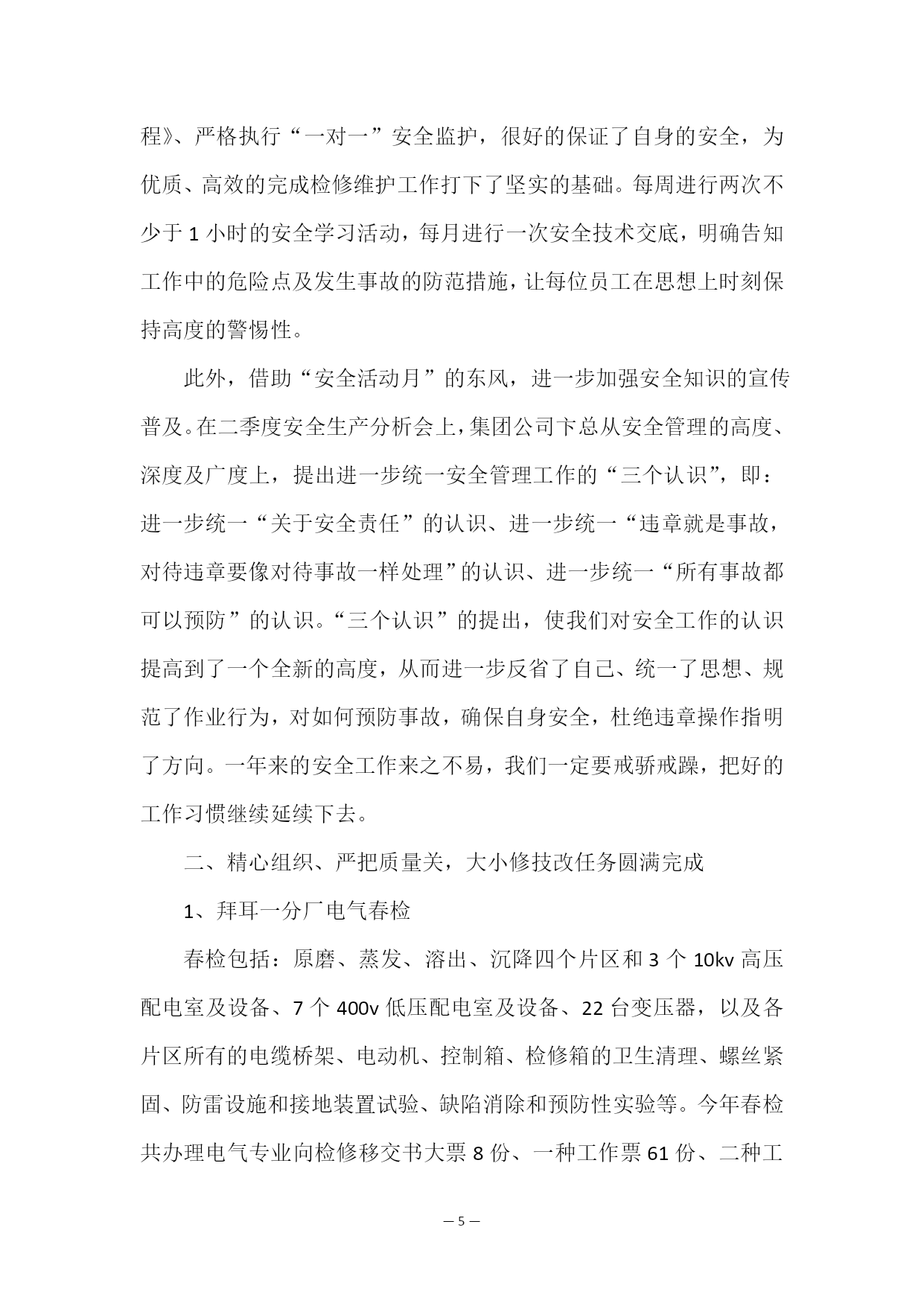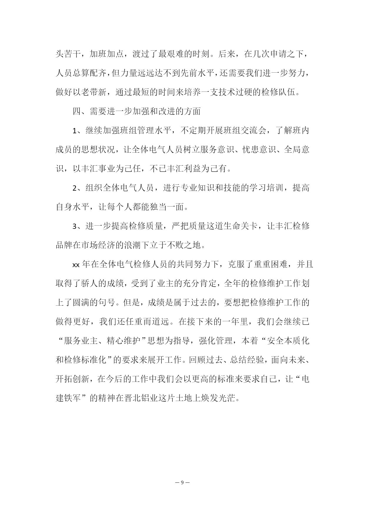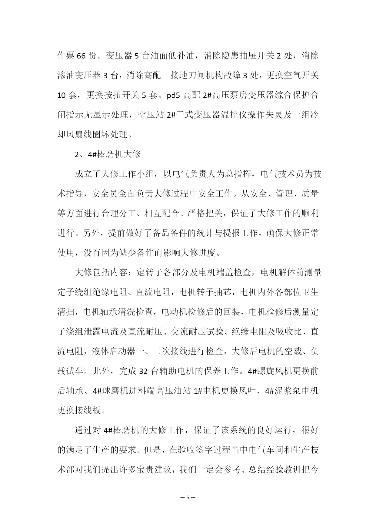 —PAGE\*MERGEFORMAT9—最新电气技术员工作总结(三篇)总结是对过去一定时期的工作、学习或思想情况进行回顾、分析,并做出客观评价的书面材料,它有助于我们寻找工作和事物发展的规律,从而掌握并运用这些规律,是时候写一份总结了。那么我们该如何写一篇较为完美的总结呢?下面是我整理的个人今后的总结范文,欢迎阅读分享,希望对大家有所帮助。电气技术员工作总结篇一建设工程是一种特殊的产品,价值大、使用寿命长、而且还关系到人民的生命财产安全、健康和环境。因此,保证建设工程质量和使用安全就成为一项非常重要的问题,由于我们监理人员是有技术、会管理、懂经济、通法律的专门人才,我们监理人员对承包施工的单位进行优良监督与管理,就会对建设工作质量和使用安全起到重要的保证作用。所以,我们监理人员在工作中,认为工程施工不符合工程设计、不符合工程质量标准和质量要求的,应及时报告组长、行业主管监理及必要时报告于李总监。并及时给施工方发出整改通知,确保工程质量,我们要严格遵守执行gb50319—xx工程监理的国家标准;从监理自进驻工地现场至工程竣工验收,都要做到遵循“守法、诚信、公正、科学”的职业准则开展工作;认真学习gb50303—xx《建筑电气工程施工质量验收规范》、gb50168—92、gb50169—xx的国家标准规范和有关的规范。工作中,本人能够认真学习相关规范,对开展专业监理工作起到了积极的作用。认真熟悉图纸、审核施工图纸设计,做好监理前期的准备工作,时近3个月多,在施工过程中能从质量、进度、安全各方面进行控制,在工作过程中遵守公司制定的各项规章制度,听从李总监的直接领导和秋组长的正常工作安排;遇到工程施工中与图纸发生的矛盾和新问题,做到仔细查阅历史更改等文件;能与施工单位进行良好的沟通与协调,相互配合、相互协作。三期c区电气施工监理交底尚不完善。图纸不全和多处细部、节点有疏漏,加之单体和平面图由两院共同设计,产生了图纸出现了多处矛盾,图与表不符;例c—70#楼的配电箱接线图是xx·09。15日设计,电表计量箱是放在地下室集中管理,对讲门铃安装系统图是xx·09。22日设计,门铃解码器是单户放置,须东西两户两条走线。而c—48#楼的配电箱接线图是xx。10月设计,各分户的电表计量箱是分层分户独立管理;对讲门铃安装系统图是xx·09。24日设计,门铃解码器是两户一个,只走一条线路。同是一家设计,同在一起建楼,两栋楼设计时间只差几天,可功能和施工方法截然两样。本人没有查到给c区变更通知,只找到部分楼号同类图纸之后,对其认真进行了核对,查阅了xx年来的所有电气变更补充通知单并做了登记,并和在a区监理过的电气监理工程师们进行了沟通,对图纸存在的问题逐一纪录,把三期c区遗漏的问题及时在各楼栋一一对照,能改的立即对施工单位提出纠正措施。同时,对施工方提出的问题进行了确定的回复。收到了不少效果。电气技术员工作总结篇二回顾一年来的工作,在公司领导的带领下、各位同事的协助下、各部门之间的配合下,严格要求自己,按照公司的制度要求,较好地完成了自己的本职工作。通过一年来的学习与工作,工作模式上有了新的突破,工作方式有了较大的改变,现将一年来的工作情况进行总结,敬请公司领导提出宝贵意见及建议。1﹑完成设计院的移交,编写电气所有设计资料提供于设计院,正式开展与设计院的各项工作,将设计工作推向正常流程;2﹑与设计院沟通、现场查看开闭所、变电所高低压设备排列布置平面图。与设计院专业人员交流设计意见,完成开闭所、变电所出图;3﹑配合电力安装公司皮革馆高低压设备安装完成工作;4﹑配合各施工单位完成皮革馆项目各个楼层强弱电电缆敷设,各楼层强电井动力箱位置排列和各楼层区域供电电源计量敷设到每个商铺及通讯、网络、监控位置;5﹑完成精品商务楼变电所初步设计和统计后期工程用电量情况。1﹑配合总包﹑监理﹑消防等有关验收单位对皮革城达到合格工程,并且把电气设备移交给运营部;2﹑做好木雕文化广场工程电气图审工作,发现有疑问的地方及时联系设计院确认,确认后第一时间反馈给施工单位,同时配合土建﹑水暖工程师的工作;3﹑精品商务楼配变所工程安装程序及安全工作跟踪直到x月x日送电运行,已完成空调机房电气设备正常运行。1﹑沟通能力还应加强,没有充分利用资源;2﹑专业面狭窄,作为一名电气工程师,应该是一专多能的,这样才符合公司发展的需求。在以后的工作过程中,加强其他专业的学习,从而提高自己的业务、技术水平,时时严格要求自己,注重自身发展和进步,做到谨小慎微;3﹑对于工作过程中的前瞻性、计划性不够强,在以后工作中提高自己对于会发生问题工作的预见性,尽量不出问题,当遇到问题时能做到有条不紊的处理。明年会是更忙碌的一年,接下来的工作中我将紧密围绕在公司的总体