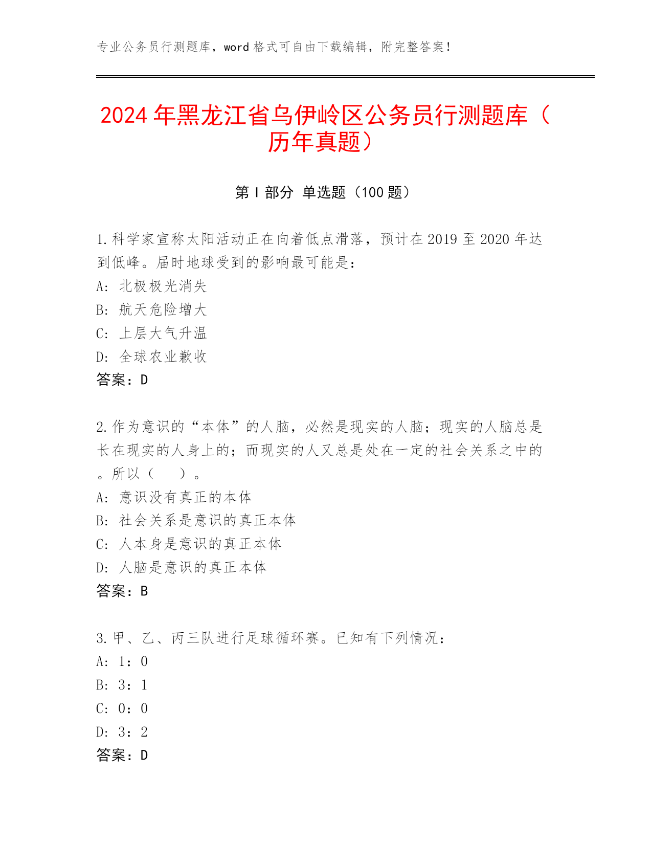 2024年黑龙江省乌伊岭区公务员行测题库(历年真题).docx