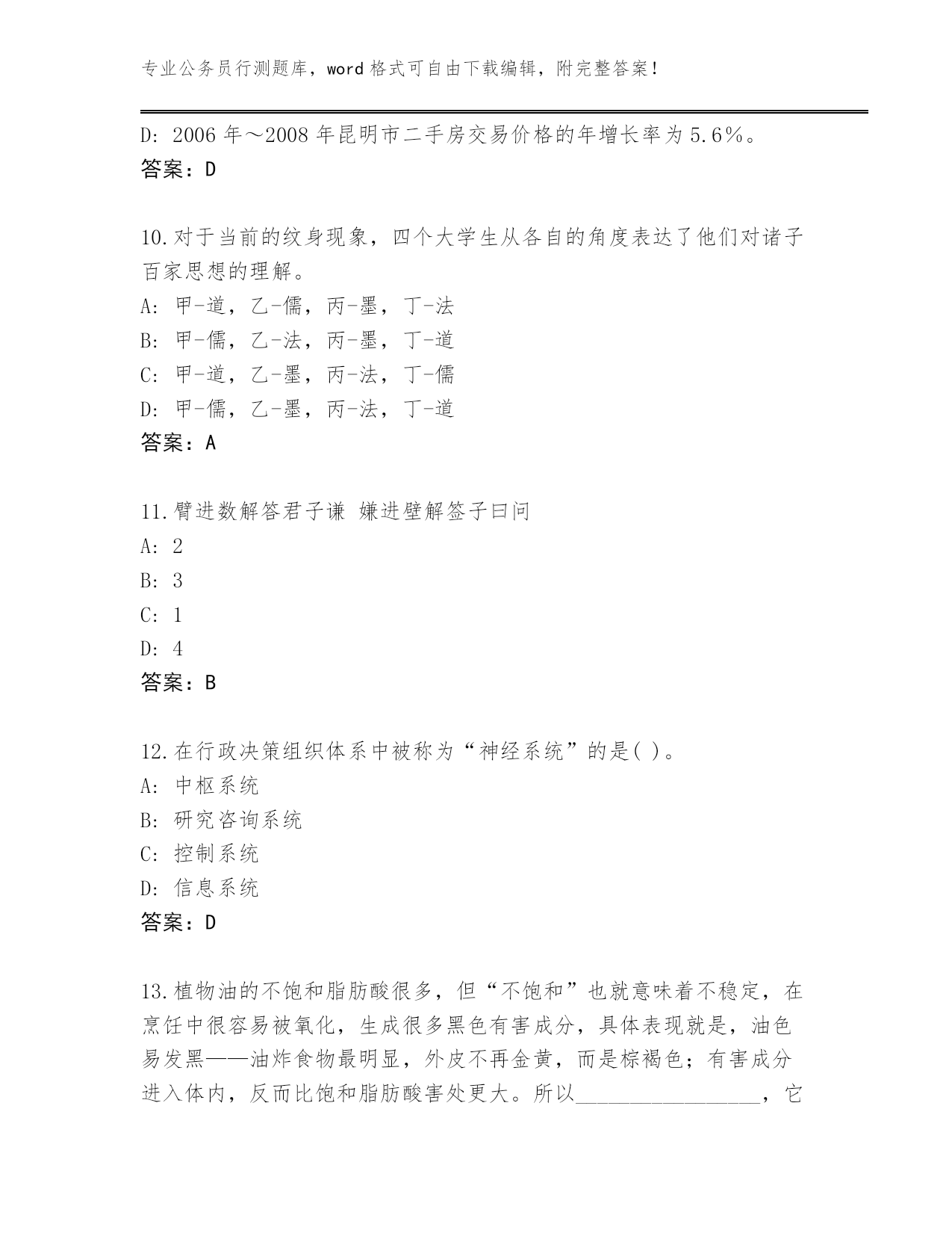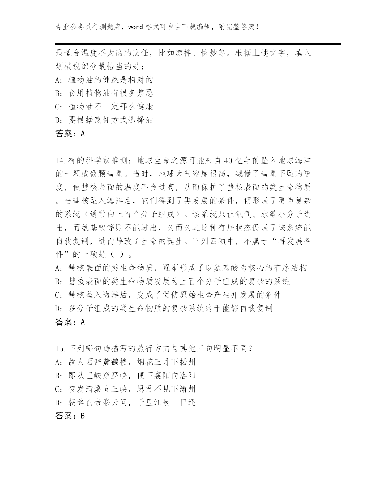 2024年黑龙江省乌伊岭区公务员行测题库(历年真题)