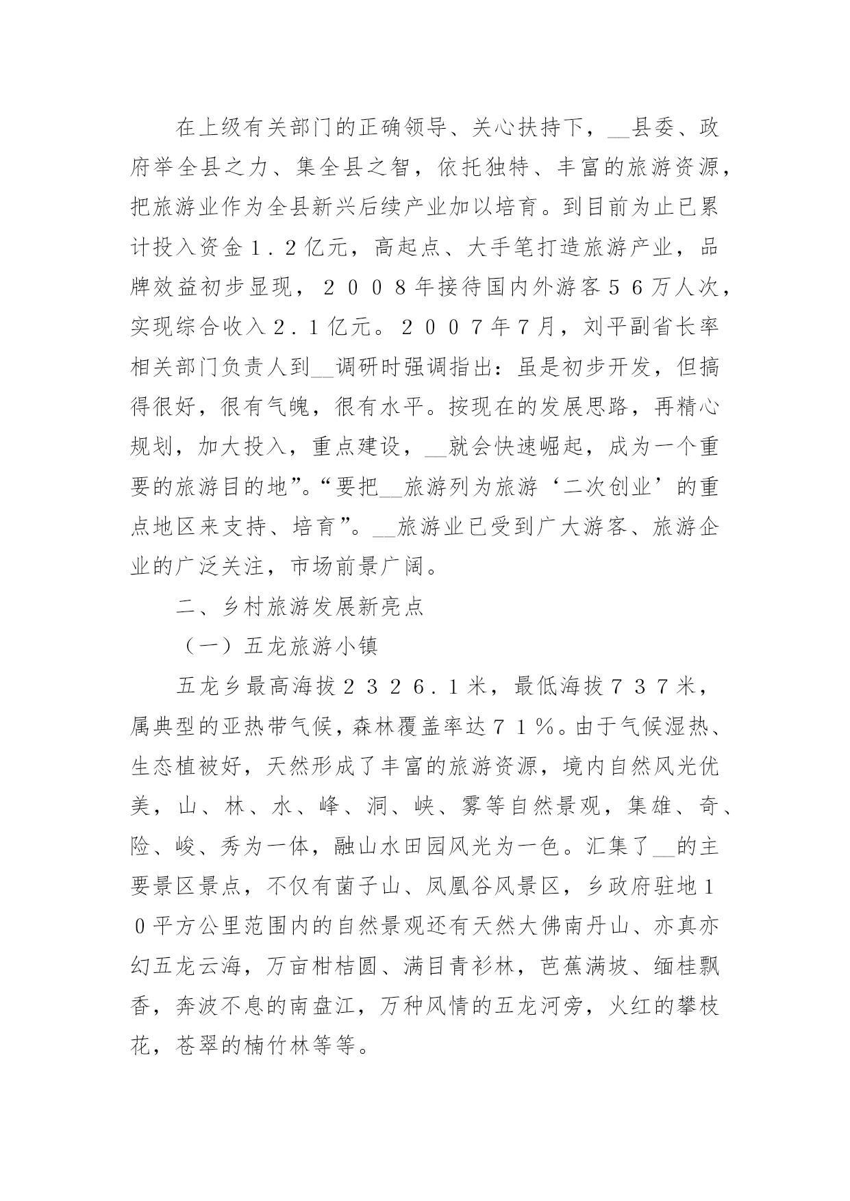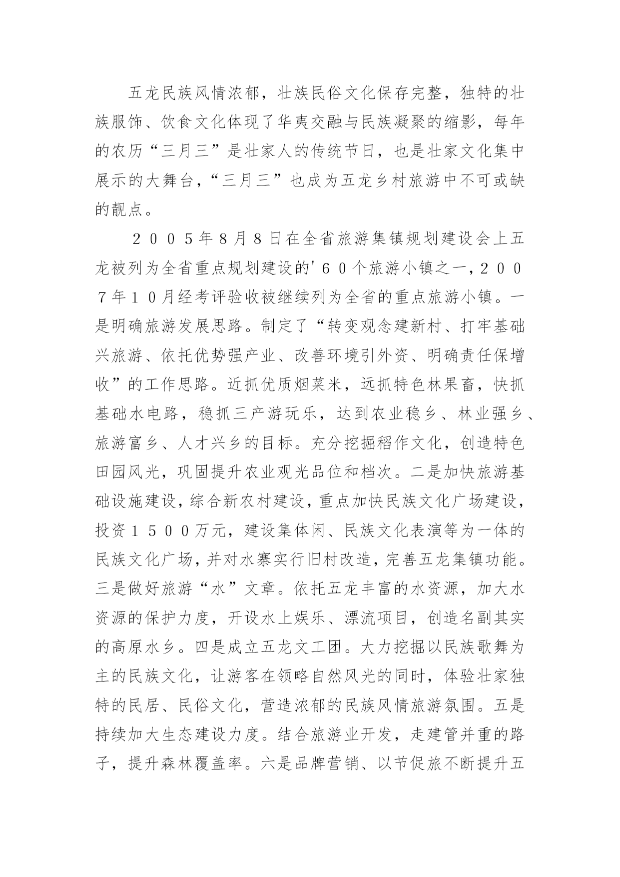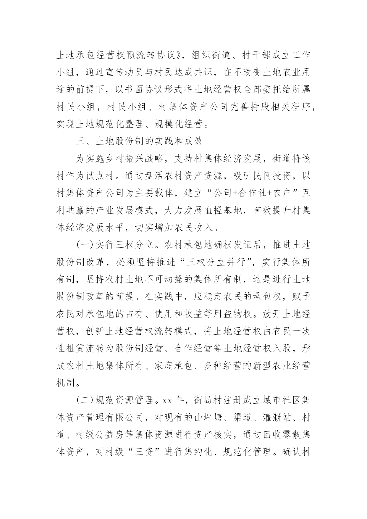 乡村旅游调研报告随着个人的文明素养不断提升,报告的适用范围越来越广泛,通常情况下,报告的内容含量大、篇幅较长。我们应当如何写报告呢?以下是小编为大家整理的乡村旅游调研报告,仅供参考,欢迎大家阅读。乡村旅游调研报告1家庭联产承包责任制是以坚持农村土地集体所有制和家庭承包经营为前提的基本经济制度。它极大地释放了农民的潜力,深刻地改变了中国农村的面貌。然而,随着农村劳动力的老龄化和减少,农村土地碎片化和碎片化、土地产出效率低下等问题逐渐凸显,逐渐落后于现代农业的要求,成为乡村振兴的一道坎。近年来,我们围绕实施农业农村改革,正确处理农民与土地的关系,通过土地权利分离、承包经营权入股、适度规模经营、创新管理体制等方式,在街道村进行了一些实践和探索。一、农村土地承包经营的现状与问题街村位于街道北侧,距市区2.5公里。有7个村民小组,519户,农业人口1781人。现有耕地面积1947亩,人均耕地约1.09亩。农村家庭联产承包责任制实施之初,为了体现公平原则,对耕地进行了分等配建,将整块土地切割成若干小块分给农民,导致每户承包的耕地分散分配。随着城市化进程的加快,农村外出务工人员增多,家里的“留守农民”接管了承包地的耕种,使得土地分配更加分散。比如5组村一个农户的3.5亩旱地分成10多块地,最小的一块地只密集种植3株柑橘。分散的土地给农业生产带来了诸多不便。一是难以进行机械化作业,耕作效率低;二是加大基础设施建设难度;三是产业结构调整相互制约;四是种养结合的农业循环经济模式难以有效运行;五是外地土地流转涉及农户多,难以达成共识;第六,土地分割产生了更多未开垦的边界,浪费了耕地资源。为了解决这个问题,近年来我们在街道村做了一些实践和探索。通过承包权入股和土地预流转的.方式,有效实现了耕地与适度规模经营的“团圆”,劳动效率和经营效率也相应提高。二、土地股份制的探索与构想对村里的调查发现,群众虽然意识到承包地碎片化的种种弊端,有“整地”的愿望,但缺乏系统的解决办法、具体的路径和组织者。比如,农民可以互相交换土地,但想法不同,结果有限;由于农民的意见不同,外部所有者的整体流通和集约化管理很难实现。有鉴于此,我们在广泛调研、广泛听取民意的基础上,提出了土地三权分置、以承包权入股、适度规模经营的思路:以生产社会为单位,以农民自愿为前提,农民的耕地承包经营权全部入股,土地股份化,耕地集中,引入专业合作社和龙头企业分片经营。在具体探索过程中,我们分别制定了《村耕地试点经营管理办法》和《农村土地承包经营权预流转协议》,组织街道、村干部成立工作小组,通过宣传动员与村民达成共识,在不改变土地农业用途的前提下,以书面协议形式将土地经营权全部委托给所属村民小组,村民小组、村集体资产公司完善持股相关程序,实现土地规范化整理、规模化经营。三、土地股份制的实践和成效为实施乡村振兴战略,支持村集体经济发展,街道将该村作为试点村。通过盘活农村资产资源,吸引民间投资,以村集体资产公司为主要载体,建立“公司+合作社+农户”互利共赢的产业发展模式,大力发展血橙基地,有效提升村集体经济发展水平,切实增加农民收入。(一)实行三权分立。农村承包地确权发证后,推进土地股份制改革,必须坚持推进“三权分立并行”,实行集体所有制,坚持农村土地不可动摇的集体所有制,这是进行土地股份制改革的前提。在实践中,应稳定农民的承包权,赋予农民对承包地的占有、使用和收益等用益物权。放开土地经营权,创新土地经营权流转模式,将土地经营权由农民一次性租赁流转为股份制经营、合作经营等土地经营权入股,形成农村土地集体所有、家庭承包、多种经营的新型农业经营机制。(二)规范资源管理。xx年,街岛村注册成立城市社区集体资产管理有限公司,对现有的山坪塘、渠道、灌溉站、村道、村级公益房等集体资源进行资产核实,通过回收零散集体资产,对村级“三资”进行集约化、规范化管理。确认村集体经济共有人,为下一步村集体收入分配提供依据。按照“村集体公司+专业合作社+农户”的思路,农户入股拥有土地承包经营权的村集体公司,集体公司聘请专业合作社和农村经纪人负责生产经营。通过村集体资源资产转股,定量成立村集体公司,整合上级财政扶持资金,吸纳民间资金,实现村集体公司、专业合作社、农户三方合作、互利共赢。(3)培育主导产业。一是以区内大型绿化行动项目(混交林)为支撑,通过新苗、嫁接等方式,标准化种植1000亩塔罗科。注入社会资本,完成“霍尔山牌”血橙商标注册,通过电商平台进行前期市场拓展和销售。二是种植蔬菜、芽菜等。林下,并与公司签订蔬菜收购合同,在城郊城市培育平价蔬菜基地。三是发展特色水产品和肉牛生态养殖,利用嘉龙竹木合作社竹笋加工废弃物作为牛饲料,利用牛粪作为有机肥料种植血橙,实现种养结合、种养循环。四是培育发展休闲农业主业,结合血橙、蔬菜种植、有